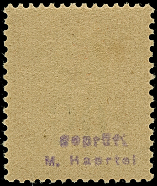 1920, Aufdruck-Provisorien 50 Pf. auf 5 Mark dunkelrotorange, Berner-Ausgabe mit grünschwarzem Aufdruck, kopfstehender Aufdruck in Type Va, farbfrisch und gut gezähnt, sauber ungebraucht, tadellos. Eine sehr seltene Marke, bei einer Auflage von lediglich 2 Bögen mit kopfstehendem Aufdruck beträgt die Auflage in dieser Type nur 6 Stück, sign. M. Haertel sowie Fotoattest Gruber BPP (1999)