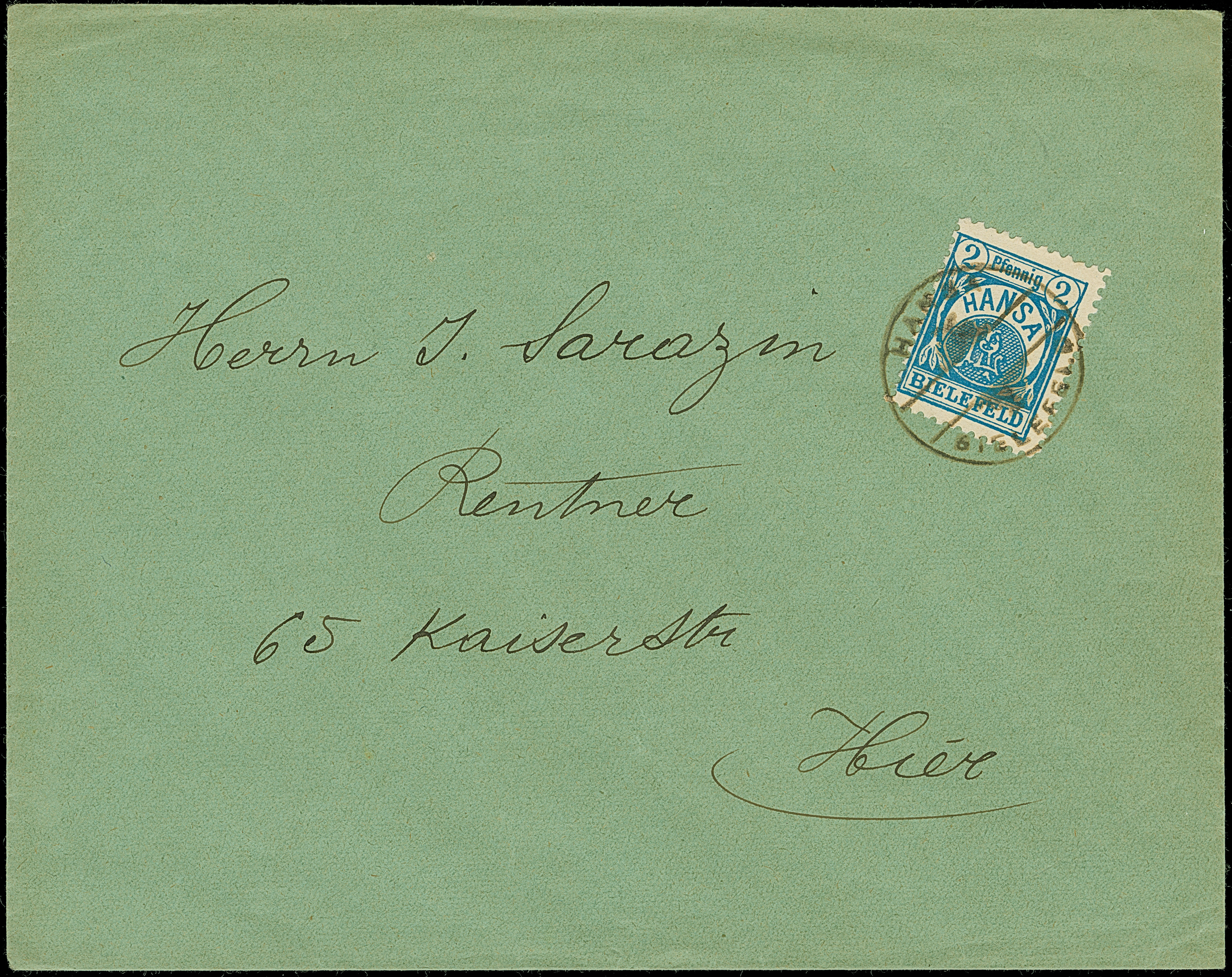 Bielefeld-Hansa: 1899, 2 Pfg. blau mit Stempel “HANSA BIELEFELD“ auf Ortsbrief in einwandfreier Erhaltung, selten