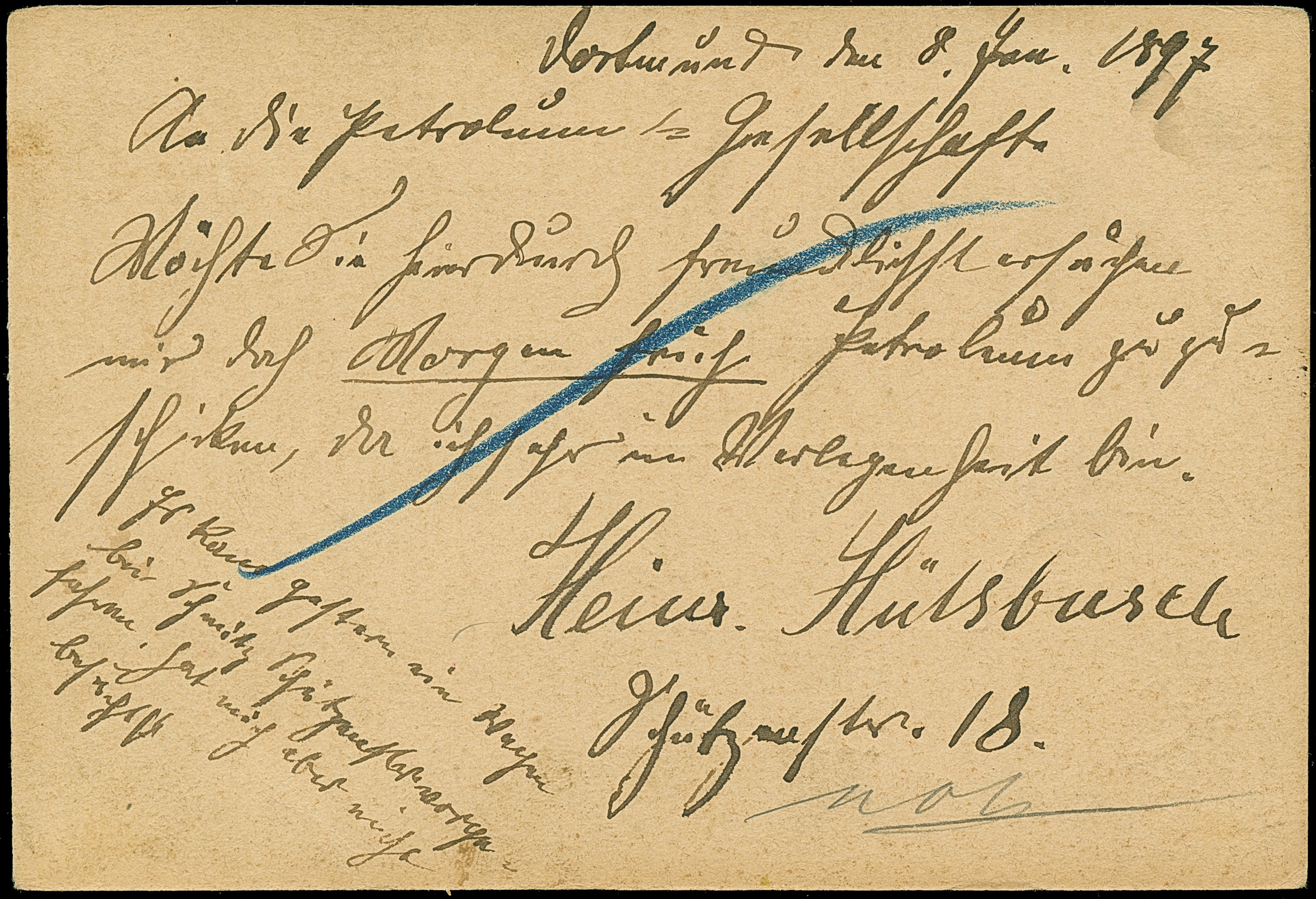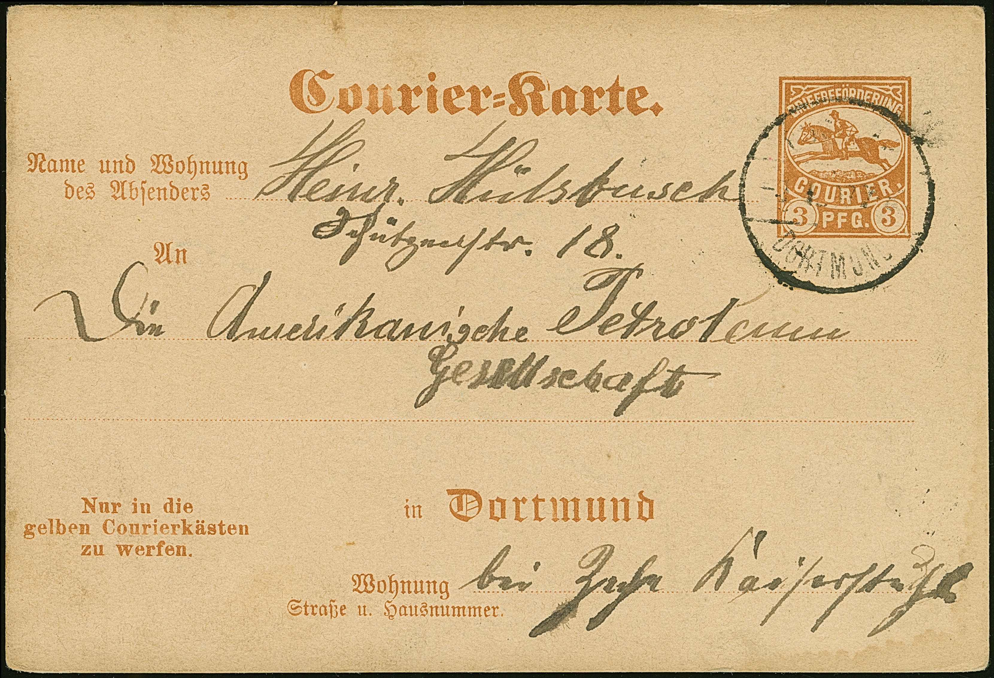 Courier: 1895, Ganzsachenkarte 3 Pfg. braunorange mit Stempel “COURIER DORTMUND 8.JAN.97” und Text im Ortsverkehr, in guter Erhaltung