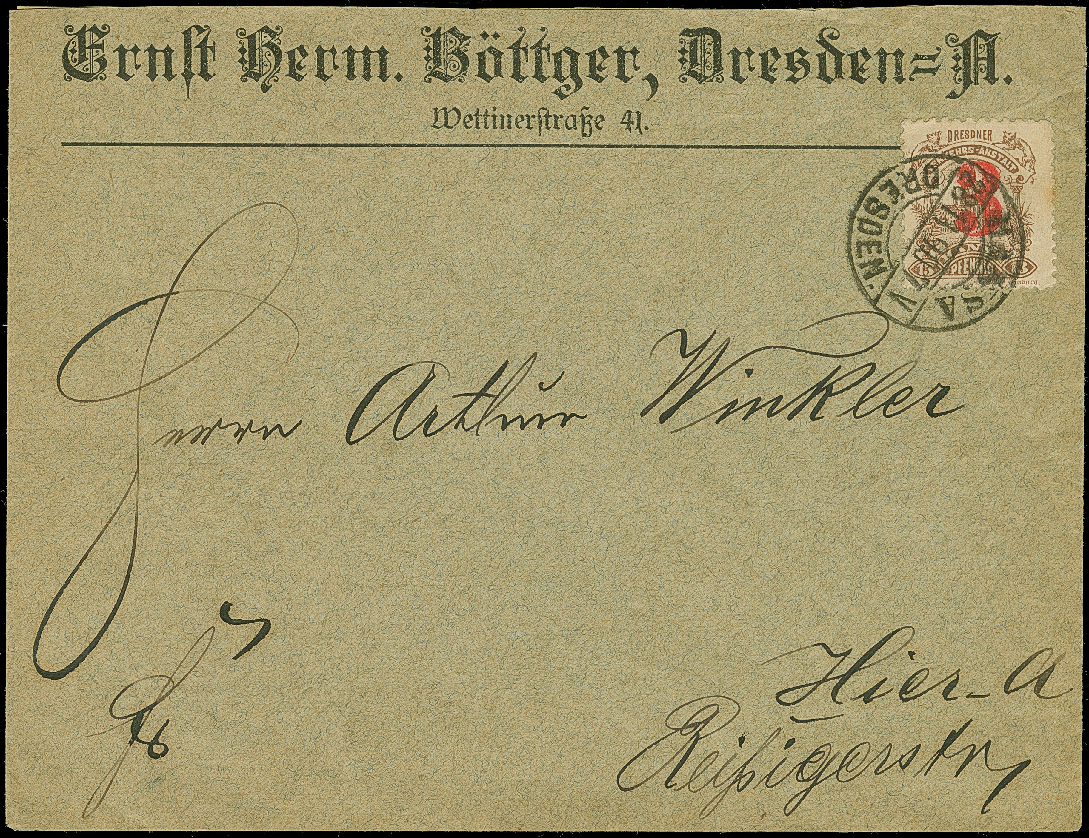 Hansa: 1890, 3 au 13 Pfg. rotbraun mit Stempel “HANSA DRESDEN 28.11.90” auf Firmen-Vordruckbrief “Ernst Herm. Böttger, Dresden-A.” im Ortsverkehr, kleine Spuren, in guter Erhaltung