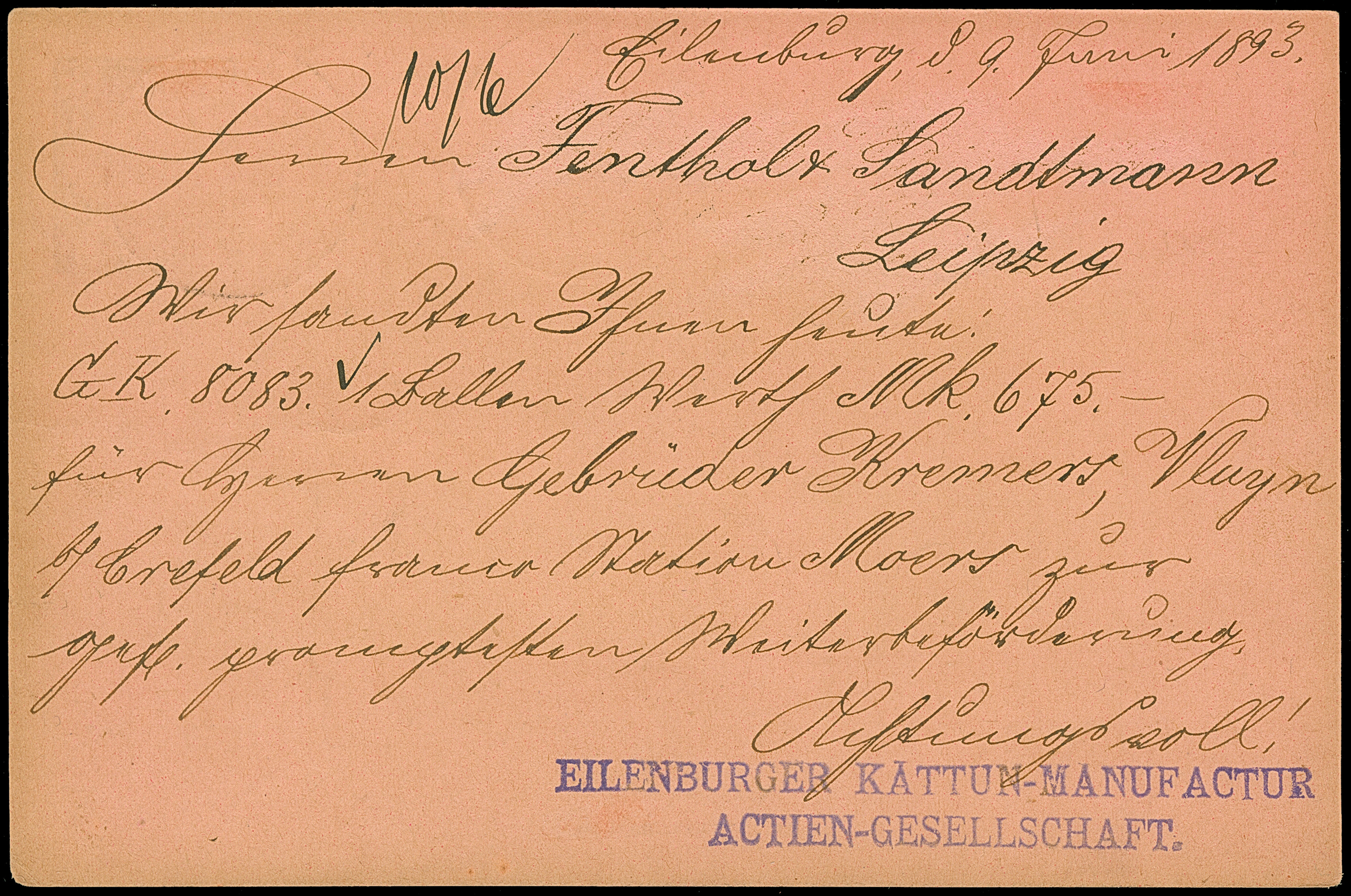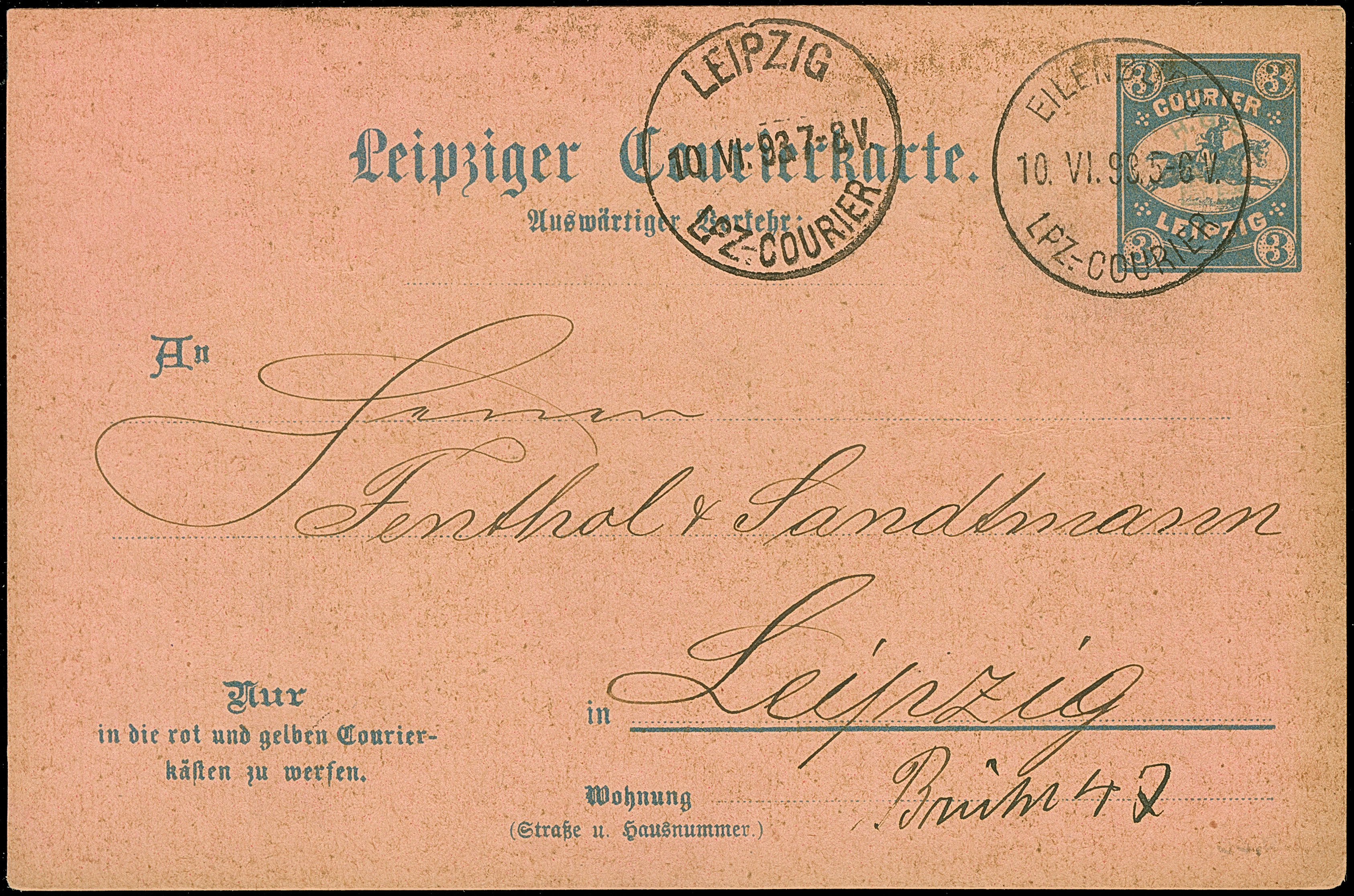 Courier: 1893, Ganzsachenkarte 3 Pfg. mit Stempel “EILENBURG LPZ.-COURIER 10.VI.93” und viel Text nach Leipzig mit vorderseitigem Ankunftsstempel, in einwandfreier Erhaltung