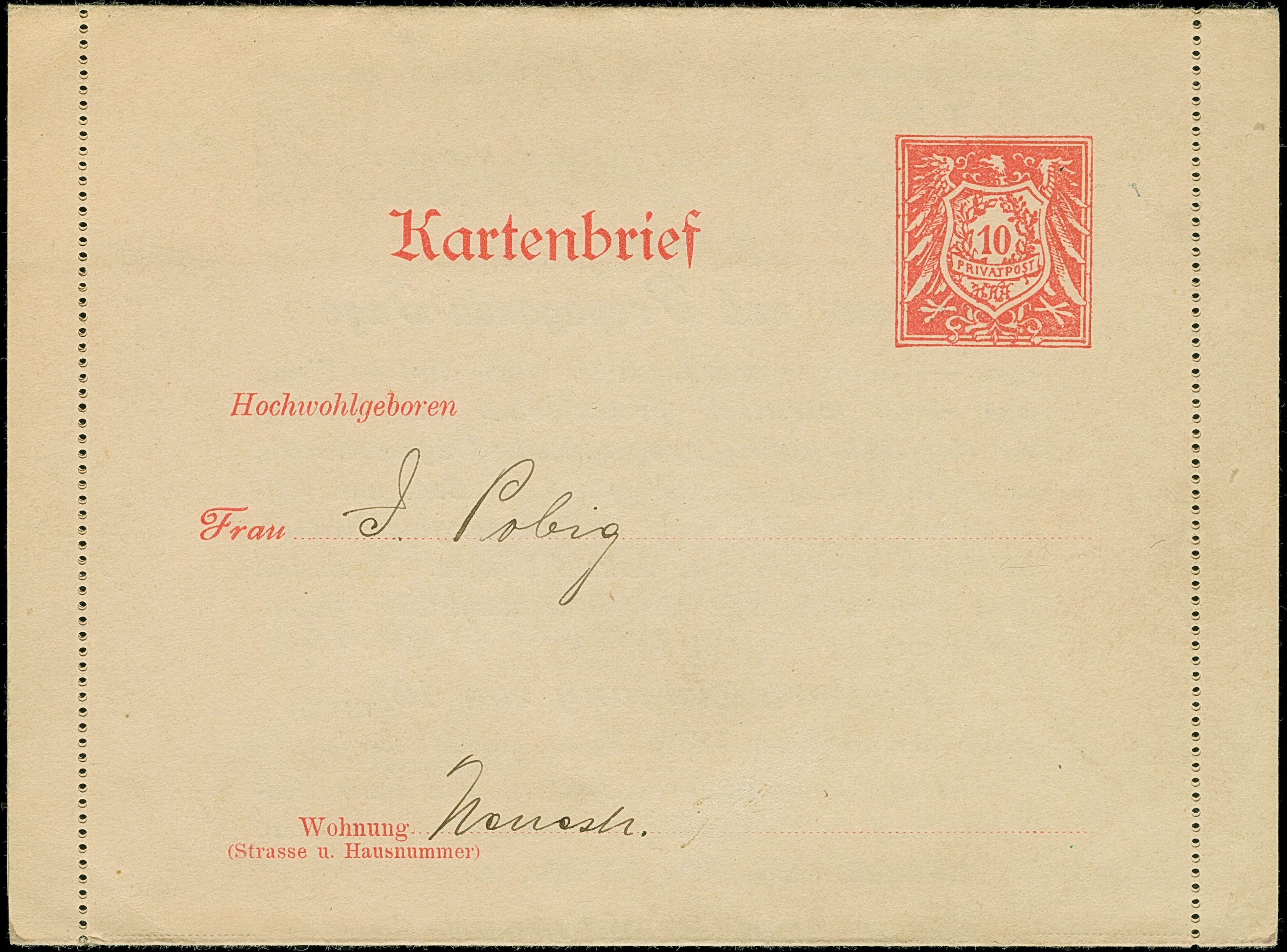 Hamburg: 1898, Kartenbrief mit Wertstempel Adler 10 Pfg. (ähnlich der amtlichen Ausgabe) ungebraucht (mit geschriebener Teil-Adrese), innen mit Werbung des Hamburger Kaufhaus AD. AXIEN mit Text: ….Frühjars und Sommer-Saision 1898". Vermutlich wurden die Kartenbriefe vom Kaufhaus selber befördert