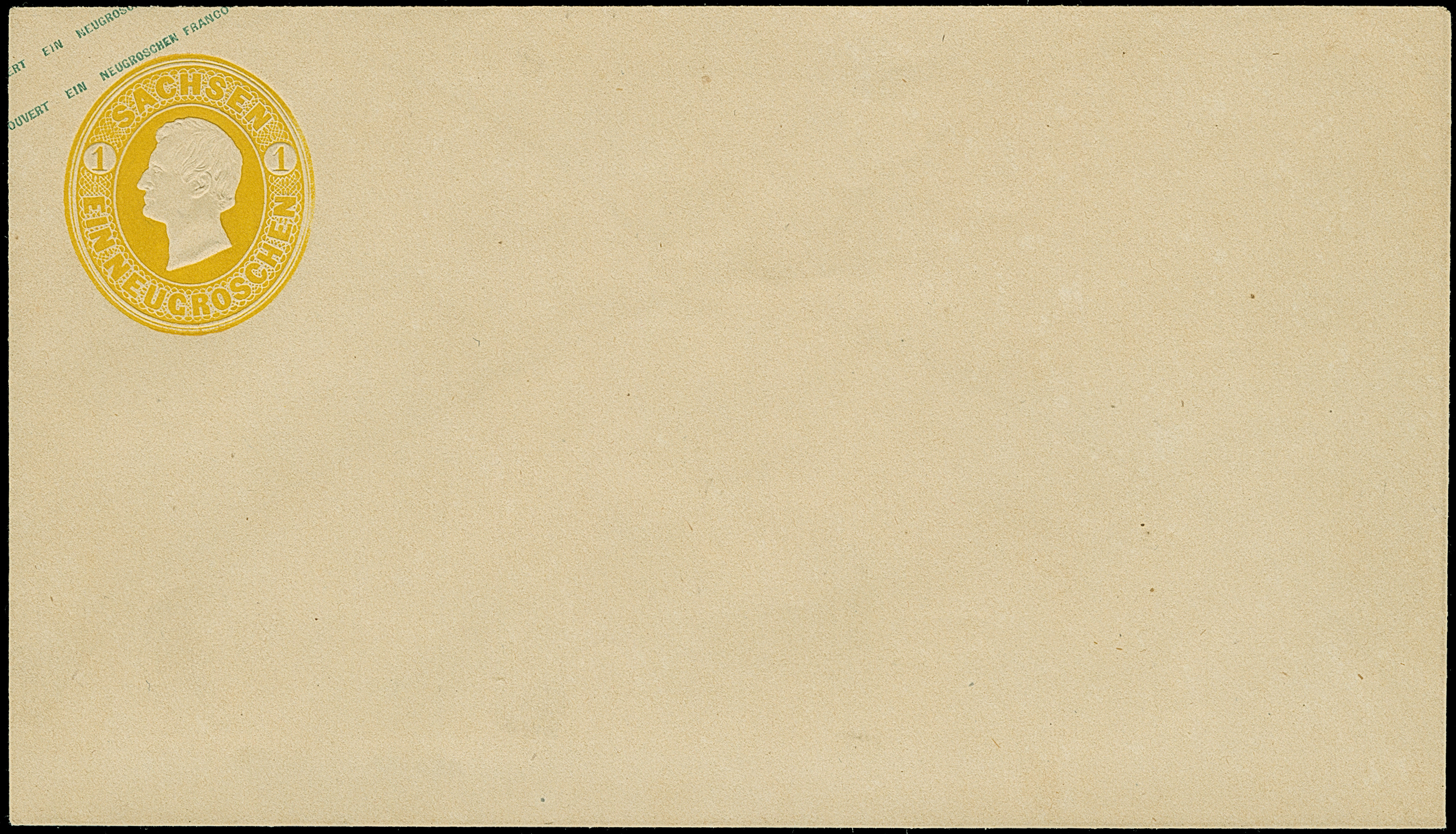 3 Ngr. auf gelb, links oben etwas eckrund, sonst voll- bis breitrandig und farbfrisch, mit Nr. "2" und nebengesetztem Schreibschrift-L1 "Leipzig" sowie DKr. "LEIPZIG 14 VI 58" auf komplettem Laufzettel nach Görlitz, Preußen, mit vorderseitigen Ankunftsstempel. Durch die Marke verläuft eine schwache und völlig unauffällige Druckspur. Es sind nur wenige Laufzettel von Sachsen bekannt; PROFI hat keinen weiteren mit der Johann-Ausgabe registriert.