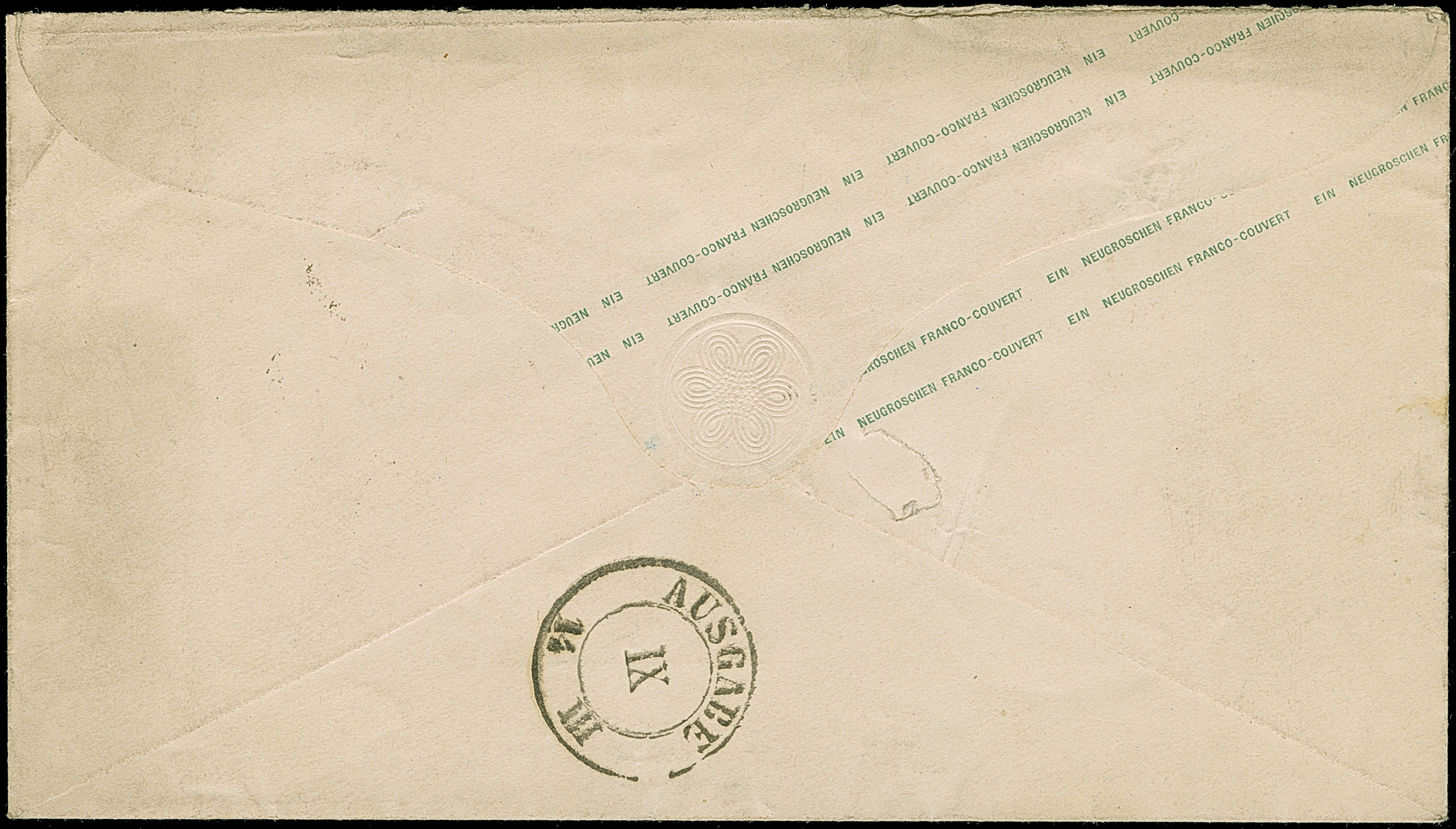 1 Ngr. rosa, 2 Einzelwerte mit DKr. Leipzig 30 DEC 64 auf dekorativem 'Telegramm' der "Priviligirten Telegraphen-Station des Herzens", nach Greiz, mit Ankunftsstempel. Die rechte Marke durch Randklebung etwas gestoßen. Ein attraktiver und ungewöhnlicher Zierbrief.