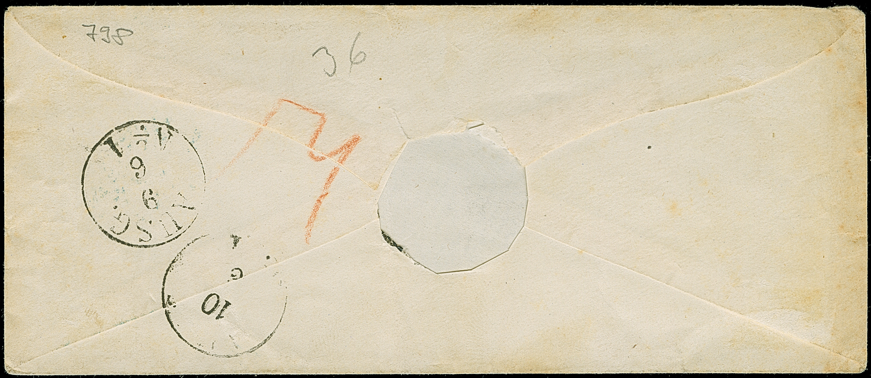 1856, 5 Grote auf karmingrau, farbfrisch und voll- bis breitrandig, mit sauber auf- und nebengesetztem DKr. "BREMEN ST.P.A. 9 7" auf kleinem Briefkuvert nach Hamburg. Im Randbereich der Marke ganz kleine Altersspuren und im linken Rand Knitterung geglättet, sonst einwandfrei. Eine seltene und attraktive Frankatur. Signiert Dr. Werner, Befund Jakubek (1995)