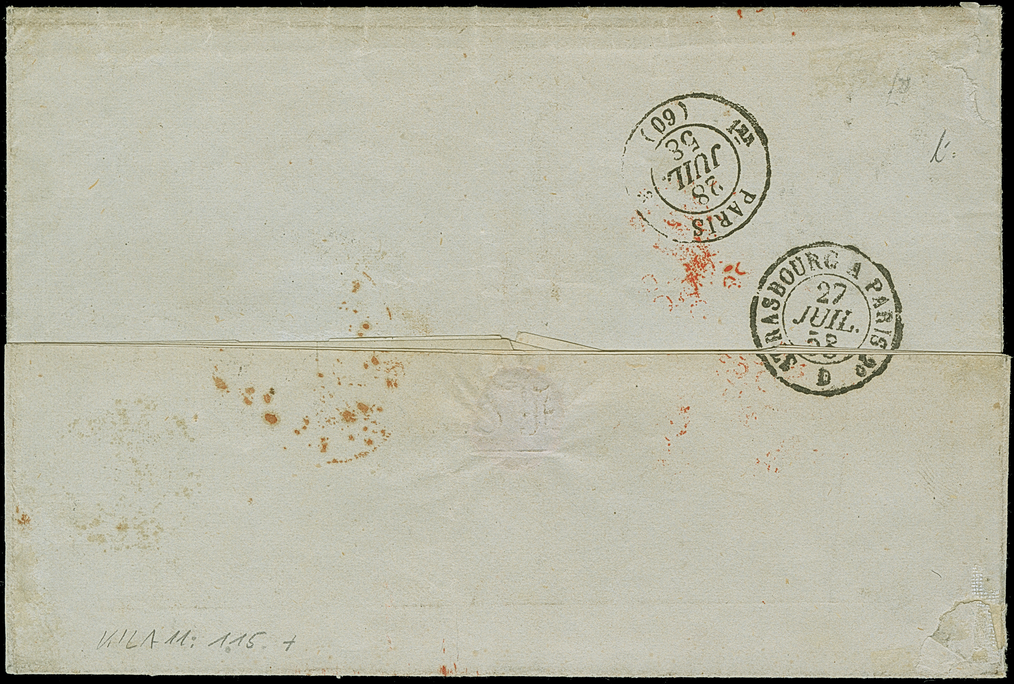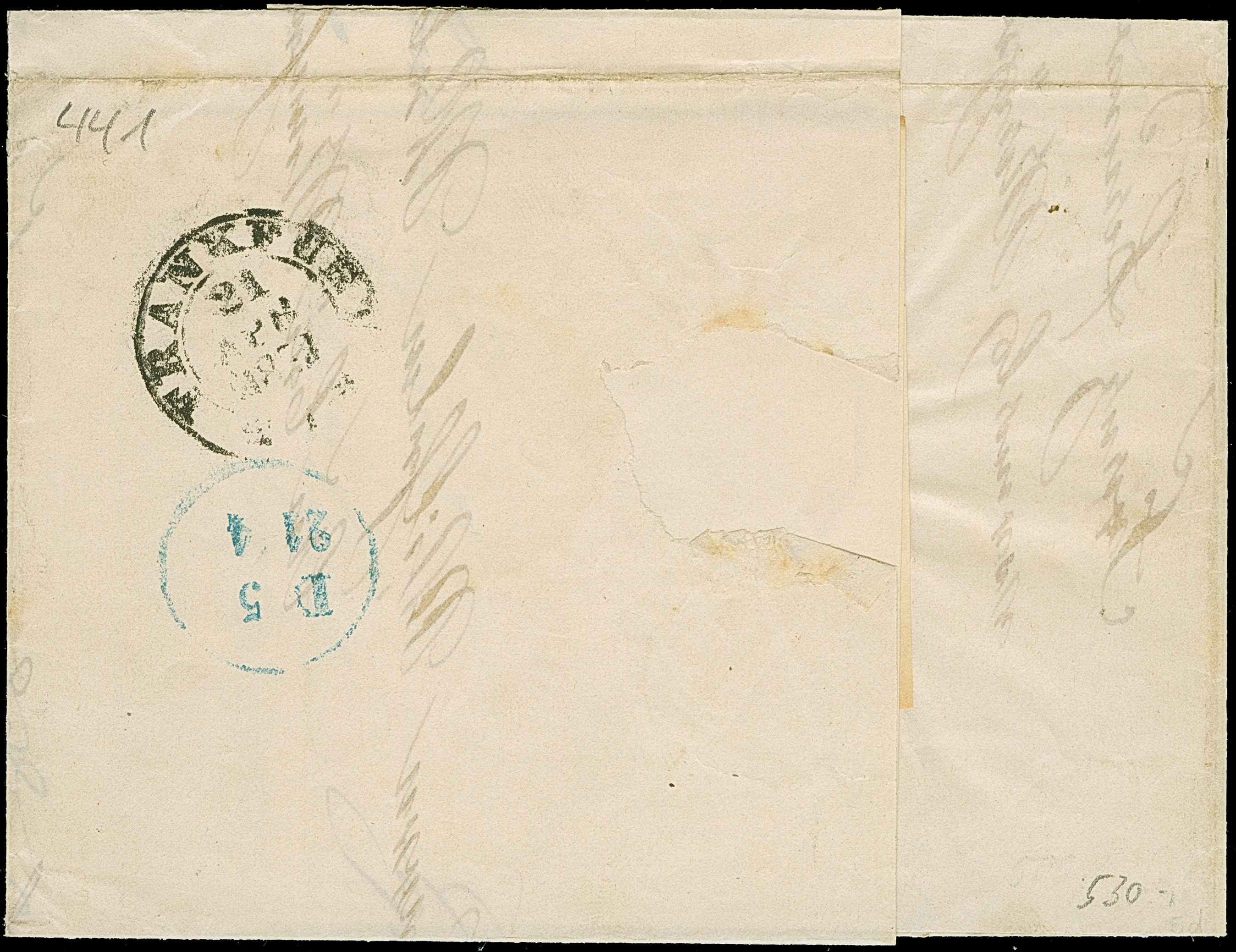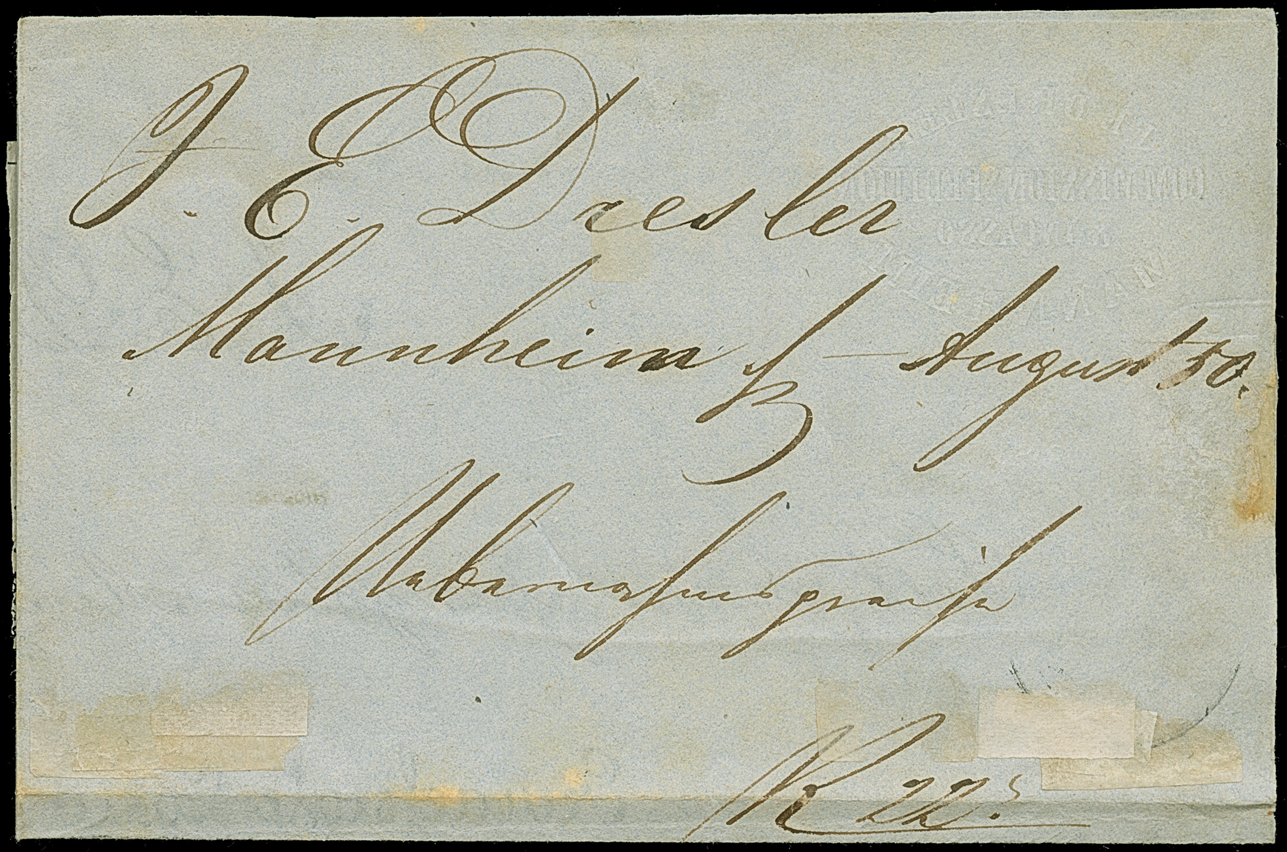 1849, 1 Kr. schwarz, Platte 1, farbfrisch und allseits breitrandig geschnitten, oben mit durchgehender Trennungslinie, sauber mit zentrisch abgeschlagenem gMR “190” und nebengesetztem Halbkreisstempel “LUDWIGSHAFEN 21 / 8 VIII” sowie Kursiv-L1 “Rh. Baiern” auf großem Teil einer Drucksache (Preisliste) mit Adressschleife, nach Sundwig bei Iserlohn adressiert. Die Drucksache aufgegeben von einer Firma in Mannheim mit vorderseitigem Absenderstempel “J.E. DRESLER MANNHEIM”. Da das Großherzogtum Baden zu dieser Zeit noch nicht dem DÖPV angehörte, wurde die Sendung aus Gründen der Portoersparnis auf der anderen Rheinseite in Ludwigshafen aufgegeben. Ein wunderschönes und attraktives Stück, in dieser Form nach unseren Unterlagen Unikat! Fotoattest Stegmüller BPP (2025)