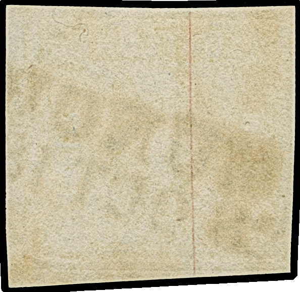 1 Kr. tiefschwarz, Platte 2, sehr farbfrisch und allseits breitrandig mit an drei Seiten voller und oben teilweiser Schnittlinie, sauber mit gMR “224” (Nellenbruck) entwertet und in tadelloser Erhaltung. Bei Helbig-Vogel sind drei lose Marken der Mi.-Nr. 1 mit diesem Stempel registriert. Ein außergewöhnlich schönes Ausnahmestück dieser seltenen Marke, Fotoattest Brettl BPP (2004)