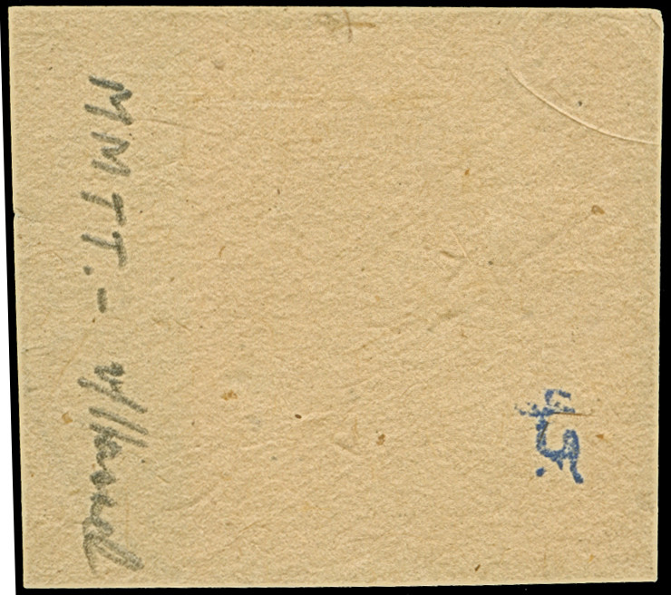 “DSP BOMBAY-LINIE *f (?) 20.2.11” recht klar in Violett auf Kaiseryacht 7½ H. mit Wasserzeichen auf Briefstück, in einwandfreier Erhaltung