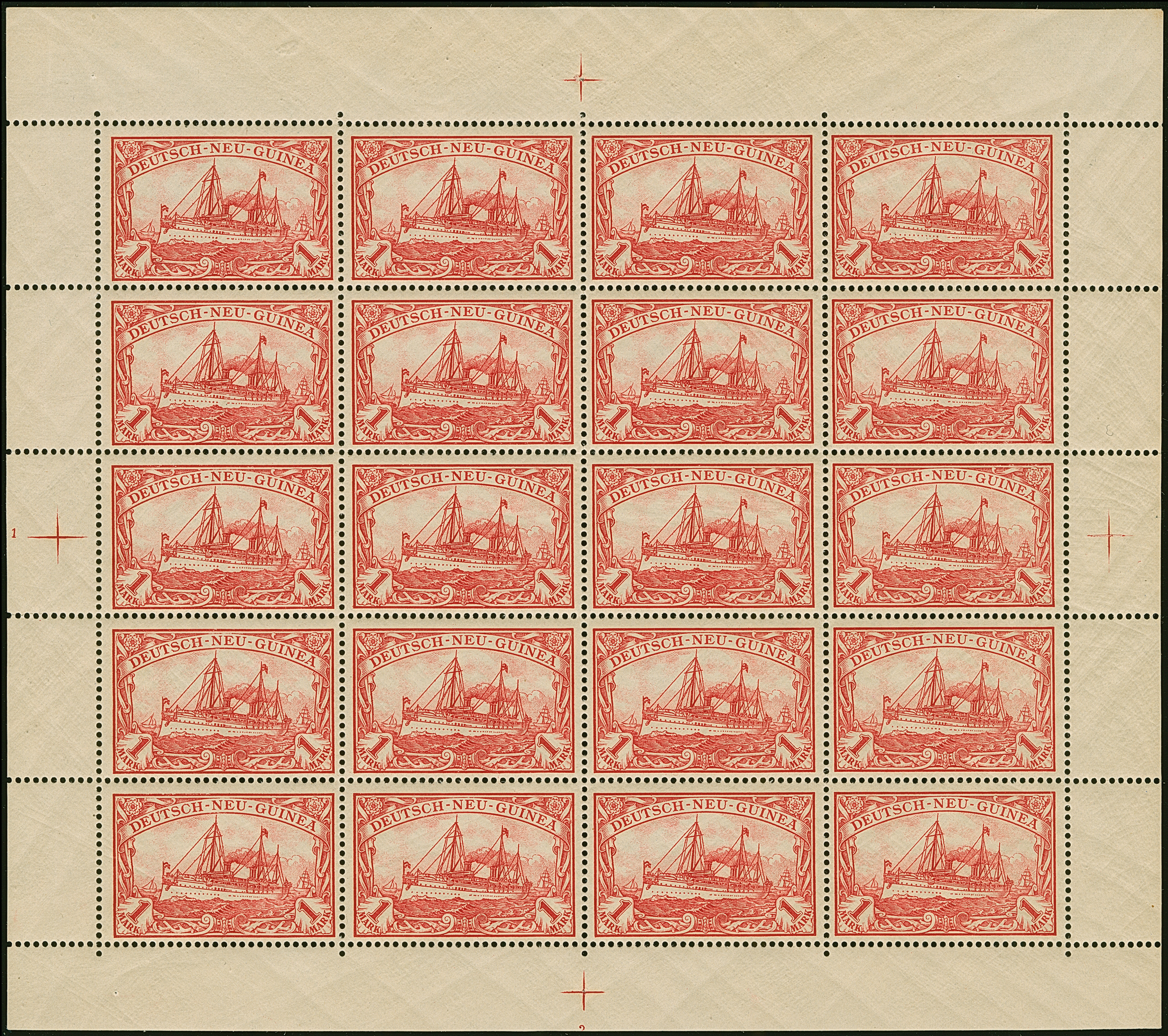 1900, Kaiseryacht 1 M. ohne Wasserzeichen im kpl. Bogen mit 20 Werten, postfrisch, übliche Kalanderbüge, in einwandfreier Erhaltung