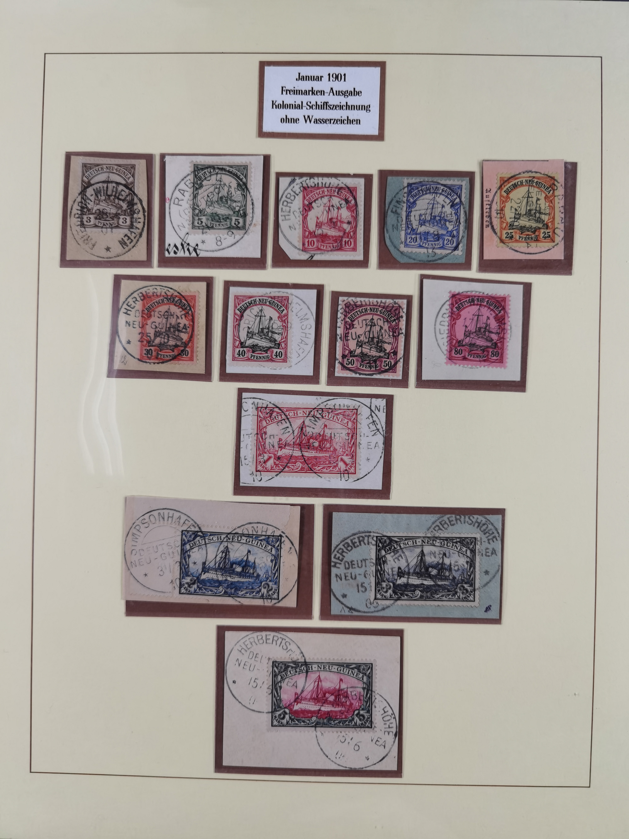 1897/19, in den Hauptnummern kpl. Sammlung auf Briefstücken mit zusätzlich Mi.-Nr. 1b und 1c (mehrfach signiert). Dazu frankierte Ansichtskarte mit Stempel “HERBERTSHÖHE”, durchgehend in guter Erhaltung, bessere oft signiert