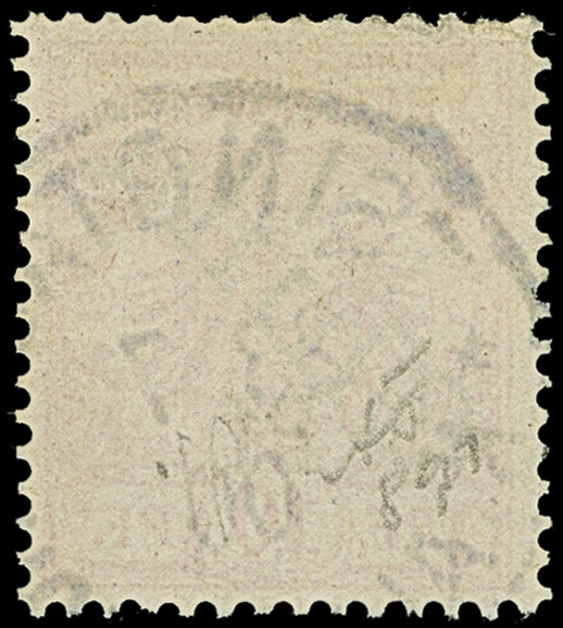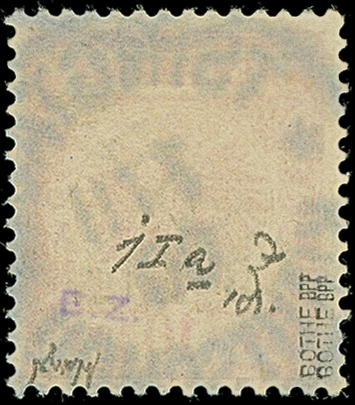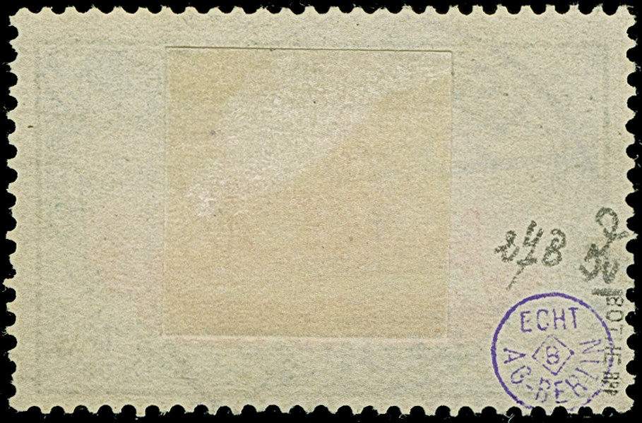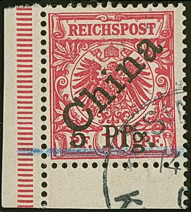 1900, 5 Pfg. auf Diagonalaufdruck 10 Pfg., Aufdrucktype 5a, aus der linken unteren Bogenecke (Feld 41), gestempelt, in einwandfreier Erhaltung. Die Aufdrucktype 5a kommt nur einmal im Halbbogen vor, sign. Bothe BPP