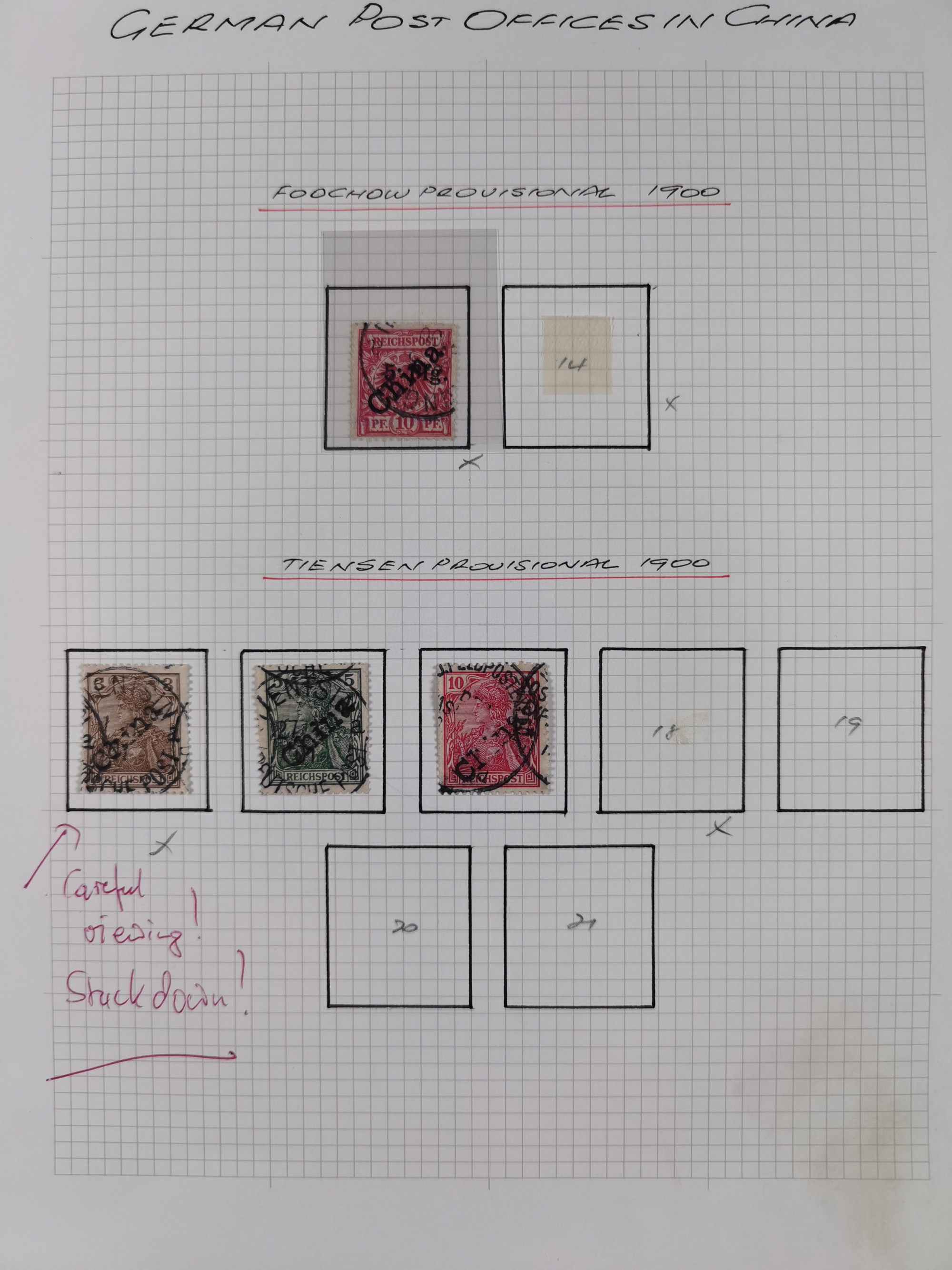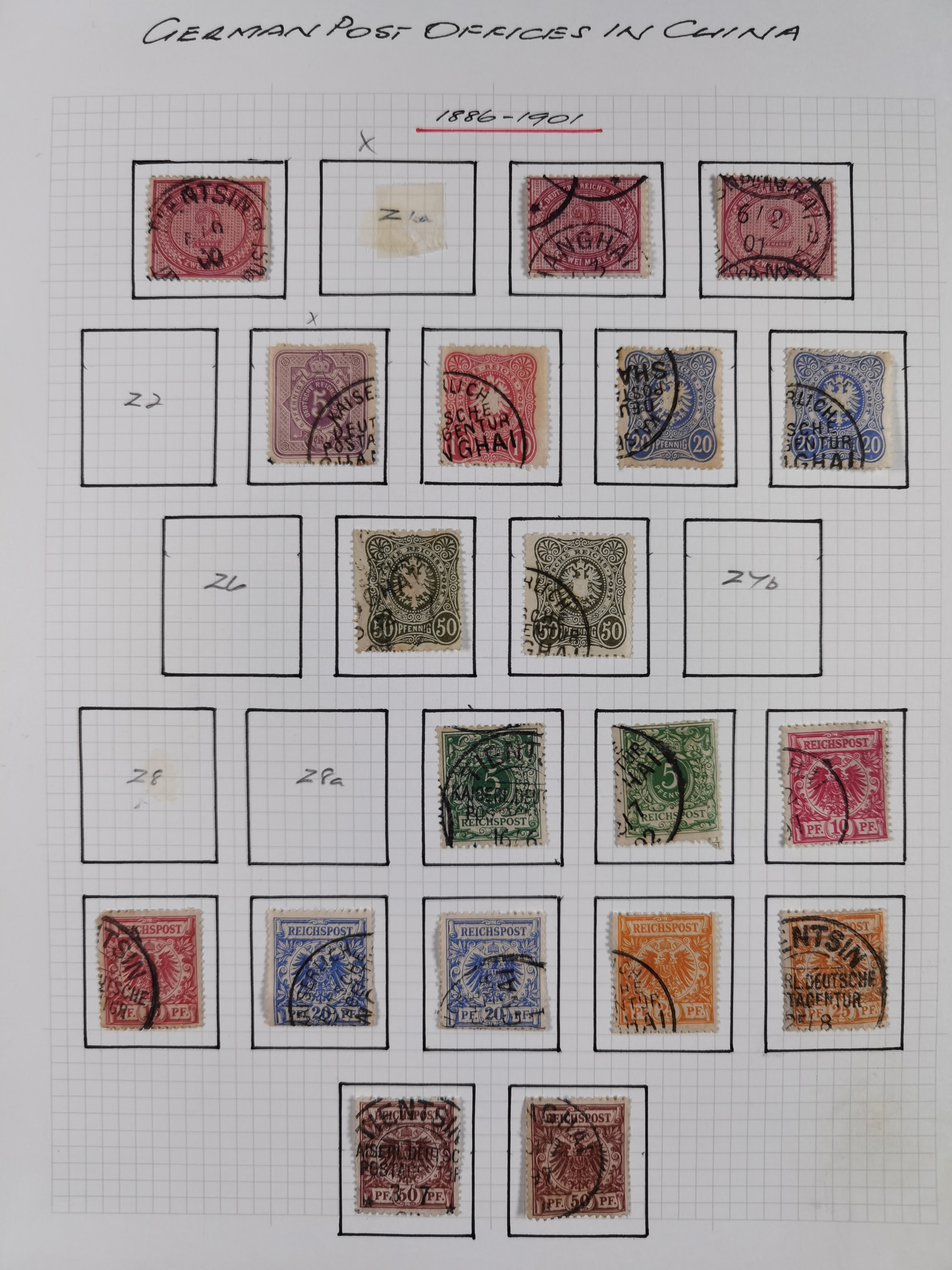 1890/1918, ungebrauchte und meist gestempelte Sammlung mit Vorläufer, bessere Werte dabei u.a. Deutsche Kolonien Kiautschou Mi.-Nr. 2 gestempelt (signiert Hoffmannn and Diesecke BPP) sowie 37 gestempelt, China Mi.-Nr. 11 gestempelt (etwas unfrisch), etc., zum Teil signiert, bis auf gelegentliche Fehler in guter Gesamterhaltung