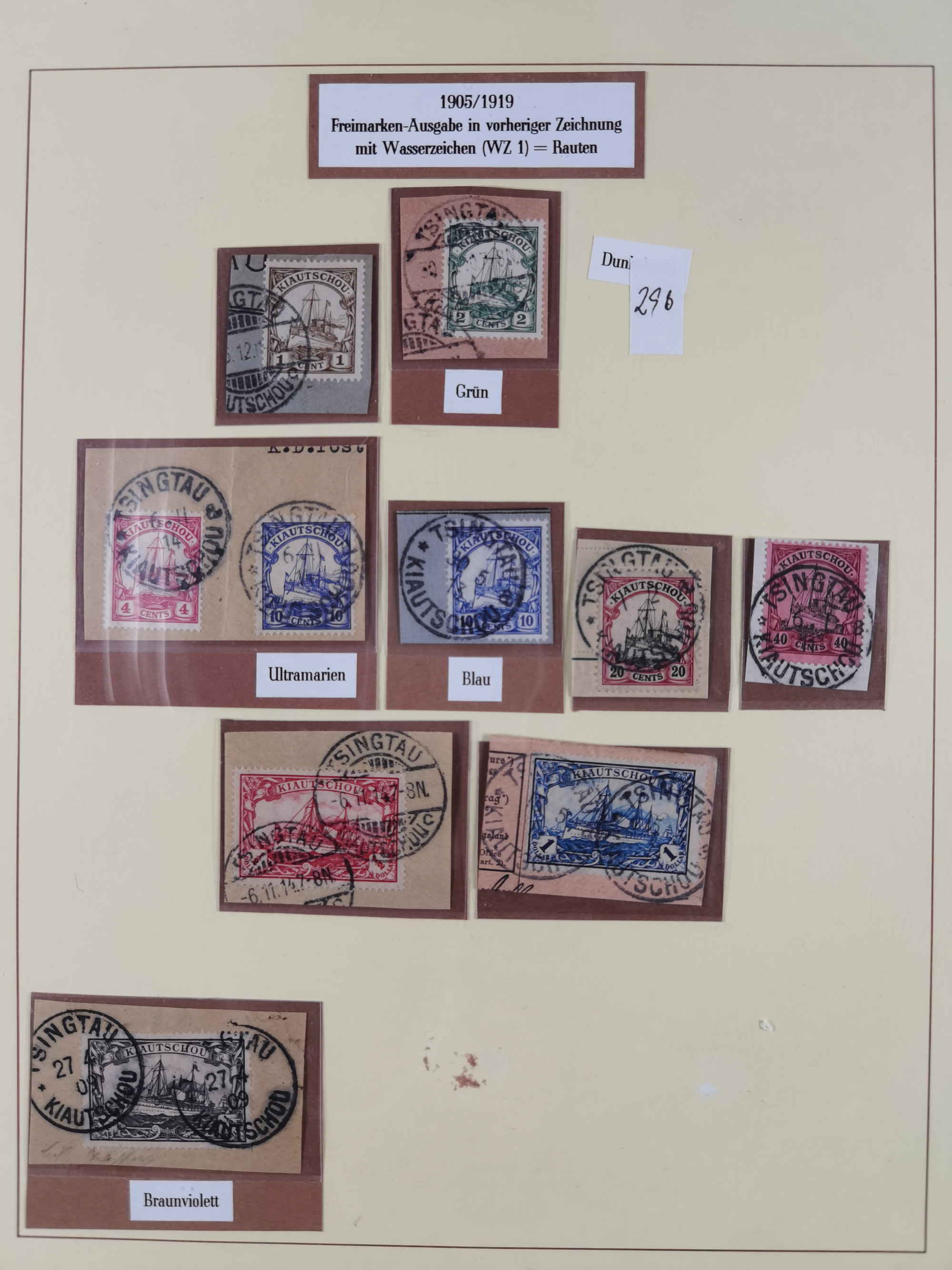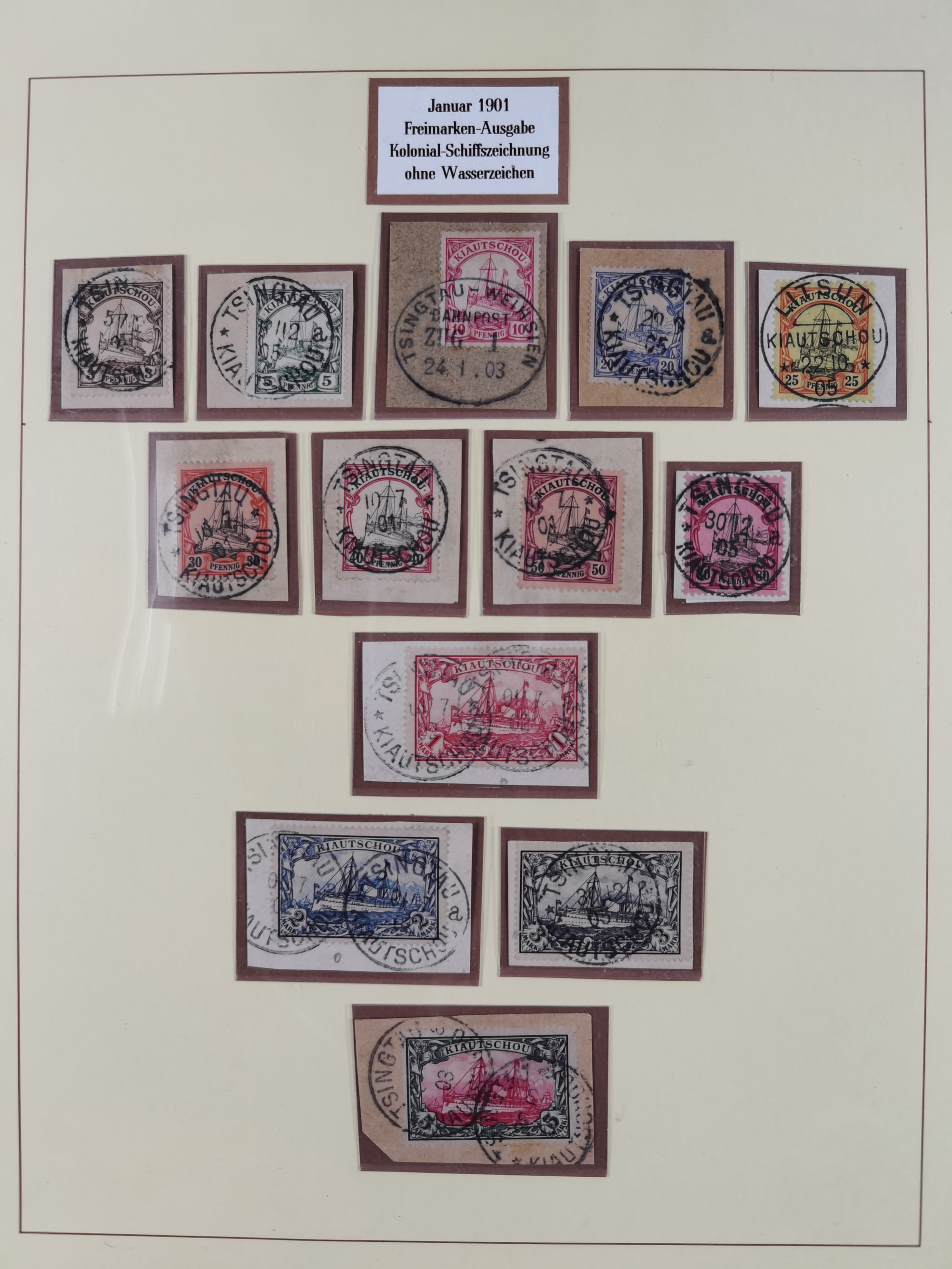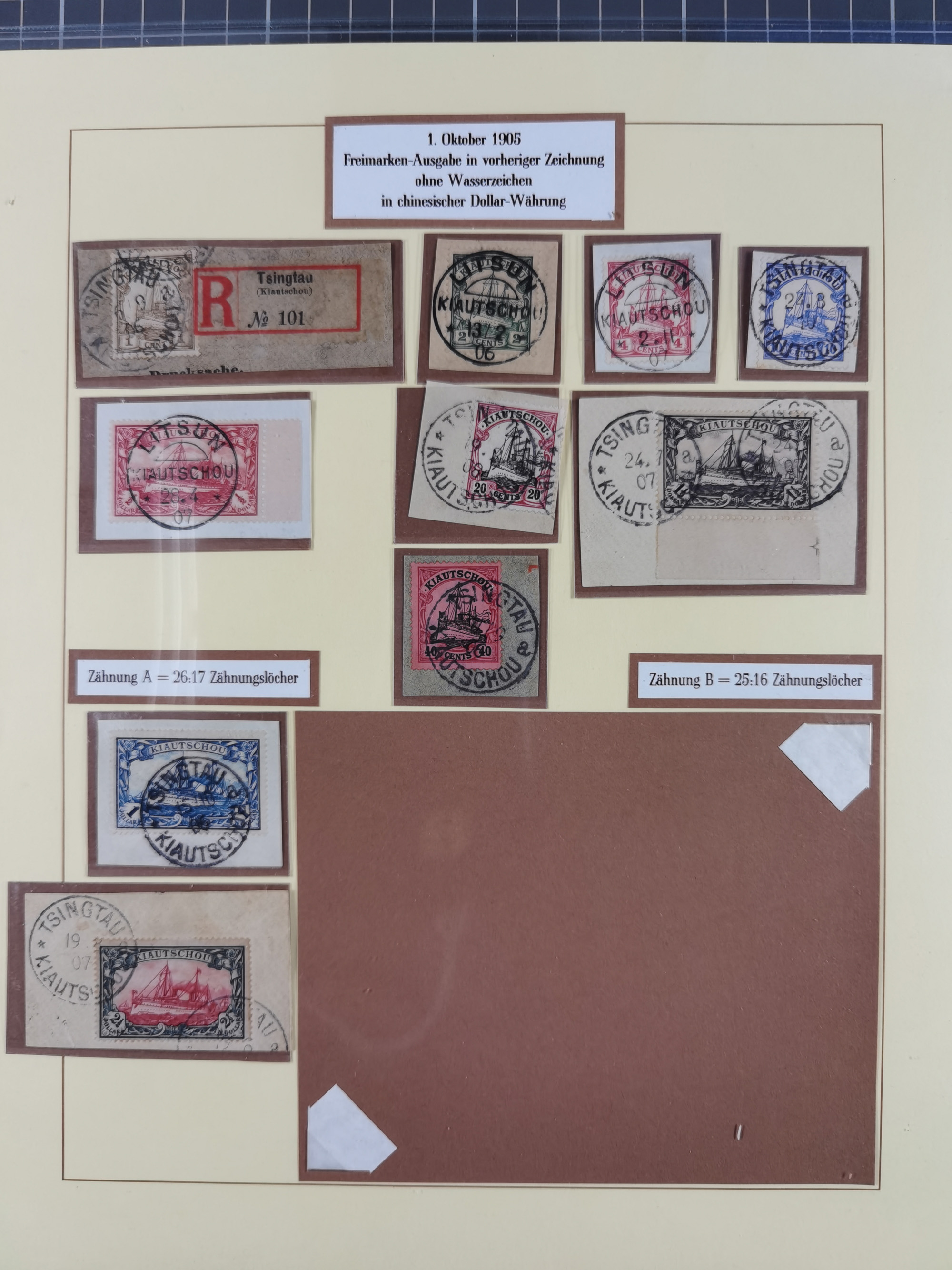 1898/1909, Sammlung ab Vorläufer-Ausgaben auf Briefstücken mit besseren und kpl. Ausgaben. Dabei u.a. Mi.-Nr. 2 mit Stempel “TAPATUR DP” auf fehlerhafter chinesischer Ganzsachenkarte (Formblatt, FA Carl. M. Lange), Mi.-Nr. 5-17 kpl., Mi.-Nr. 18-27A kpl. (Mi.-Nr. 26A mit FA R.Steuer BPP, Mi.-Nr. 27 mehrfach signiert) und Mi.-Nr. 28-36IAa. Bessere Marken oft signiert und durchgehend in guter Erhaltung