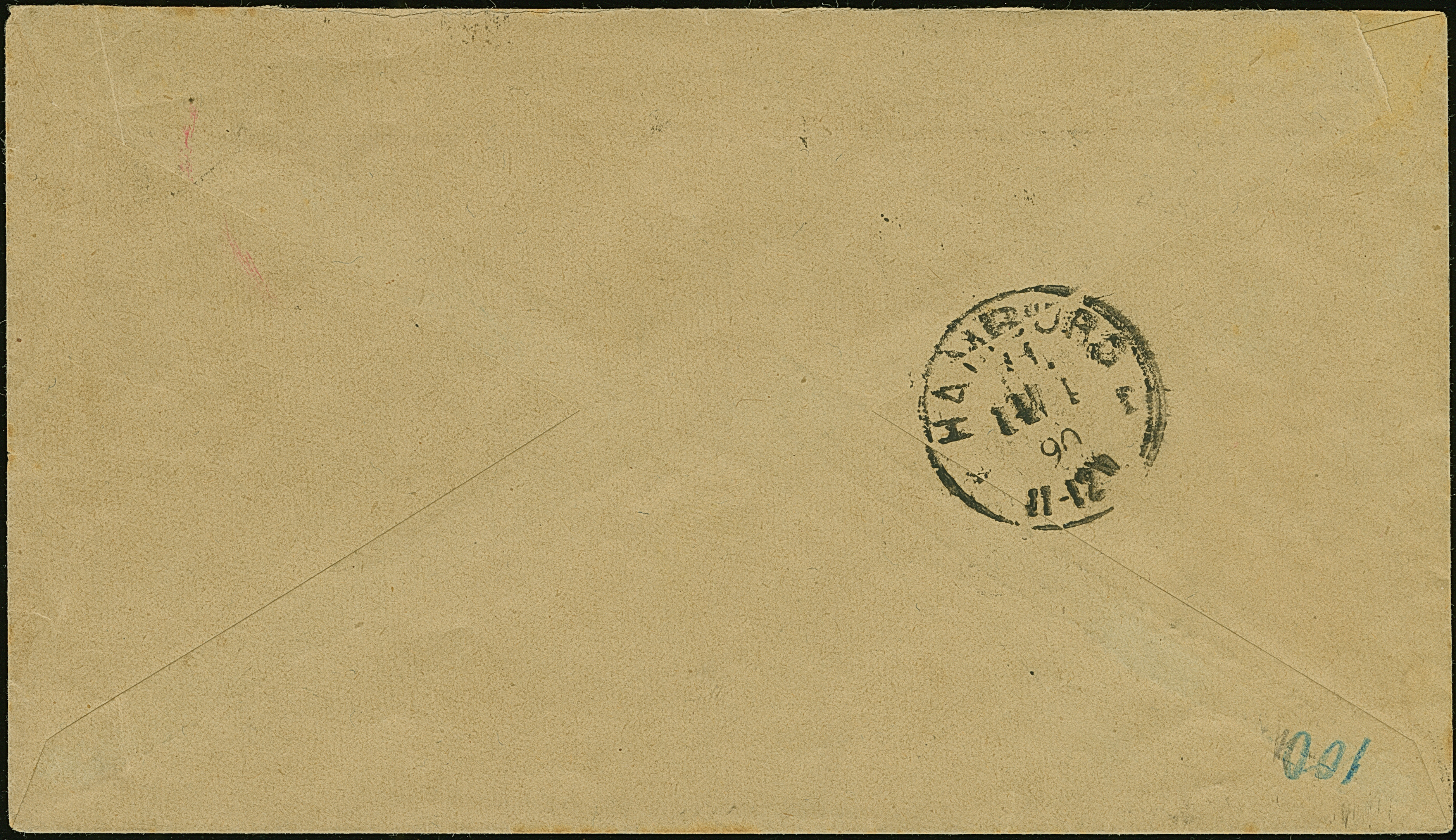1890, Krone/Adler 10 Pf. karminrosa im senkrechten Paar mit Rahmenstempel “AUS WESTAFRIKA” auf Vordruckbrief der Firma “Bödecker & Meyer, Lome..” mit handschriftlichem Aufgabevermerk “Lome 13/3.90 ” in Rot nach Hamburg mit Ankunftsstempel. Die Marken links zum Teil mit Gelbflecken in der Zähnung und obere Marke mit Gummifleck, ansonsten in guter Erhaltung. Ein interessanter Seepost-Vorläuferpost mit dieser äußerst seltenen Farbe, Fotoattest Dr. F. Steuer BPP (1994)