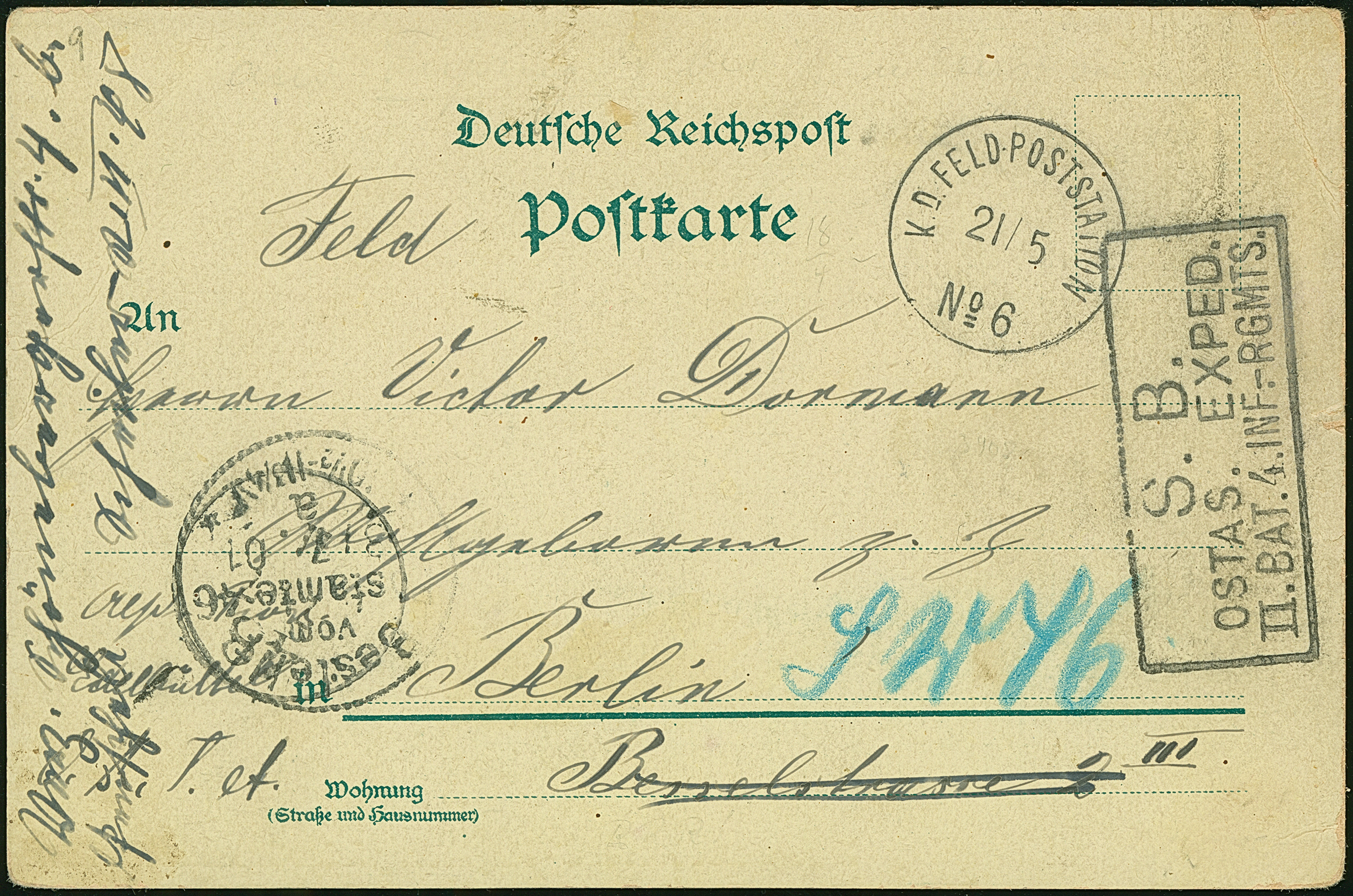 1901, “K.D.FELD.POSTSTATION No. 10 10.6.” klar auf Feldpost-Ansichtskarte mit viel Text nach Berlin mit vorderseitigem Ankunftstempel, kleine Randspuren
