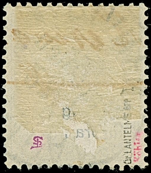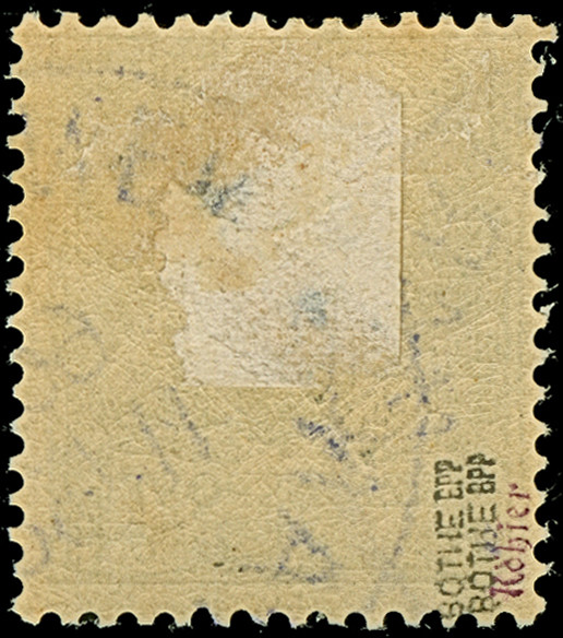 1900, 5 Pfg. auf Diagonalaufdruck 10 Pfg., Aufdrucktype 5a, aus der linken unteren Bogenecke (Feld 41), gestempelt, in einwandfreier Erhaltung. Die Aufdrucktype 5a kommt nur einmal im Halbbogen vor, sign. Bothe BPP