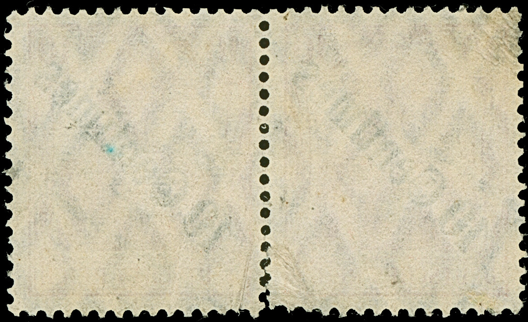 “SMYRNA DEUTSCHE POST 13.OKT.1913”, sogen. Rosinenstempel ohne Sterne, zwei Teil-Abschläge auf senkrechtem Dreierstreifen Ausgabe 1908 10 C. auf 10 Pfg. jeweils mit Firmenlochung “F.C.”. Die Einheit ist üblich gezähnt und vorgefaltet, die untere Marke hat eine kleine Kerbe, ansonsten in guter Gesamterhaltung