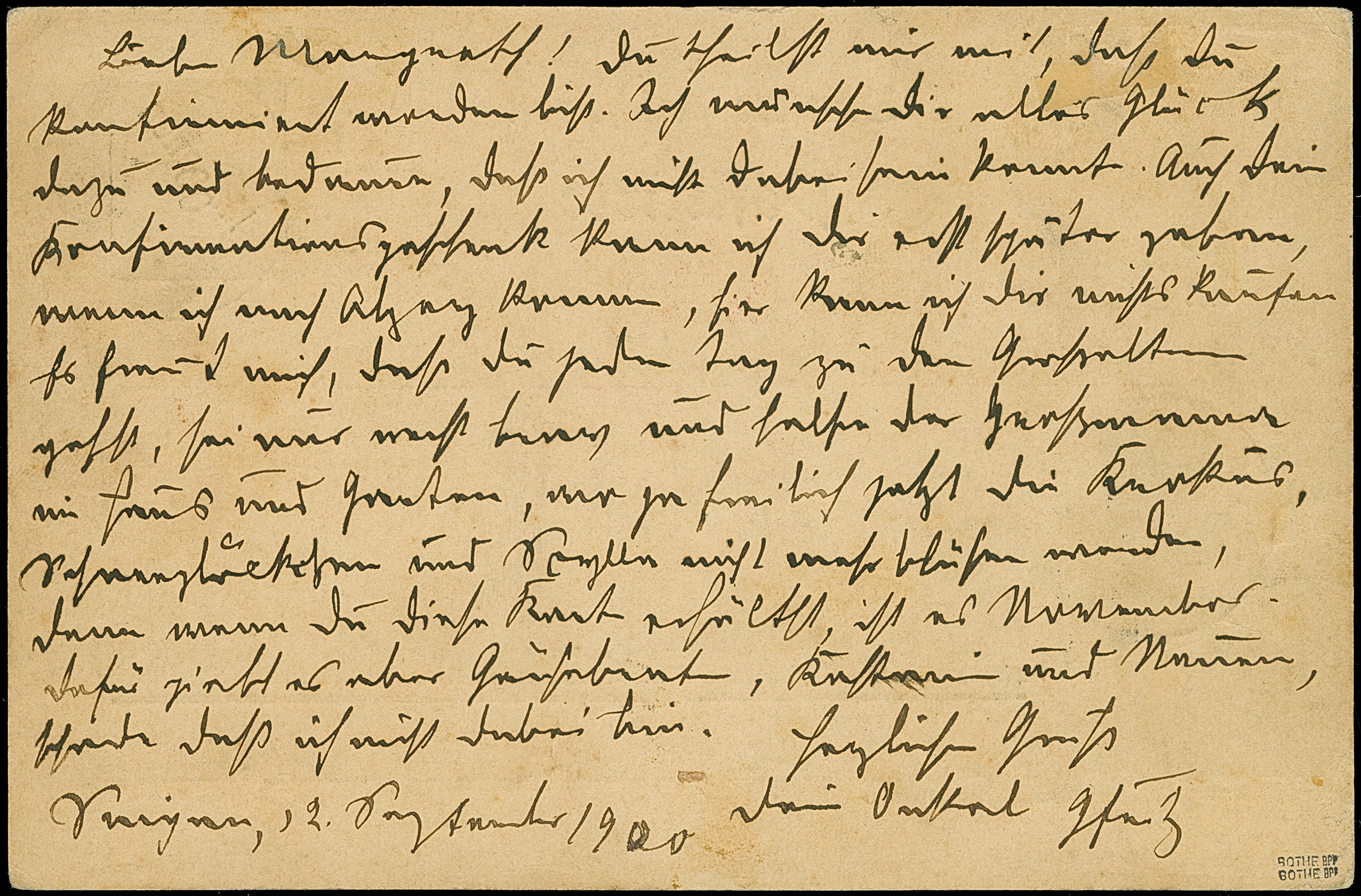 1900, Aufdruck-Karte 5 Pfg. ohne Wasserzeichen, gebraucht mit Stempel “SAIPAN MARIANEN 12.9.00” und viel Text nach Alzey mit Ankunftsstempel. Die Karte mit Stockflecken, ansonsten in guter Erhaltung, doppelt signiert Bothe BPP