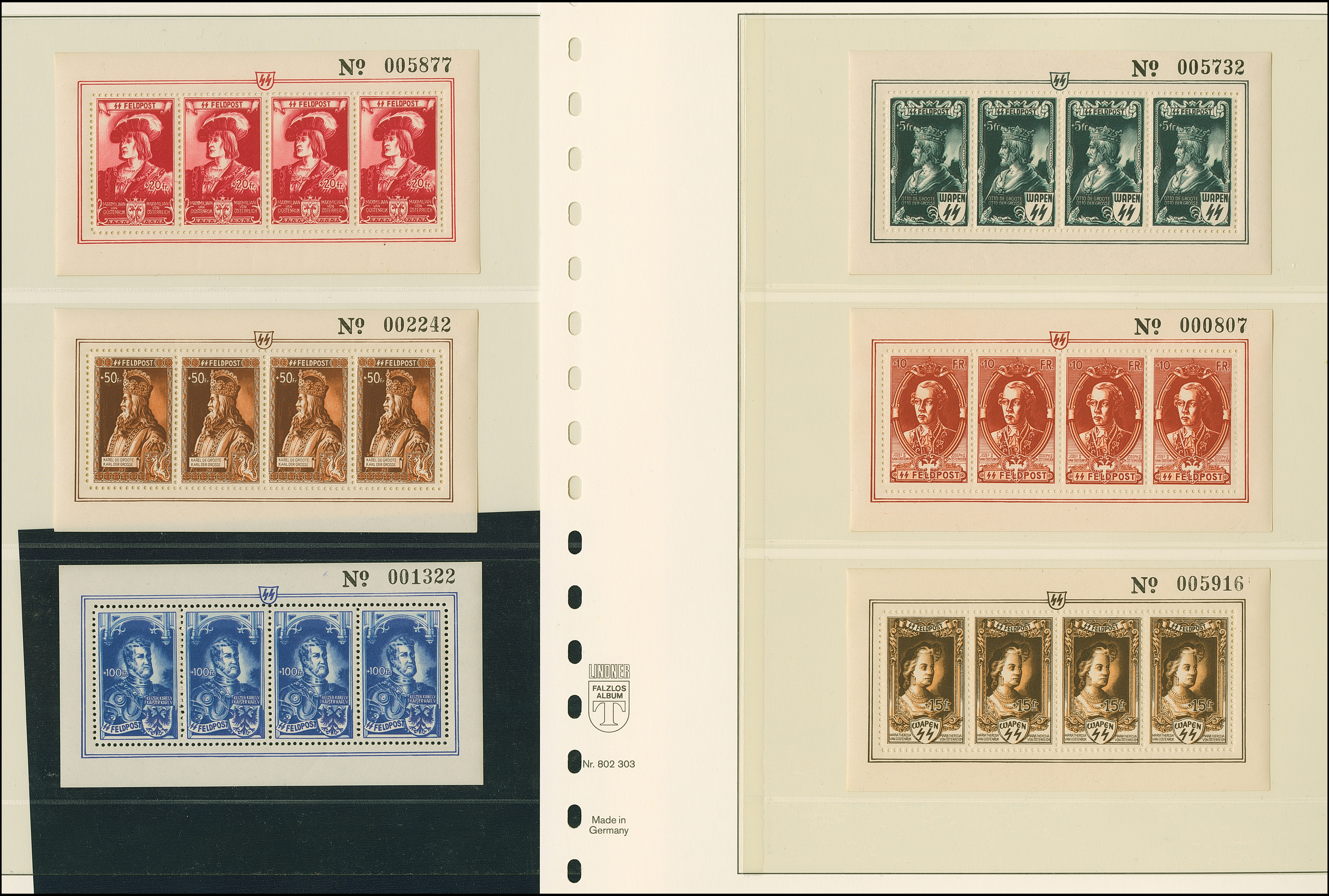 1943, Kaiserbildnisse 5-100 Fr. kpl. im Kleinbogensatz, postfrisch, tadellos