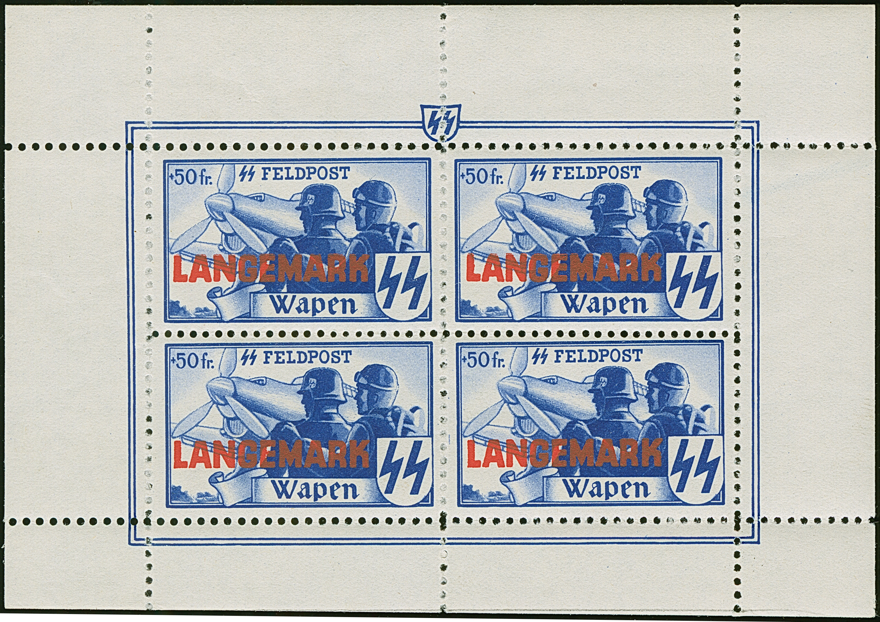 1944, Langemark 50 Fr., gezähnt im Kleinbogen mit vier Werten, postfrisch, einwandfrei