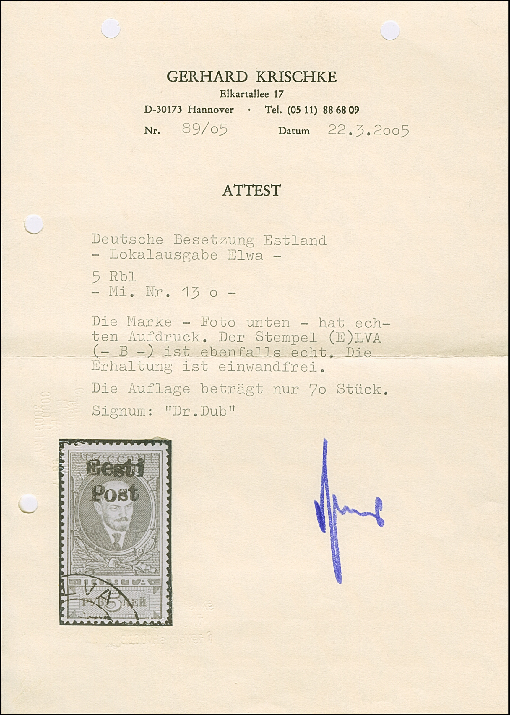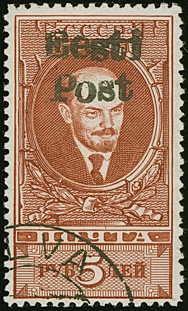 1941, Lenin 5 Rubel rötlichbraun, farbfrisch und gut gezähnt, sauber gestempelt, tadellos, eine seltene Marke mit einer Auflage von nur 70 Stück, davon nur ein kleinerer Teil überhaupt noch verfügbar, sign. Dr. Dub sowie Fotoattest Krischke (2005)