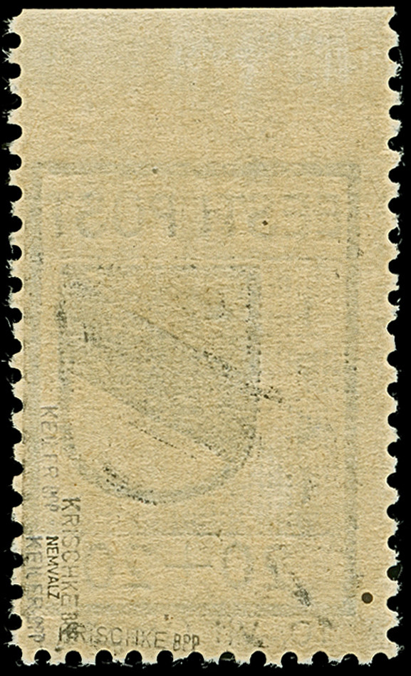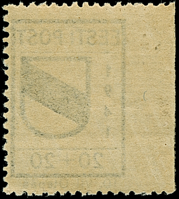 1941, Wappenschild 20 Kopeken, gezähnt, Type II, farbfrisch und gut gezähnt, mit fehlendem Blaudruck, links ungezähnt, postfrisch, tadellos, eine sehr seltene Marke, Fotoattest Krischke BPP (1994)