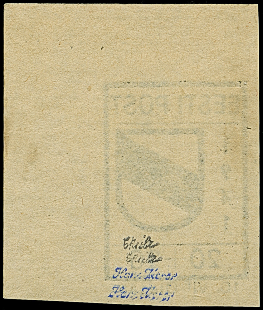1941, Wappenschild 30 Kopeken, gezähnt, Type II, rechte obere Bogenecke, mit fehlendem Blaudruck, postfrisch, tadellos, selten, u.a. sign. Hans Zierer sowie Fotoattest Krischke BPP (1996)