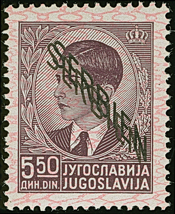 1941, 5,50 Dinar dunkelviolettbraun, mit doppeltem Aufdruck, postfrisch, tadellos, sign. E. Diena mit Fotoattest (1987)