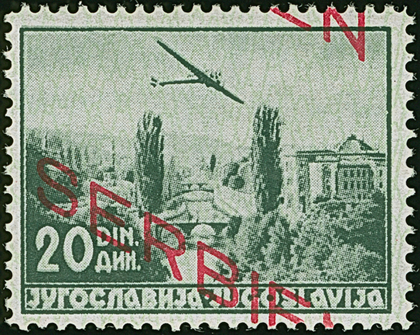1941, Flugpost 20 Dinar, mit stark verschobenem und dadurch geteiltem Aufdruck, postfrisch, tadellos, sign. Krischke BPP