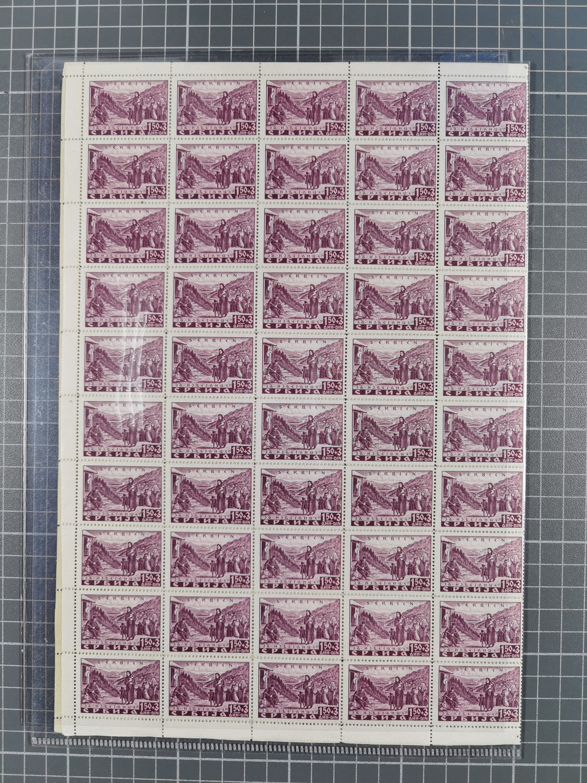 1941, Semendria 1,50 D., gezähnt 12½, kompletter Bogen (gefaltet) mit Plattenfehler “große weiße Stelle unten in O" (Feld 13), postfrisch, sehr gute Erhaltung