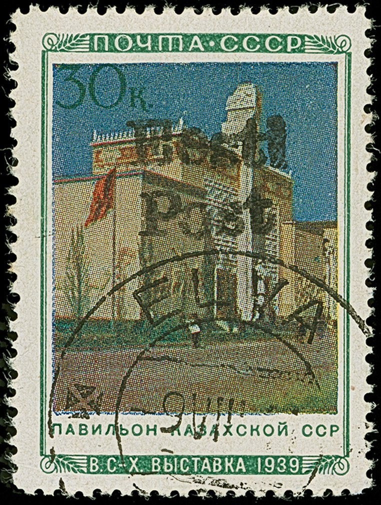 1941, Kirgisische SSR 30 Kopeken mehrfarbig, farbfrisch und gut gezähnt, sauber gestempelt, tadellos. Eine seltene Marke, ProFi hat lediglich 12 Stück registriert, unsigniert mit Fotoattest Krischke (2008)