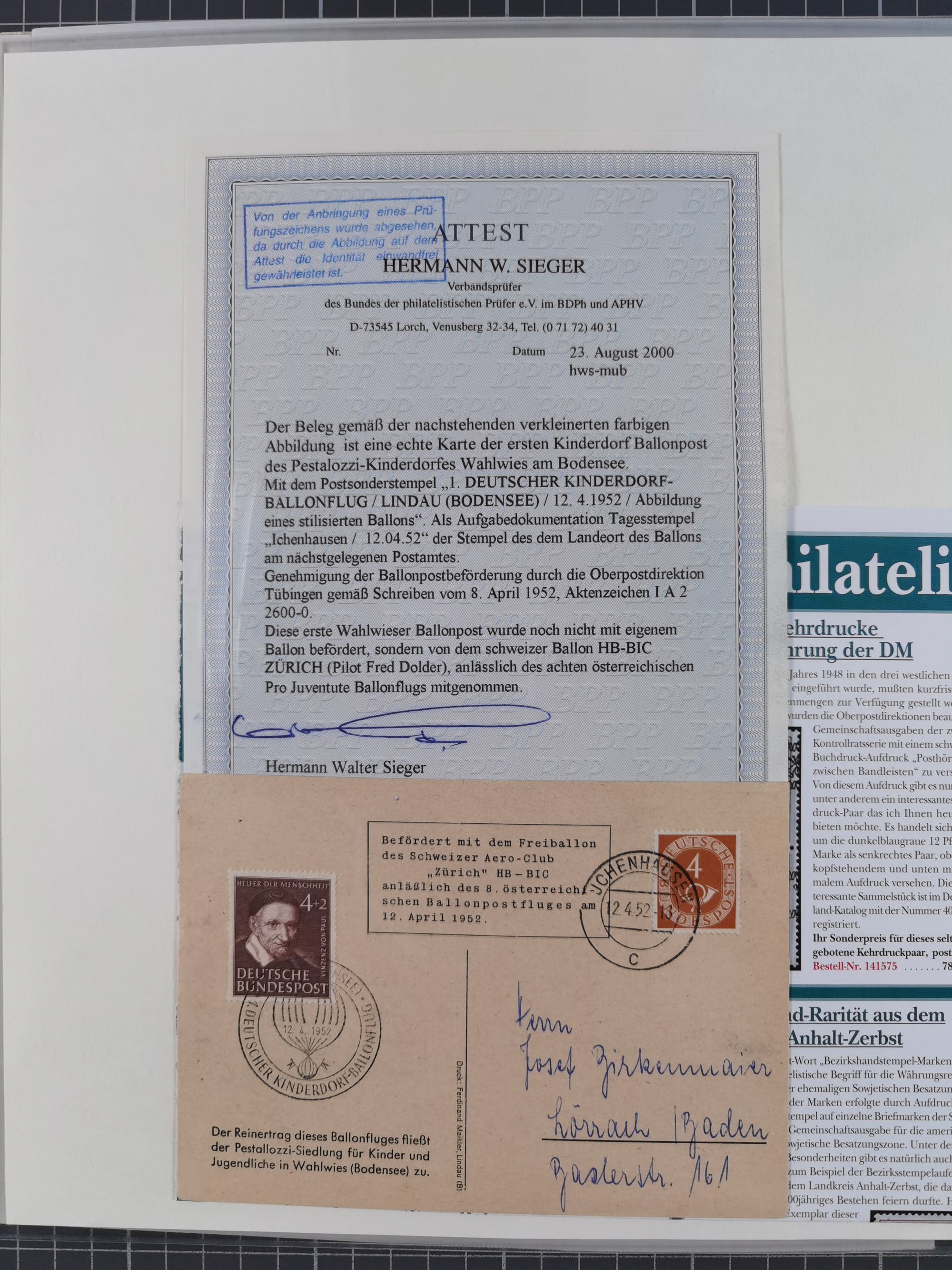1800/1970 (ca.) interessante Material-Sammlung von etwa 250 Belegen und wenigen Marken, dabei u.a. Dt. Reich Ersttagsstempel auf Loser Mi. 2 und U1, Ballon Monte-Brief, diverse Grenzrayon-Belege, etc., dabei auch wenig Ausland. Ex Dr. Heinz Jaeger