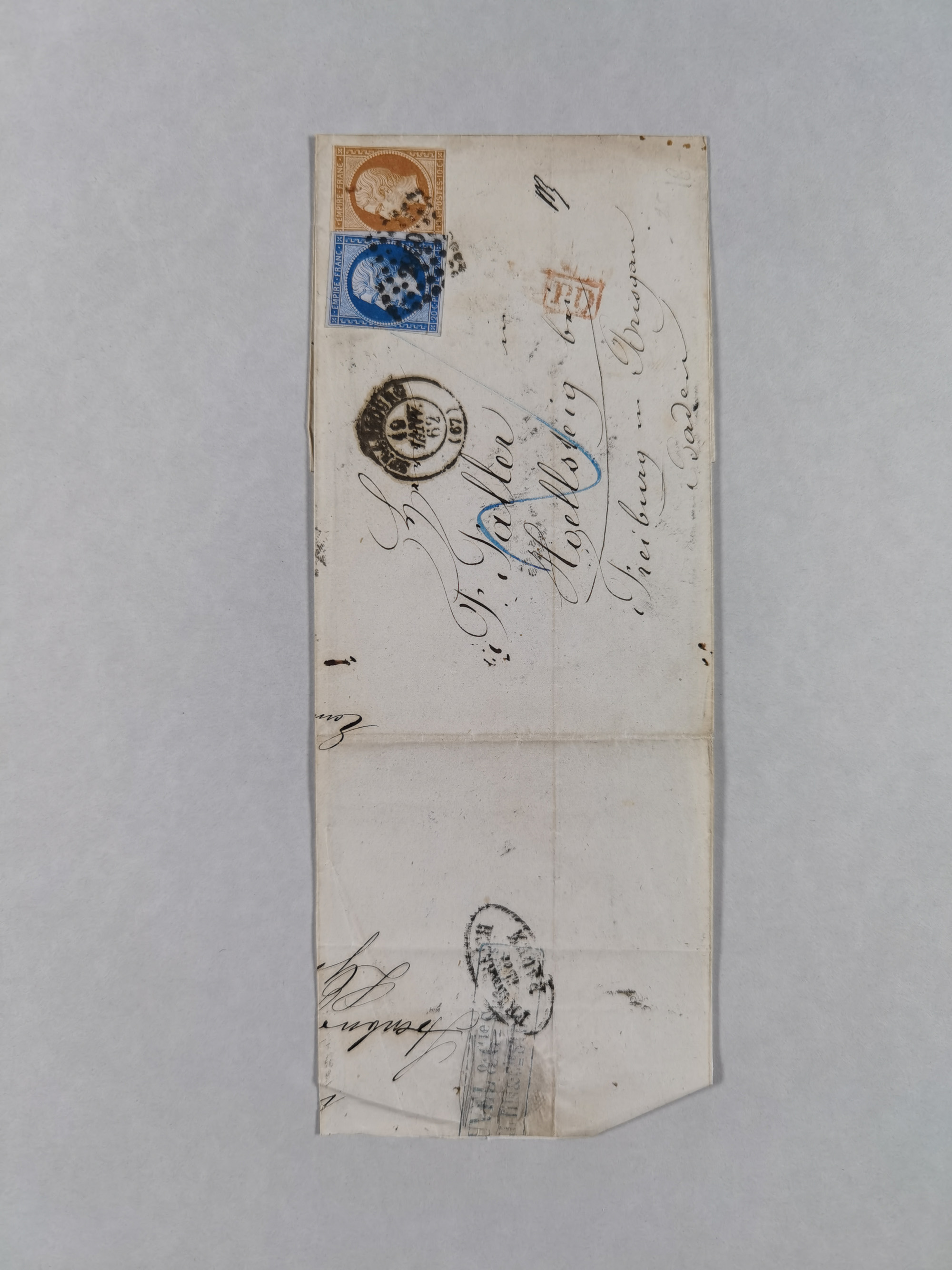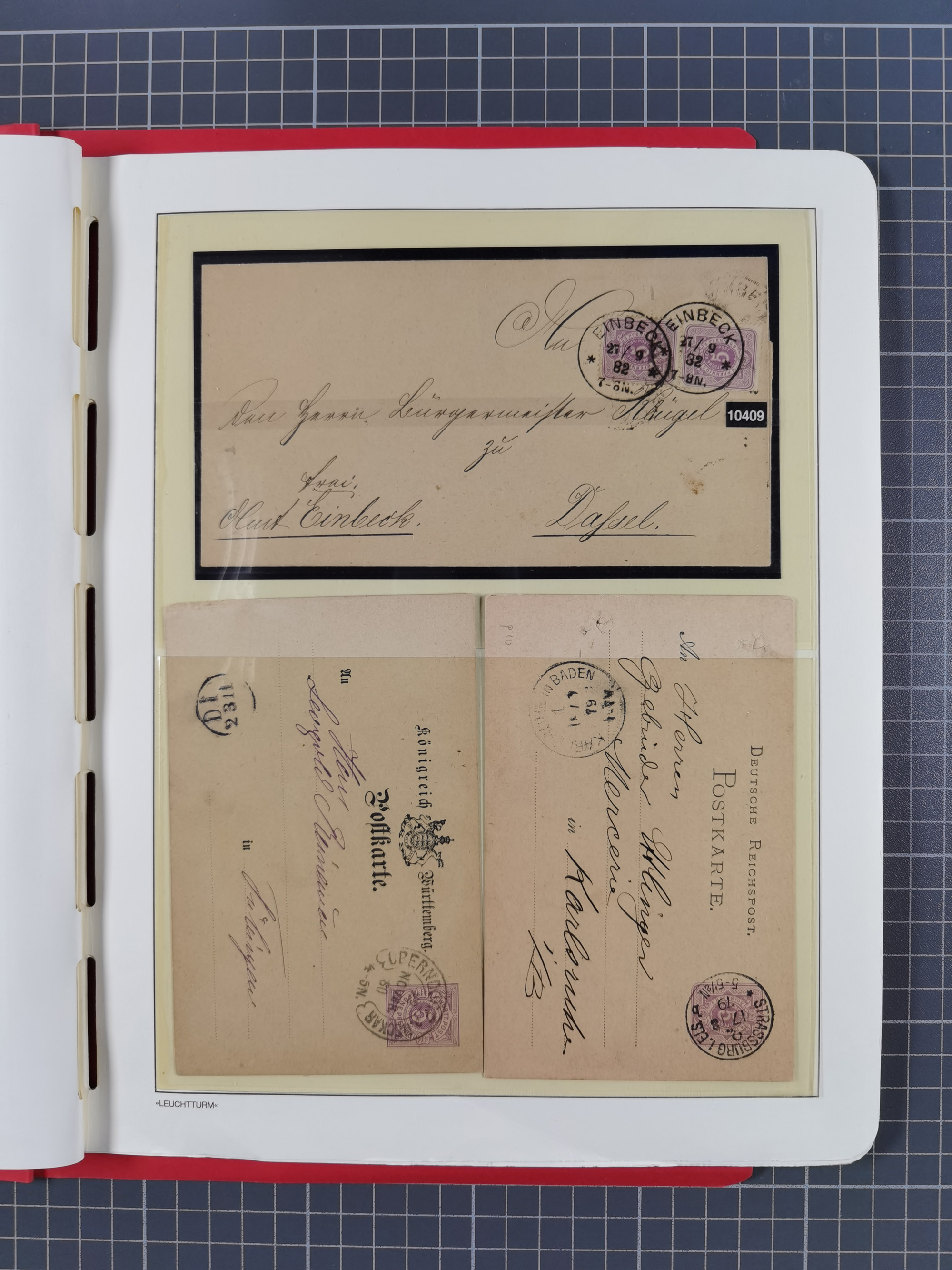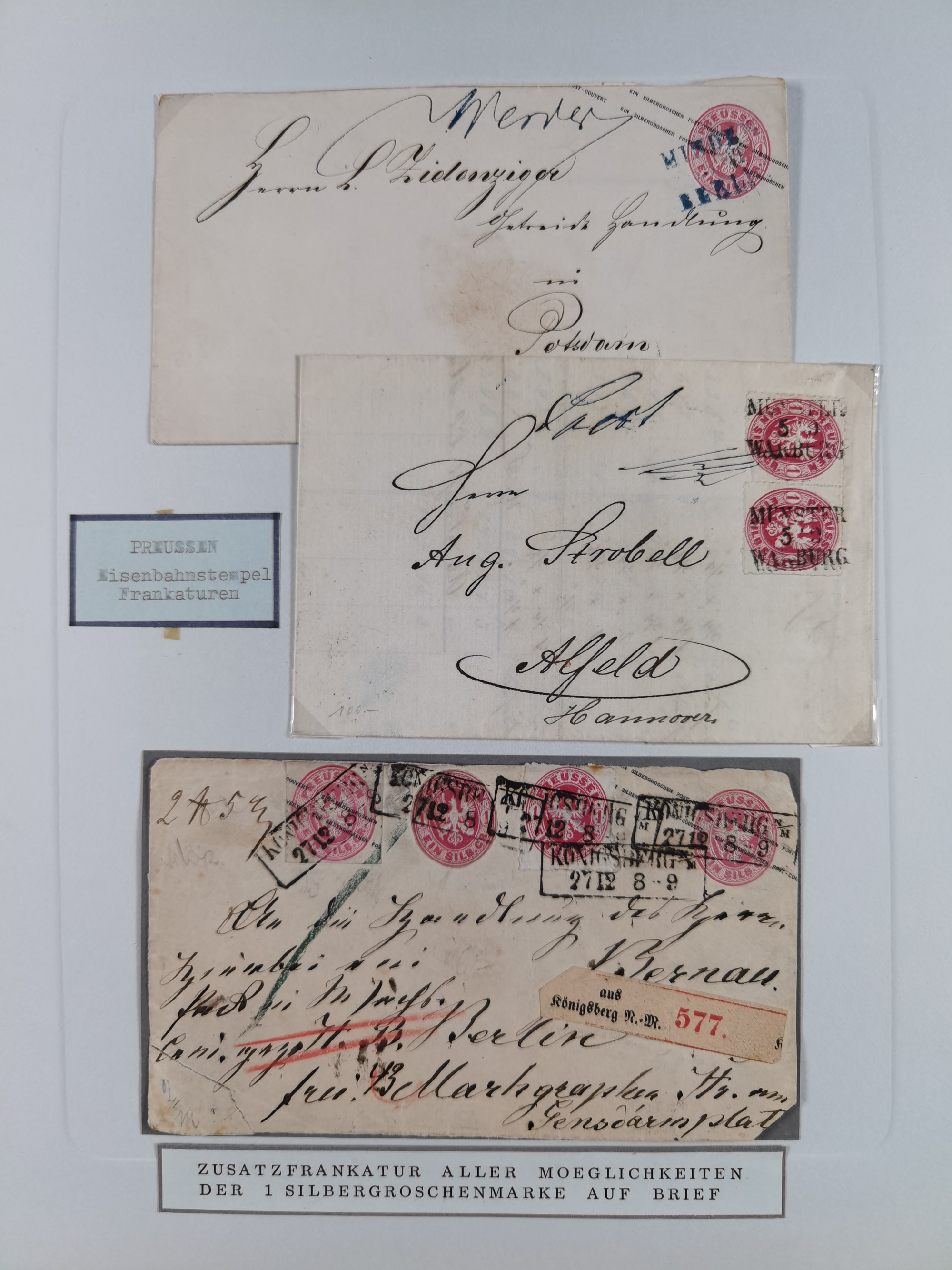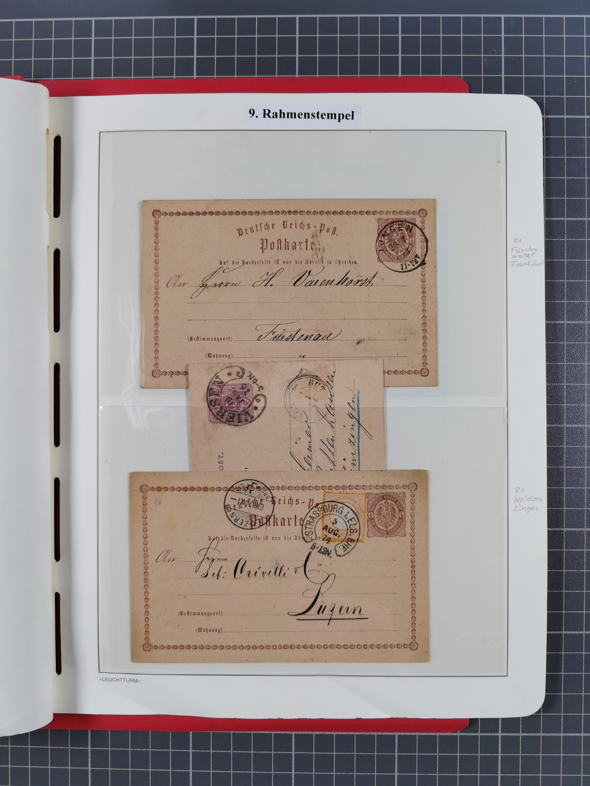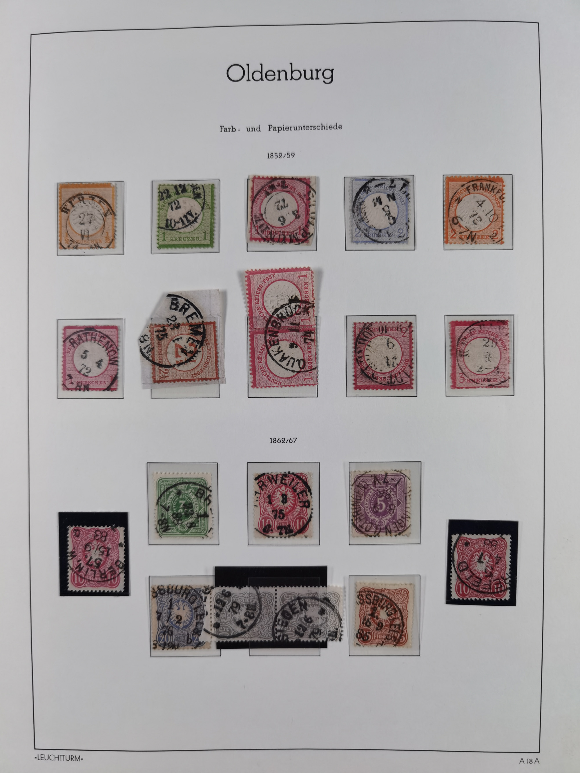 1865/1922, kleine Stempel-Sammlung auf losen Marken, Briefstücken und ca. 20 Briefen, Karten und GSK. Dabei u.a. Hufeisenstempel mit “STRASSBURG i. ELS.BHF” auf GSK P1+18, “ELBERFELD” auf Preußen-GSU und D. Reich Mi.-Nr. 4 im Paar auf Paketbegleitbrief von Lüneburg