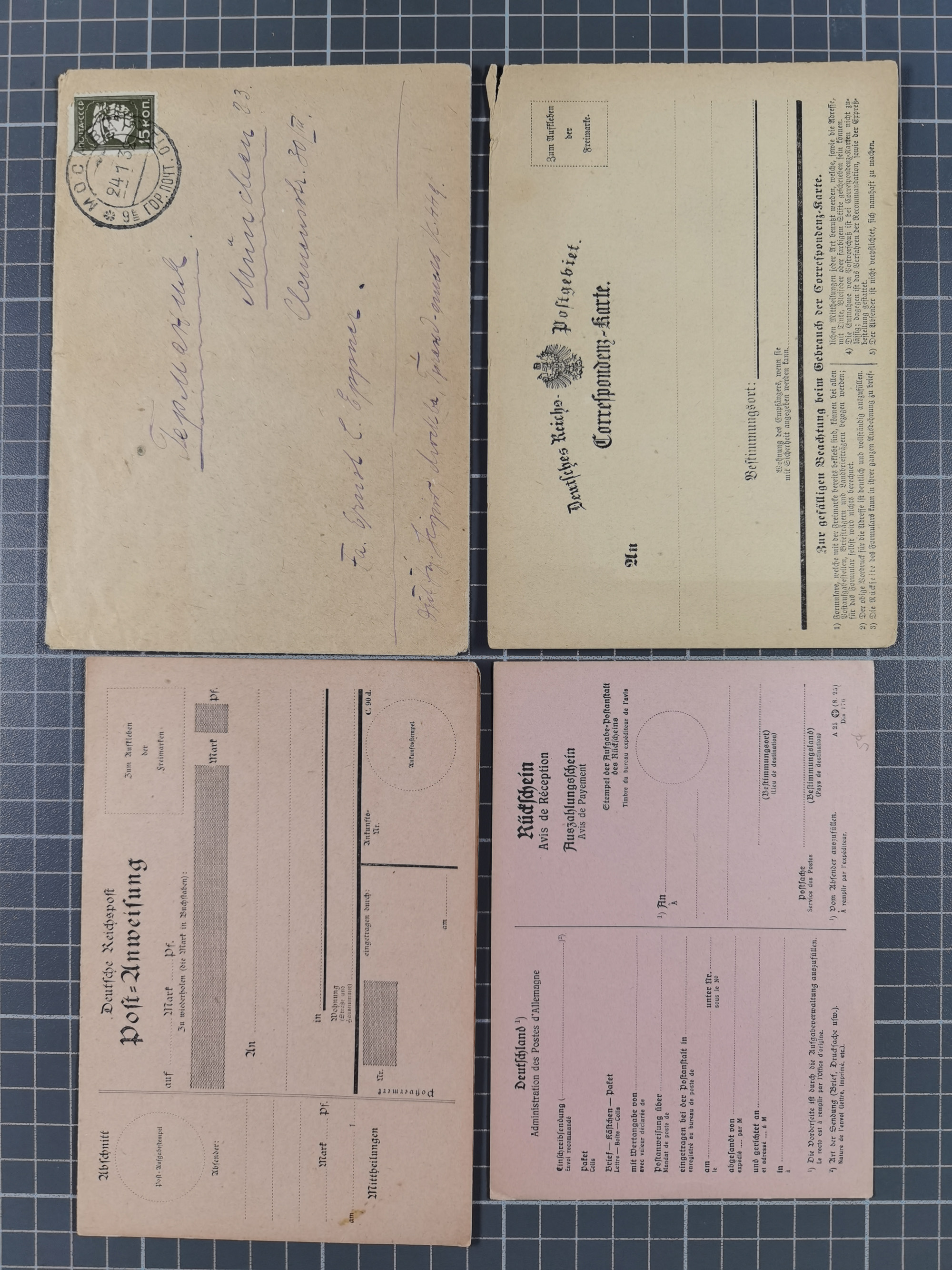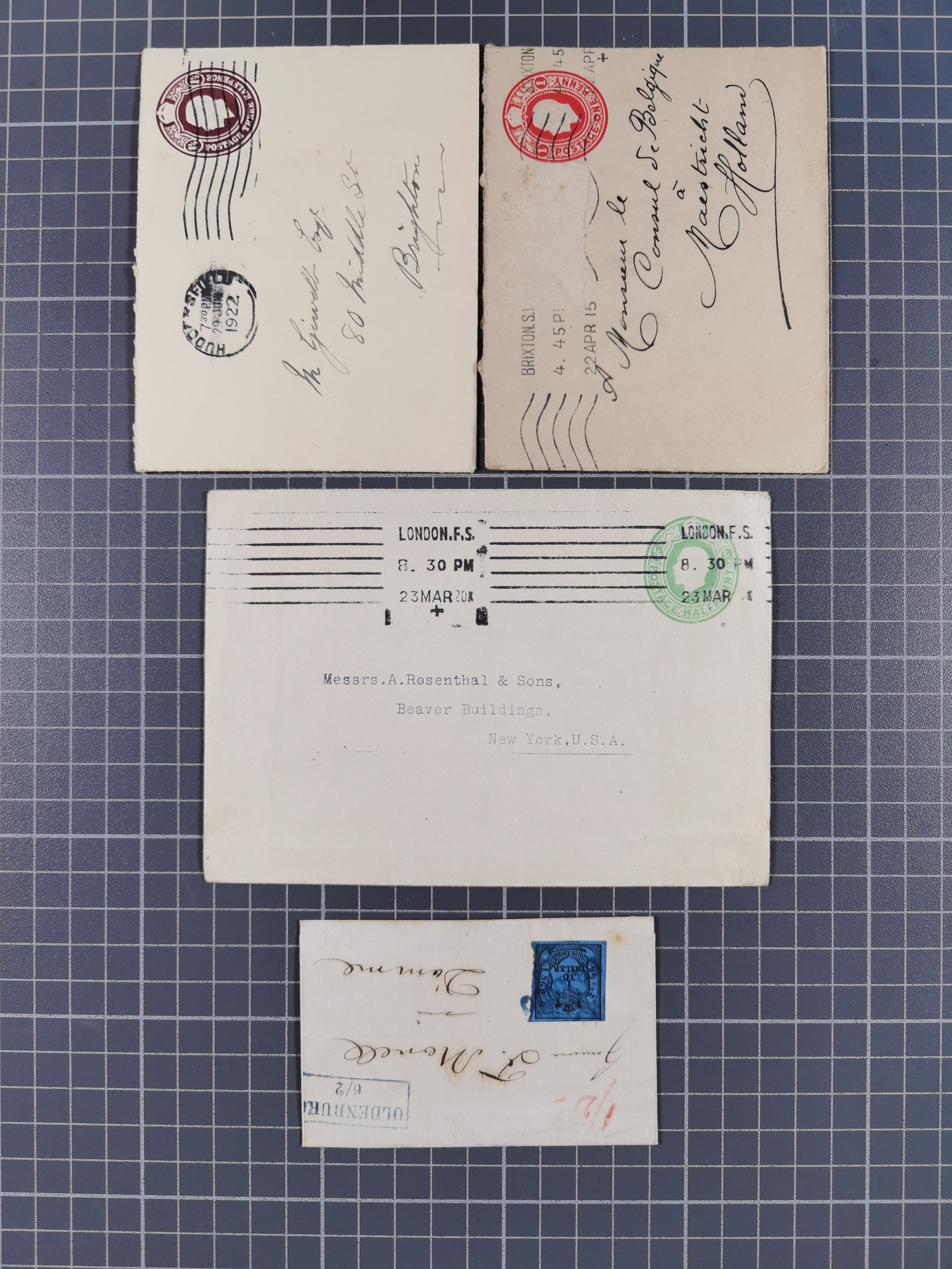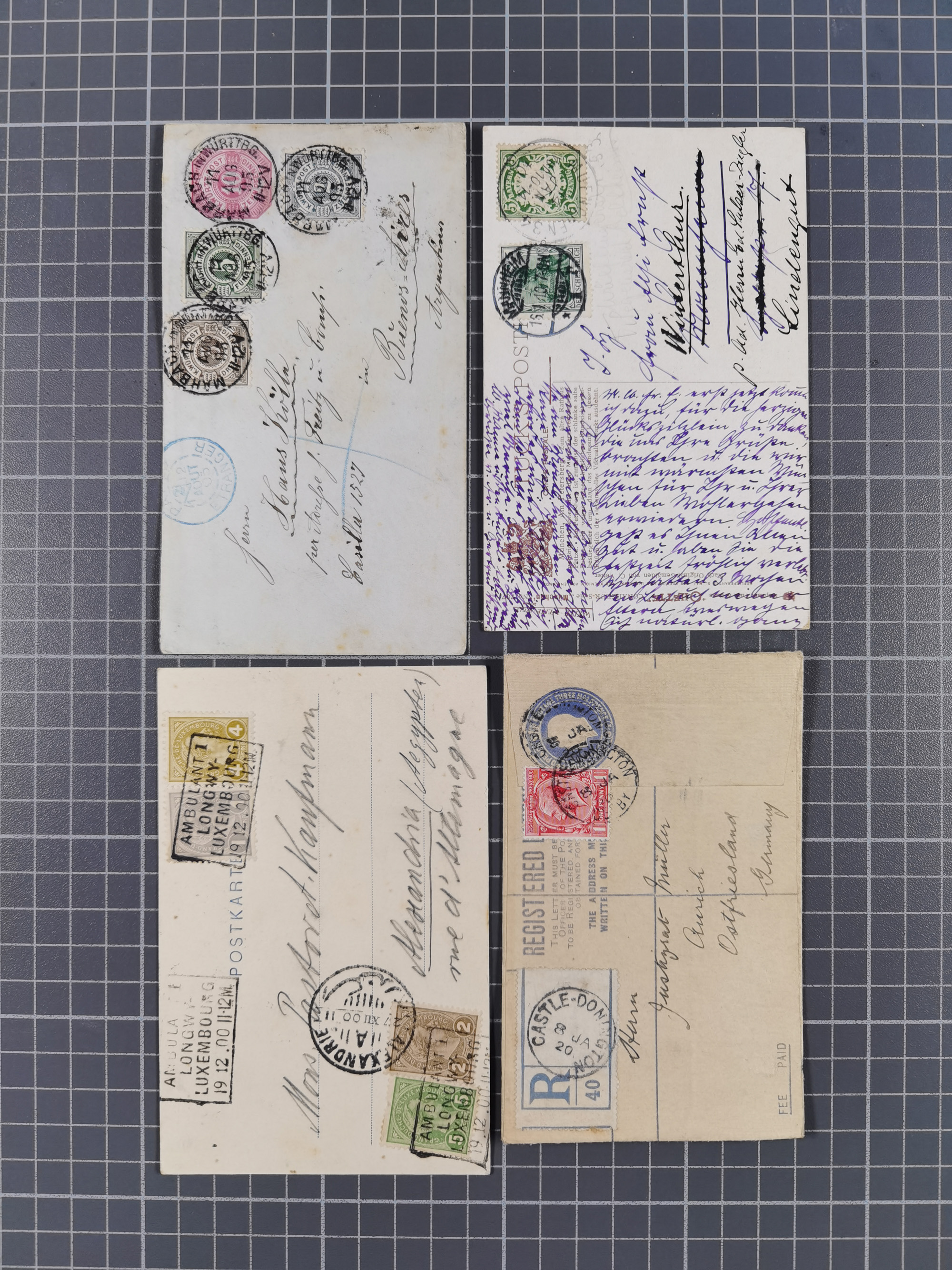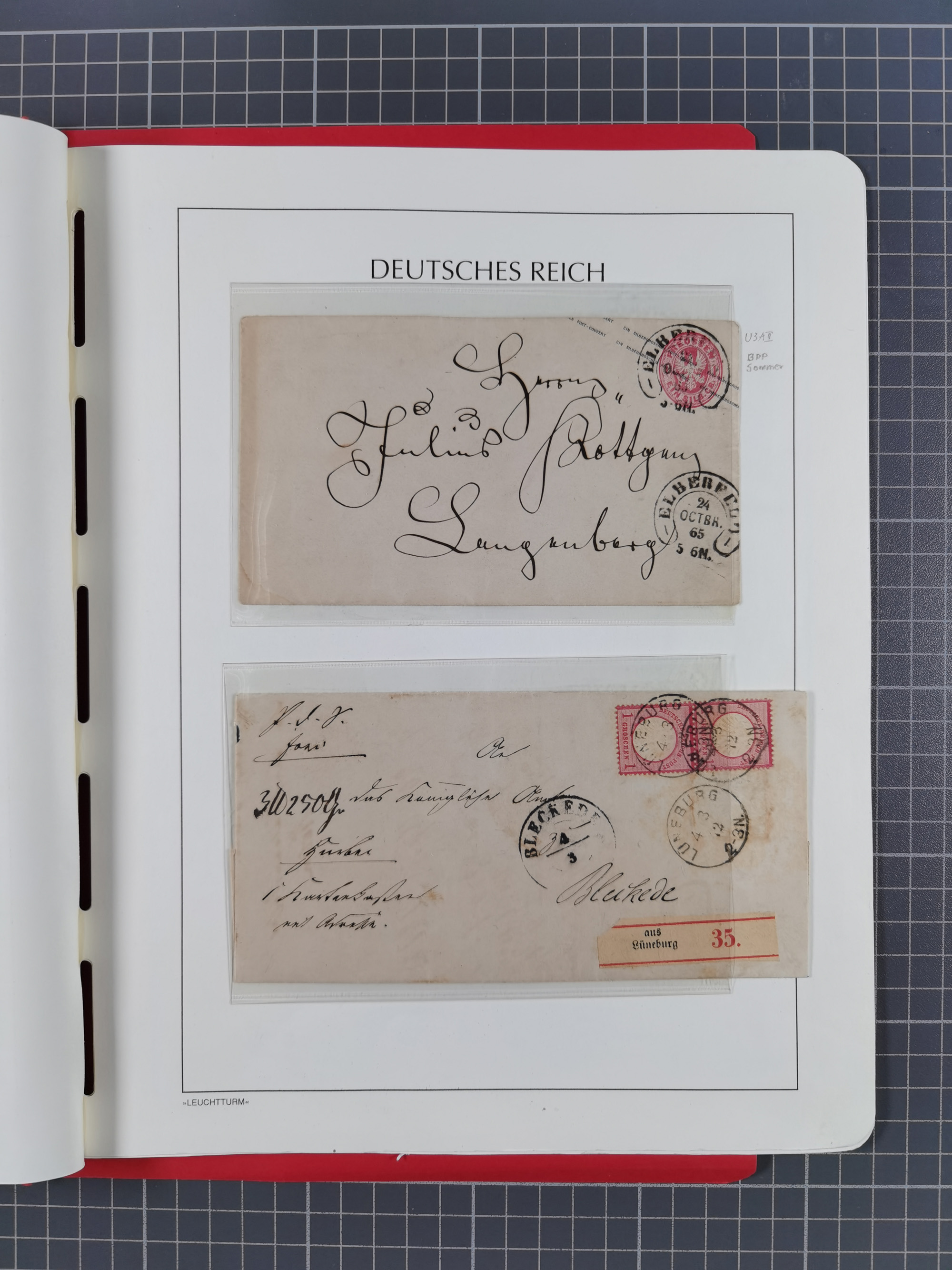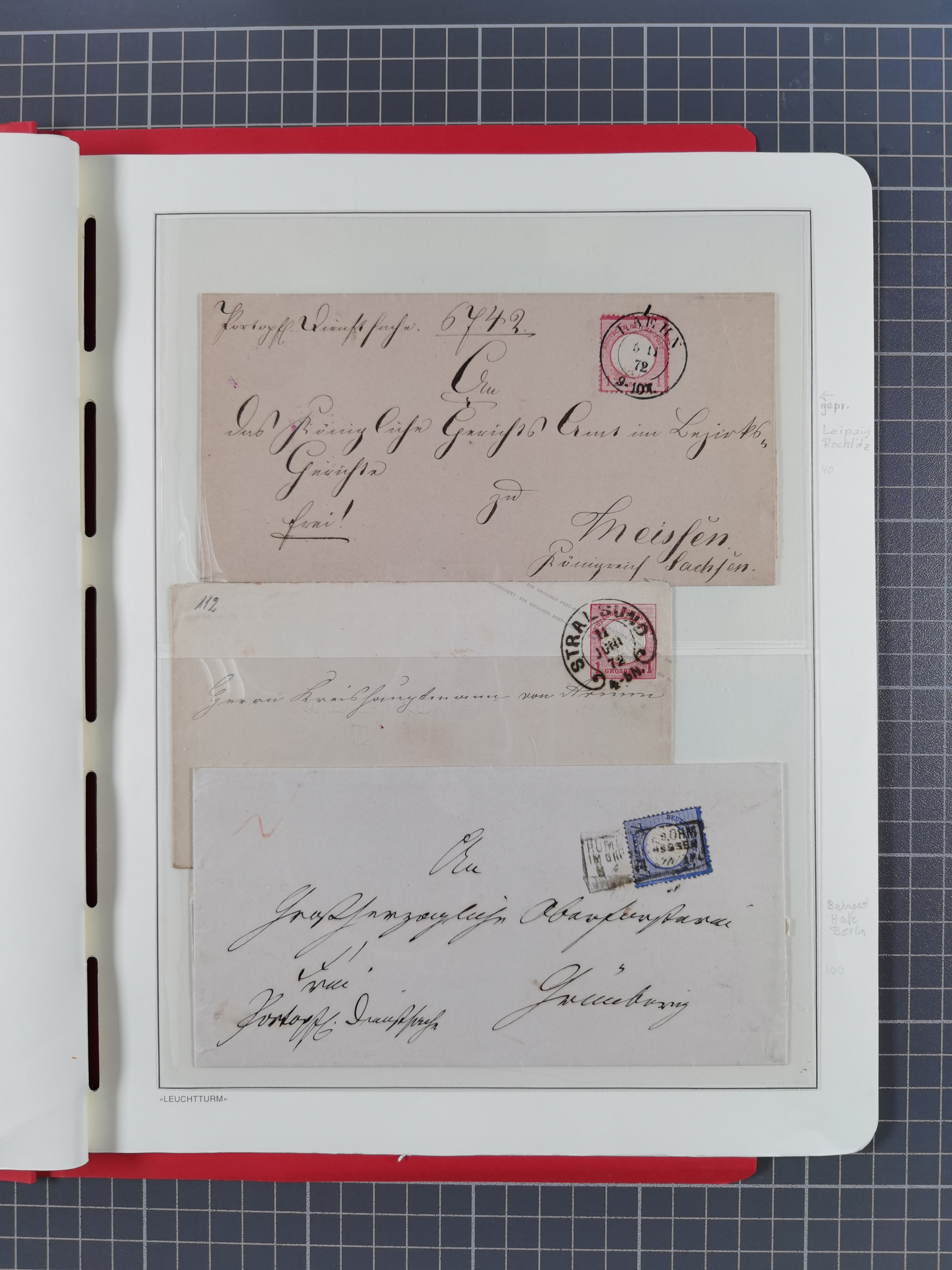 1865/1922, kleine Stempel-Sammlung auf losen Marken, Briefstücken und ca. 20 Briefen, Karten und GSK. Dabei u.a. Hufeisenstempel mit “STRASSBURG i. ELS.BHF” auf GSK P1+18, “ELBERFELD” auf Preußen-GSU und D. Reich Mi.-Nr. 4 im Paar auf Paketbegleitbrief von Lüneburg