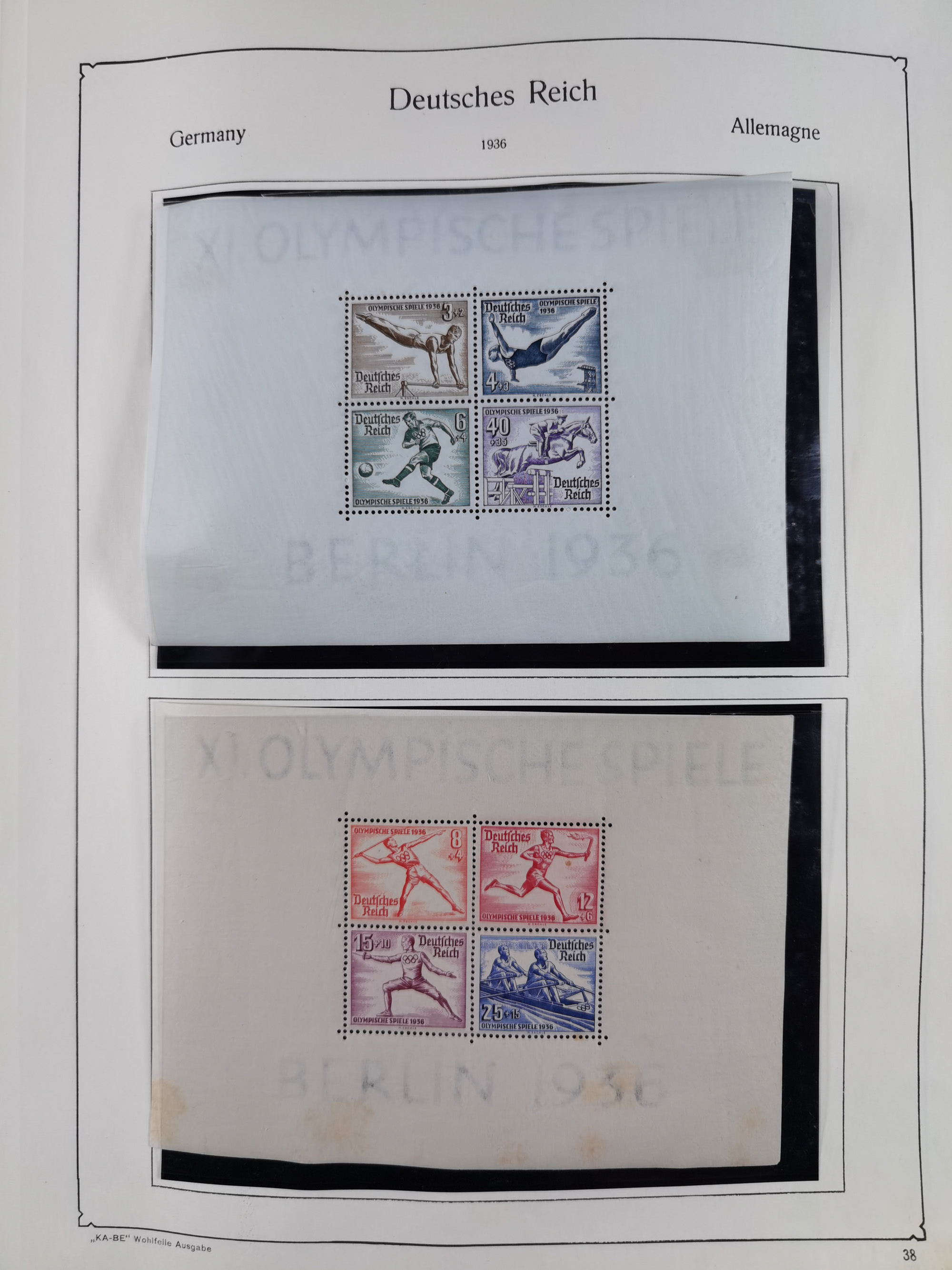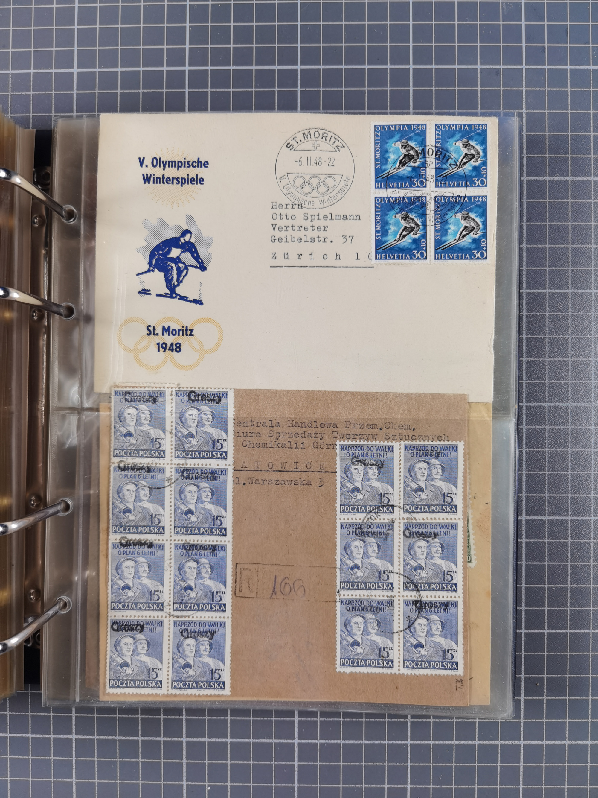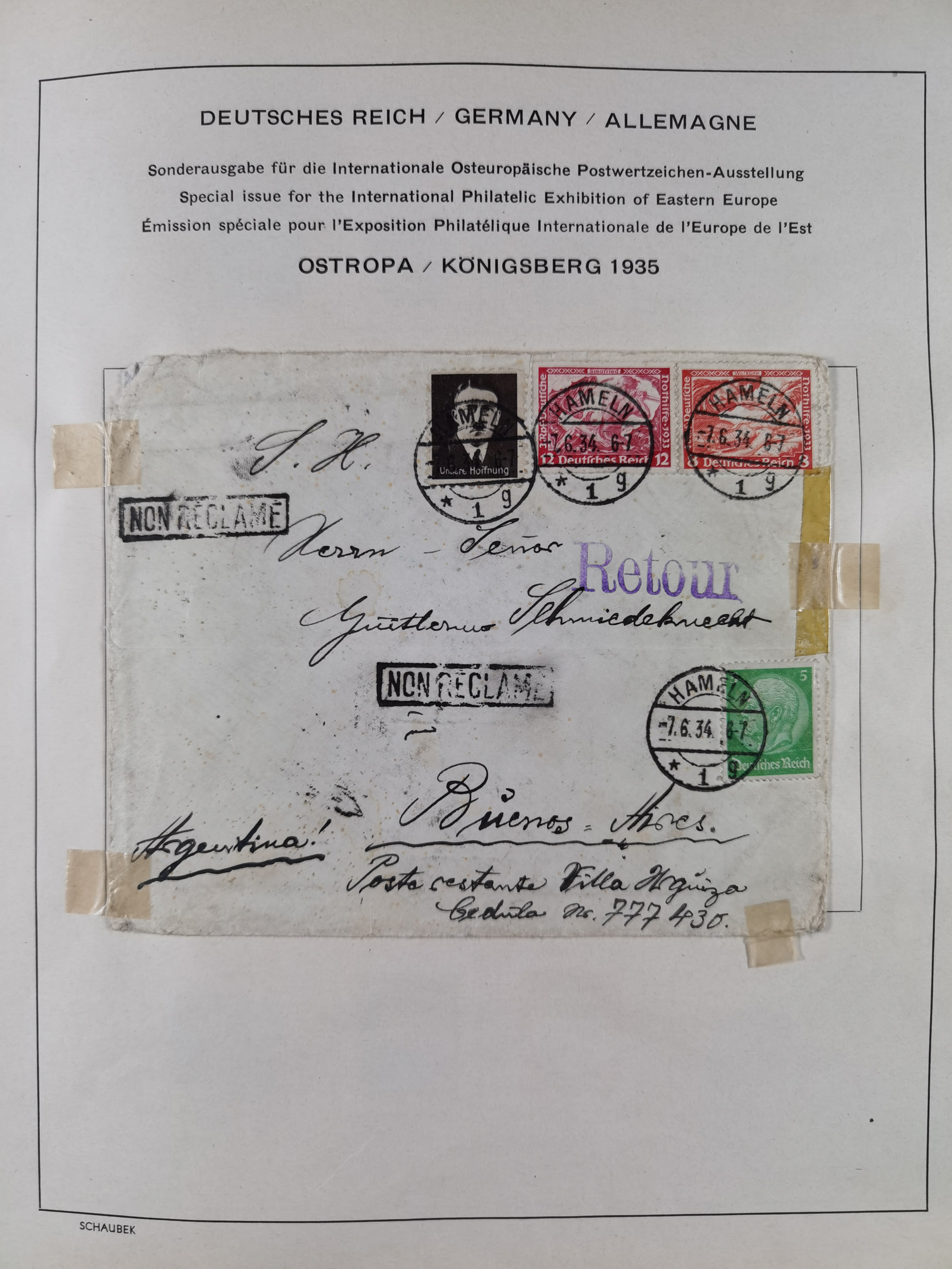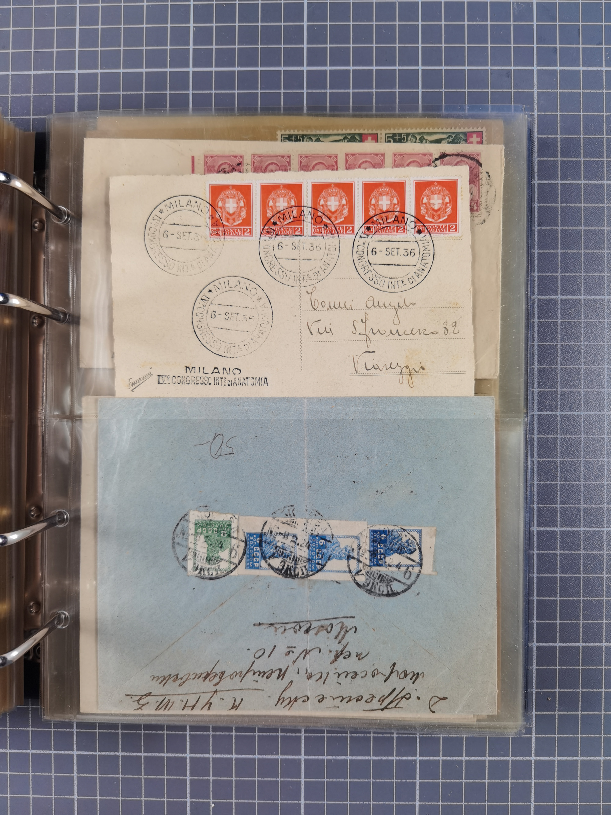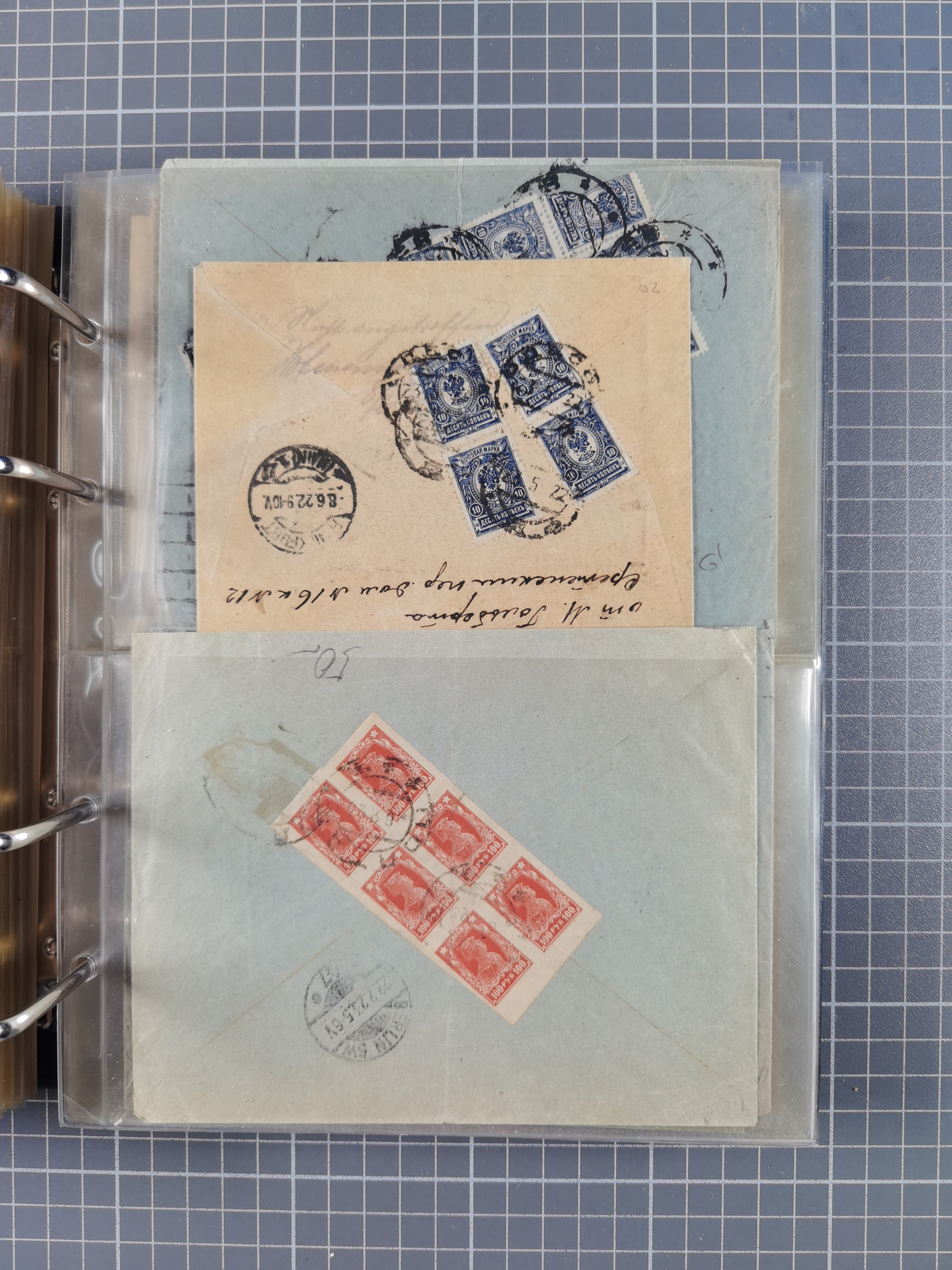 1903/80, Album mit 128 Mehrfachfrankaturen mit mindestens vier Marken, meistens aber mit mehr Marken (48 St. Ausland) dabei auch bessere Ausgaben z. B. Zepp-Brief Argentinienfahrt 1934 mit 5 x 35 Pf. Hindenburg und Zeppelin- Englandfahrt 1930 mit 6 x 25 Pf. Hindenburg, etwas unterschiedliche Erhaltung
