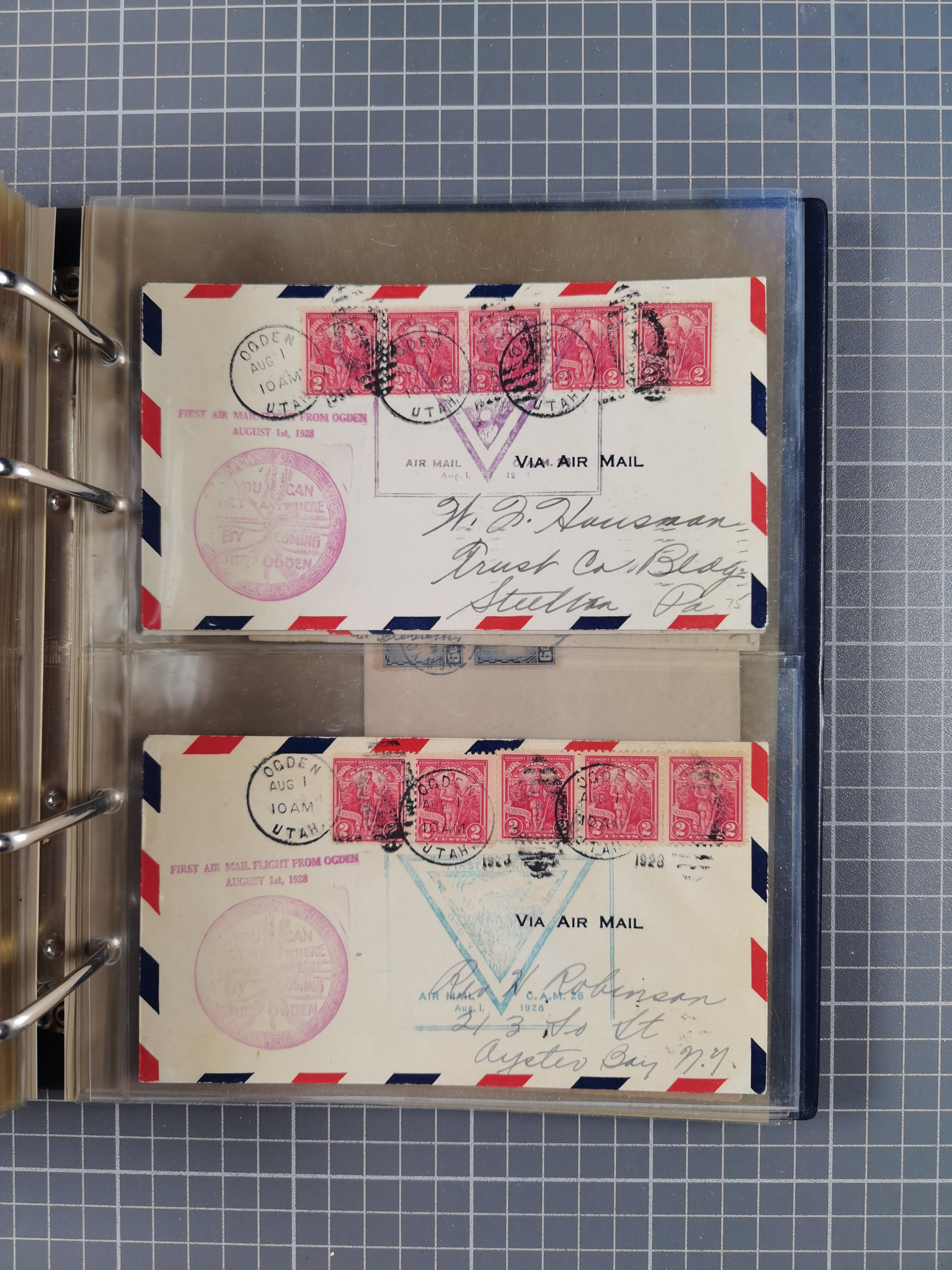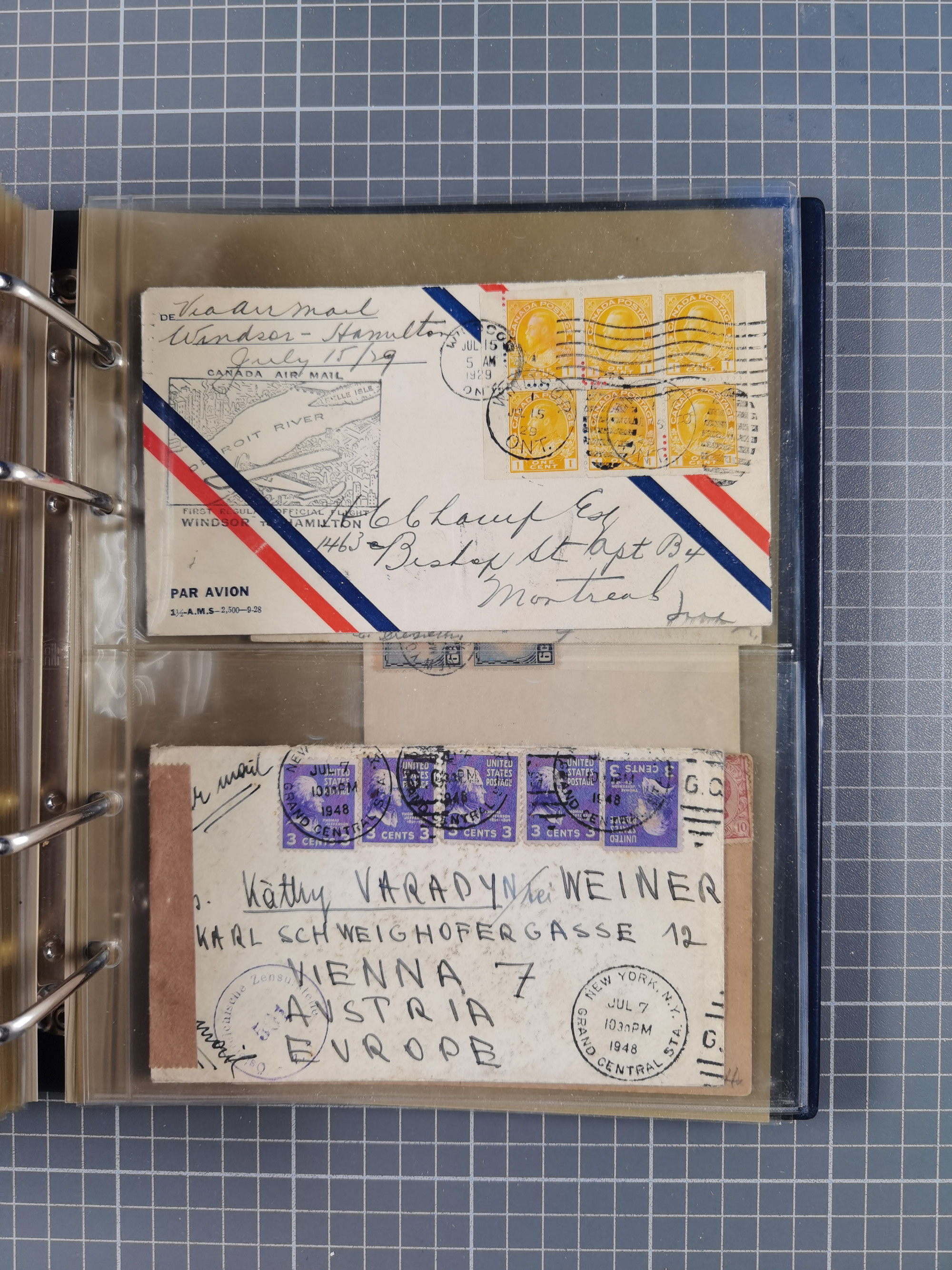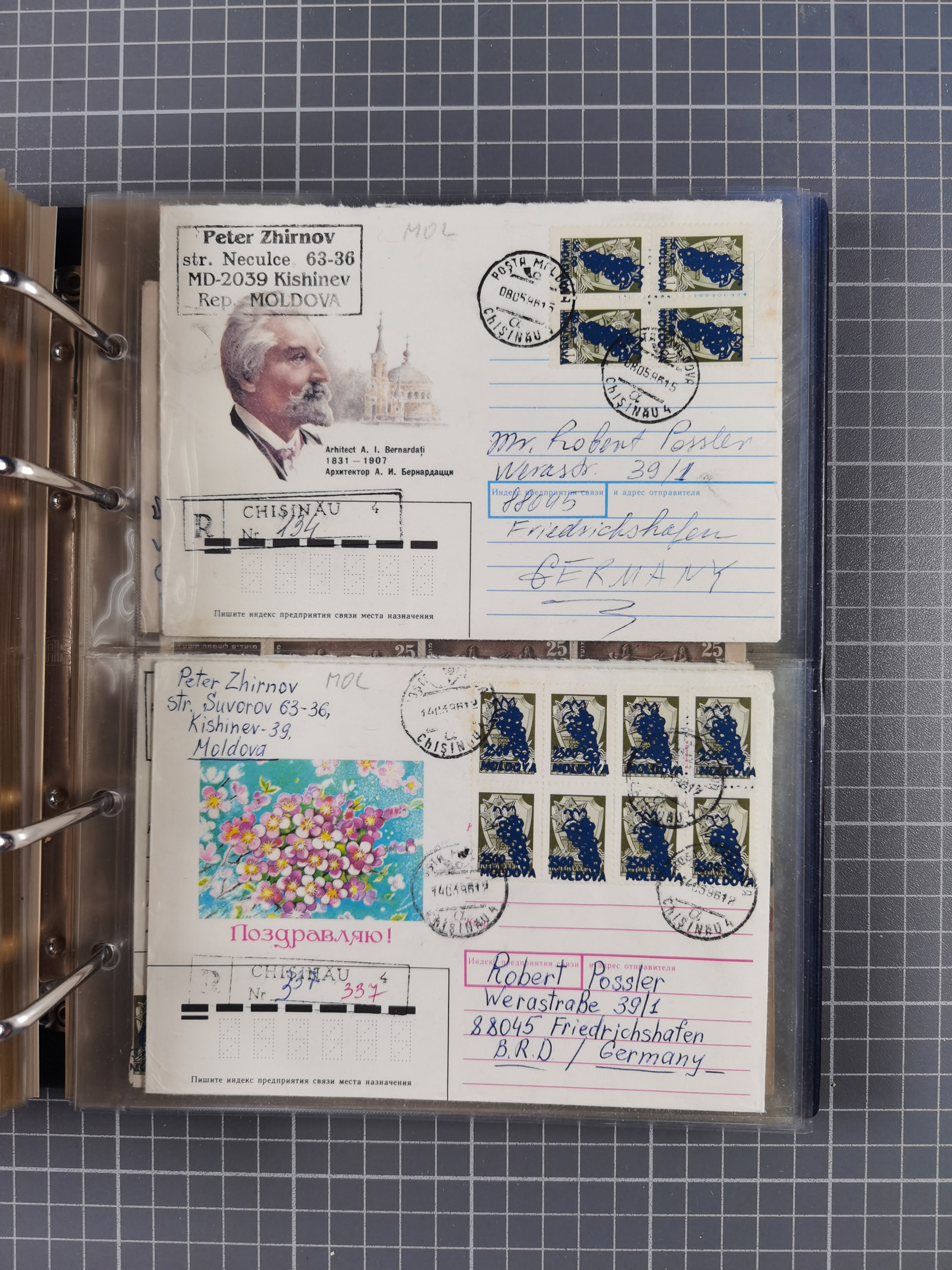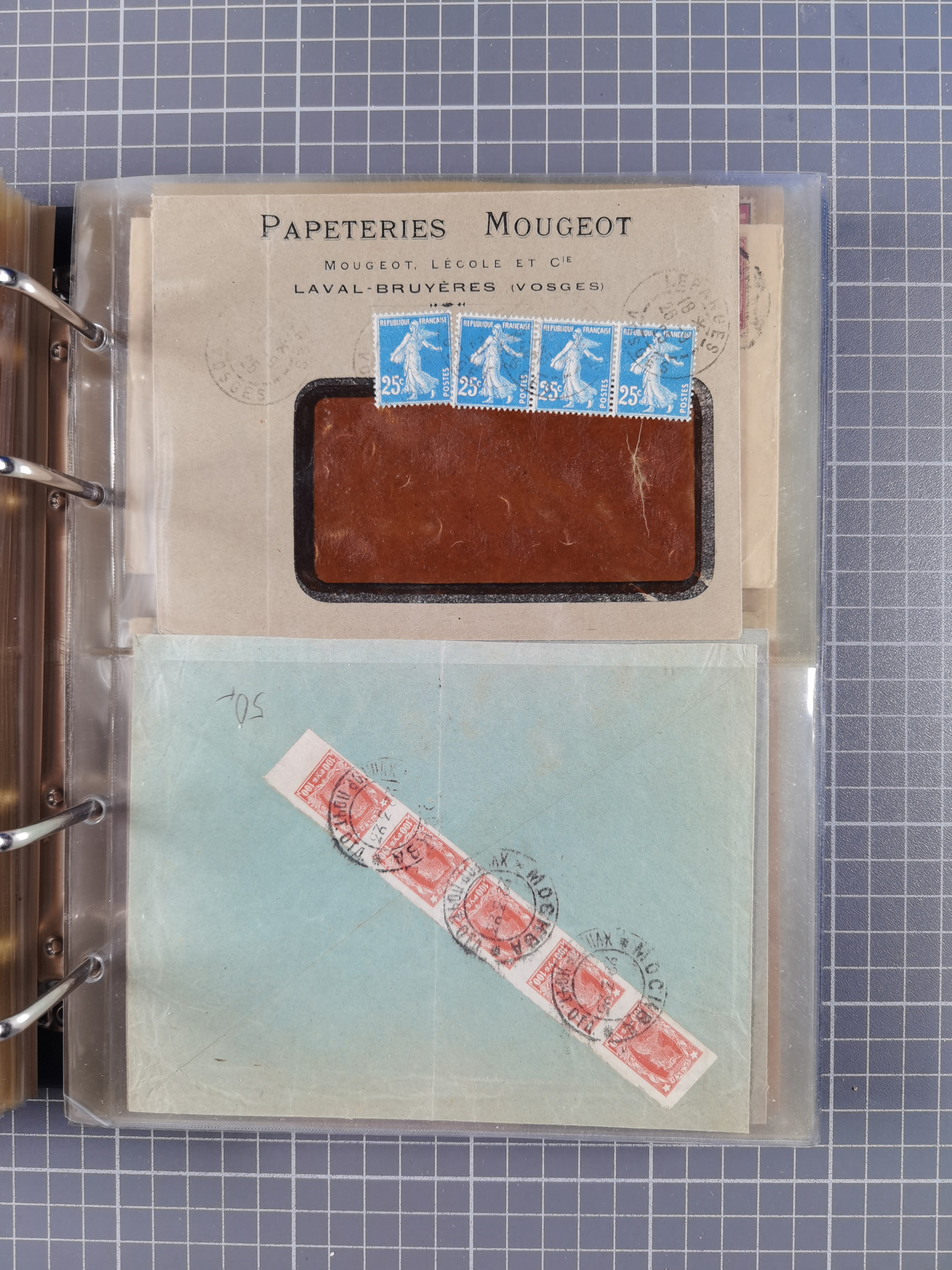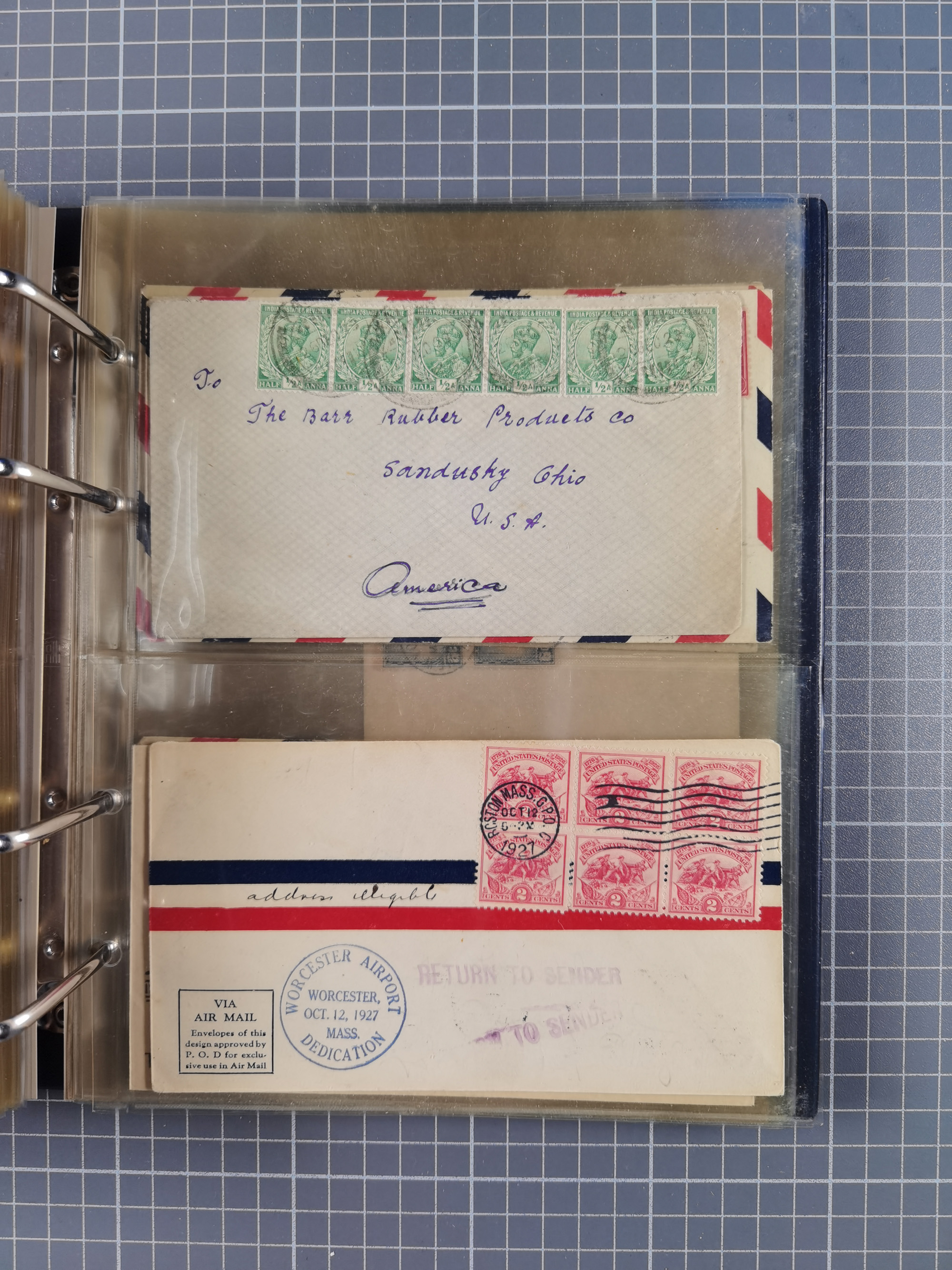 1903/80, Album mit 128 Mehrfachfrankaturen mit mindestens vier Marken, meistens aber mit mehr Marken (48 St. Ausland) dabei auch bessere Ausgaben z. B. Zepp-Brief Argentinienfahrt 1934 mit 5 x 35 Pf. Hindenburg und Zeppelin- Englandfahrt 1930 mit 6 x 25 Pf. Hindenburg, etwas unterschiedliche Erhaltung