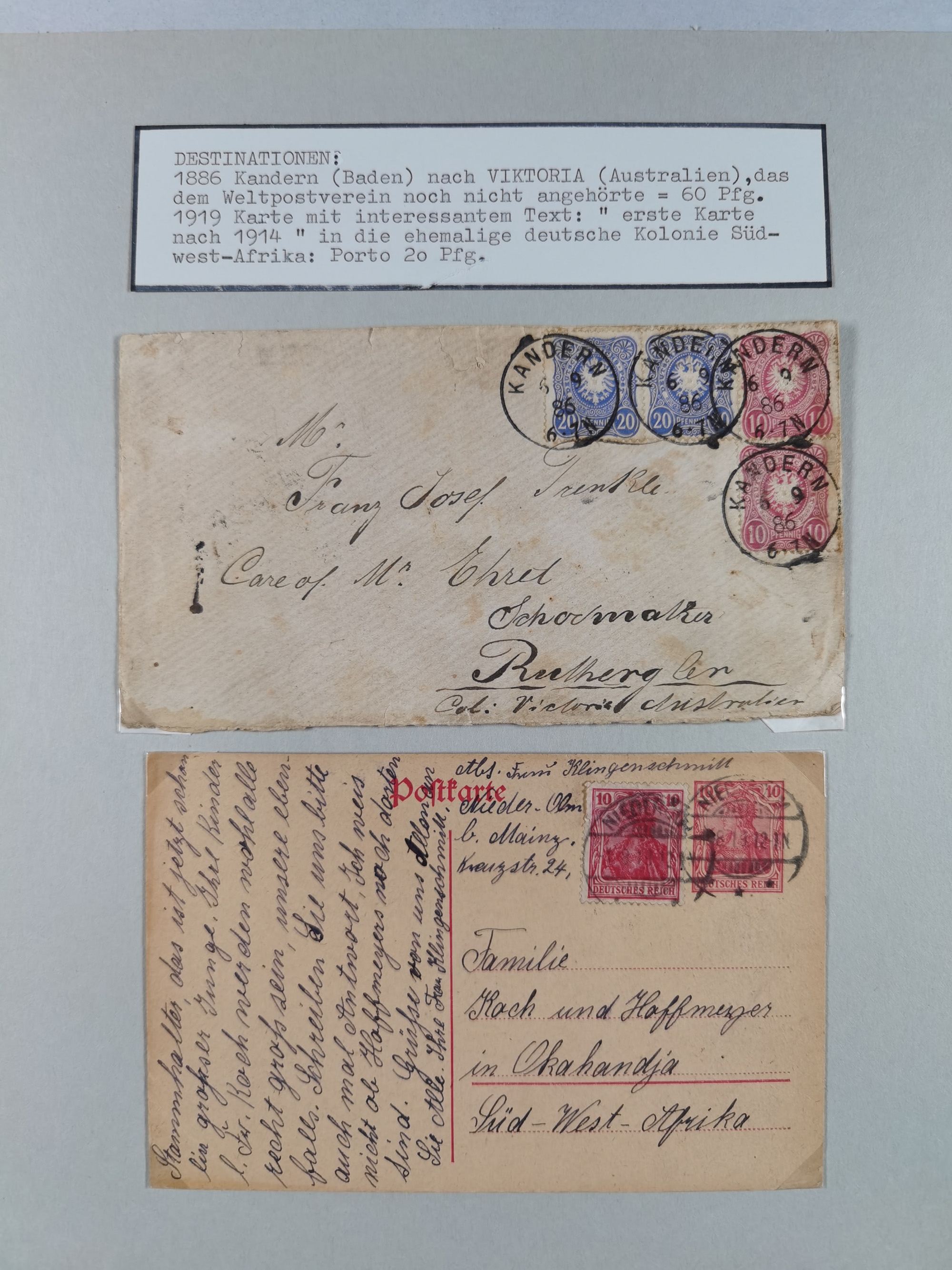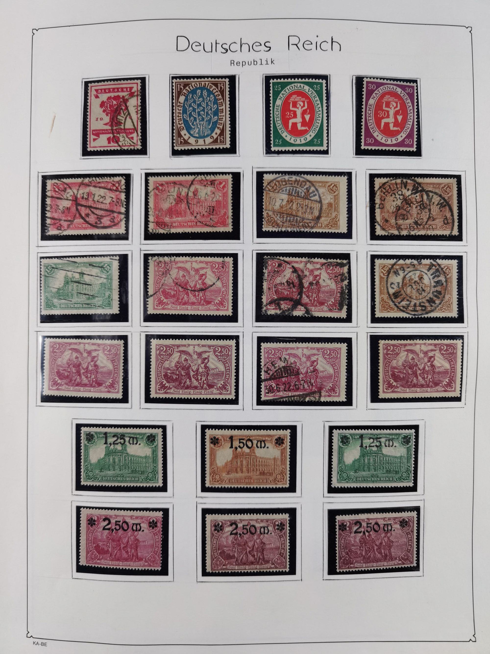 1849/1945, ungebrauchte/postfrische und gestempelte Sammlungspartie, teils doppelt angelegt, ab Altdeutschland, Deutsche Kolonien mit kleinem ungebraucht-Teil, DPC Mi.-Nr. 2IIZS (2) gestempelt, Deutsches Reich ab Brustschilde, dabei Germania Brief nach Persien, Paketkarte nach Konstantinopel bzw. Memel, ab Weimar mit guten Teilen Zusammendrucken, Bl. 5-11 sauber gestempelt, etc., ferner Abstimmungsgebiete und Besetzungsausgaben sowie Briefe, in sechs Alben