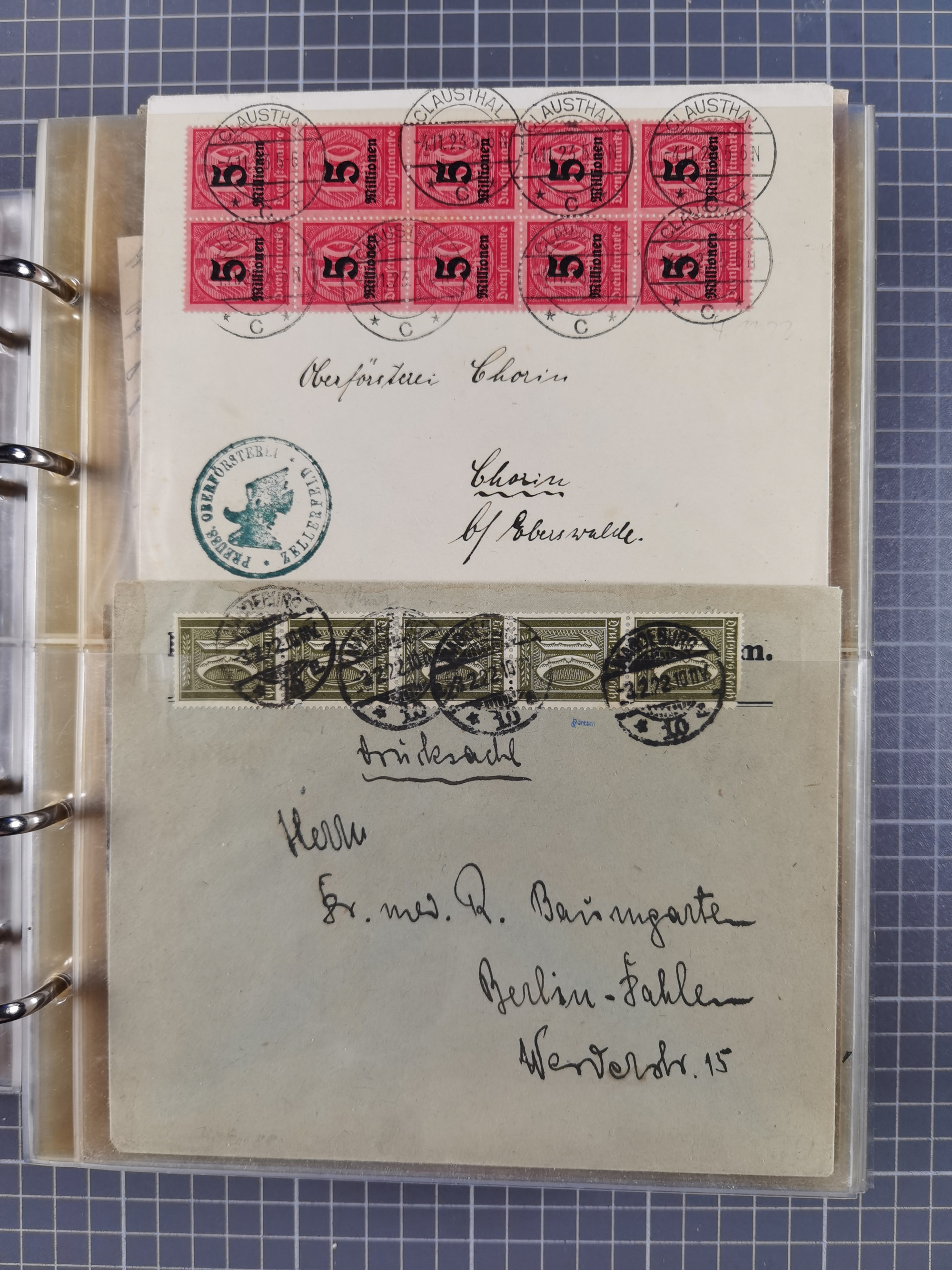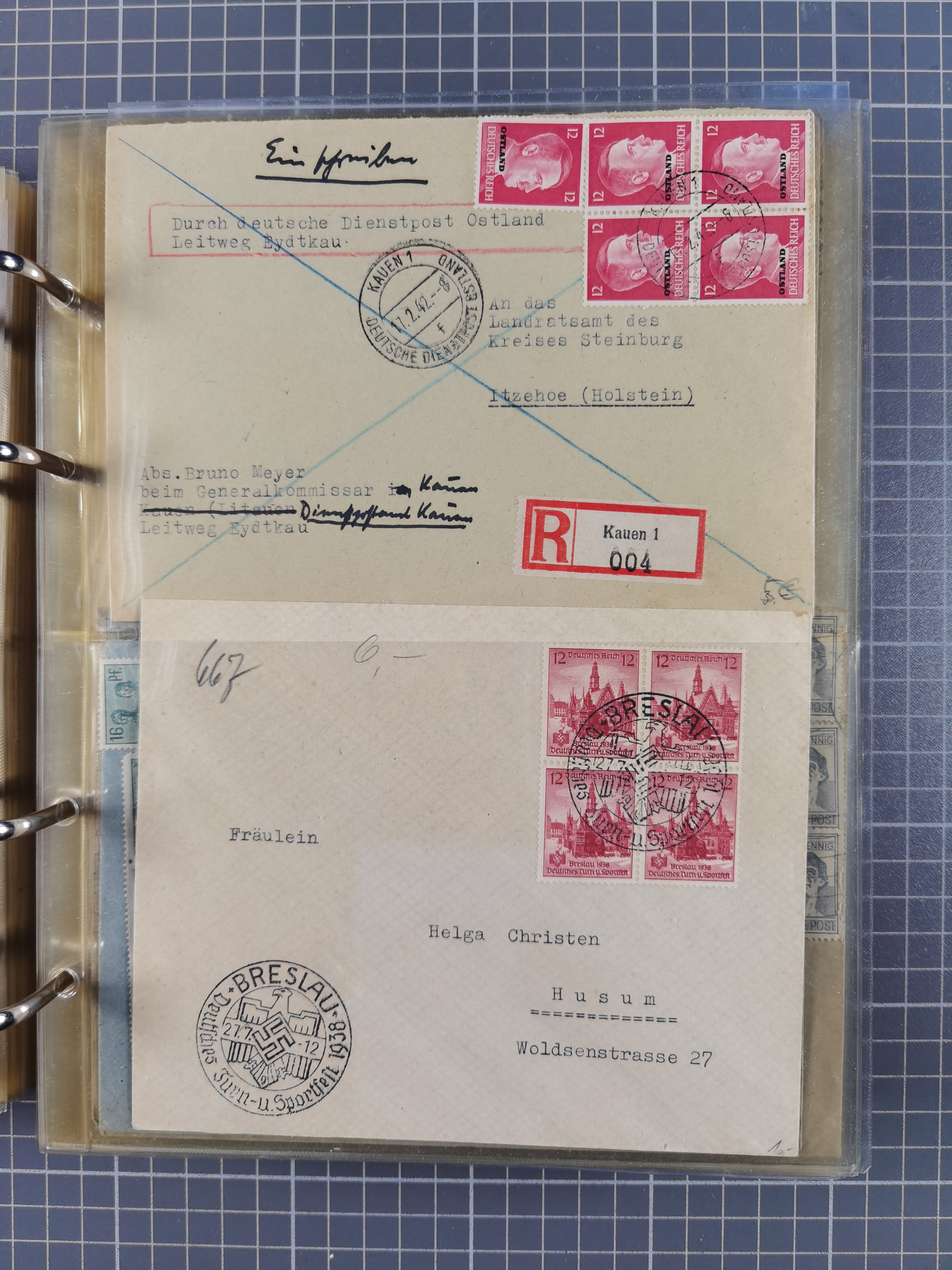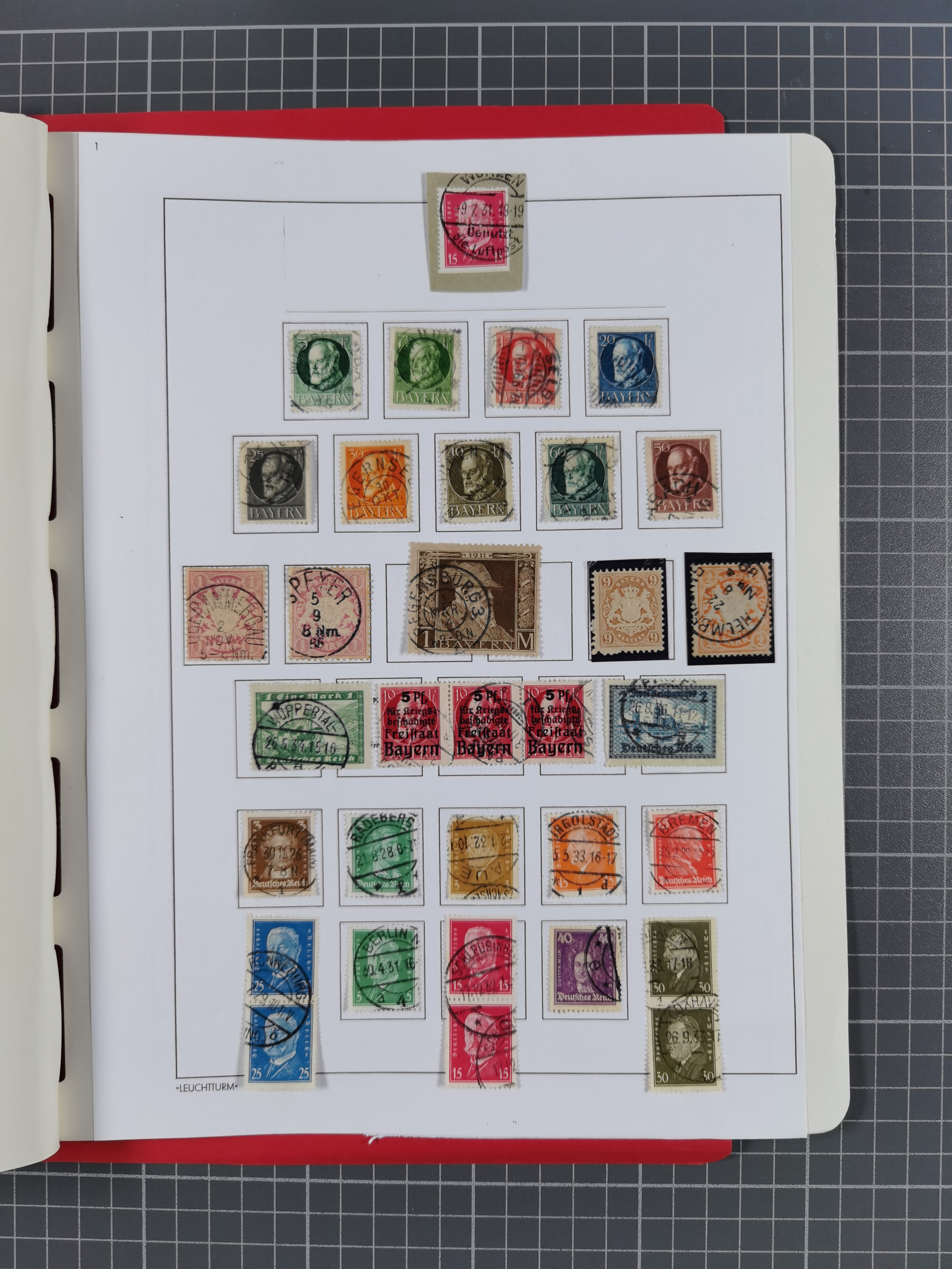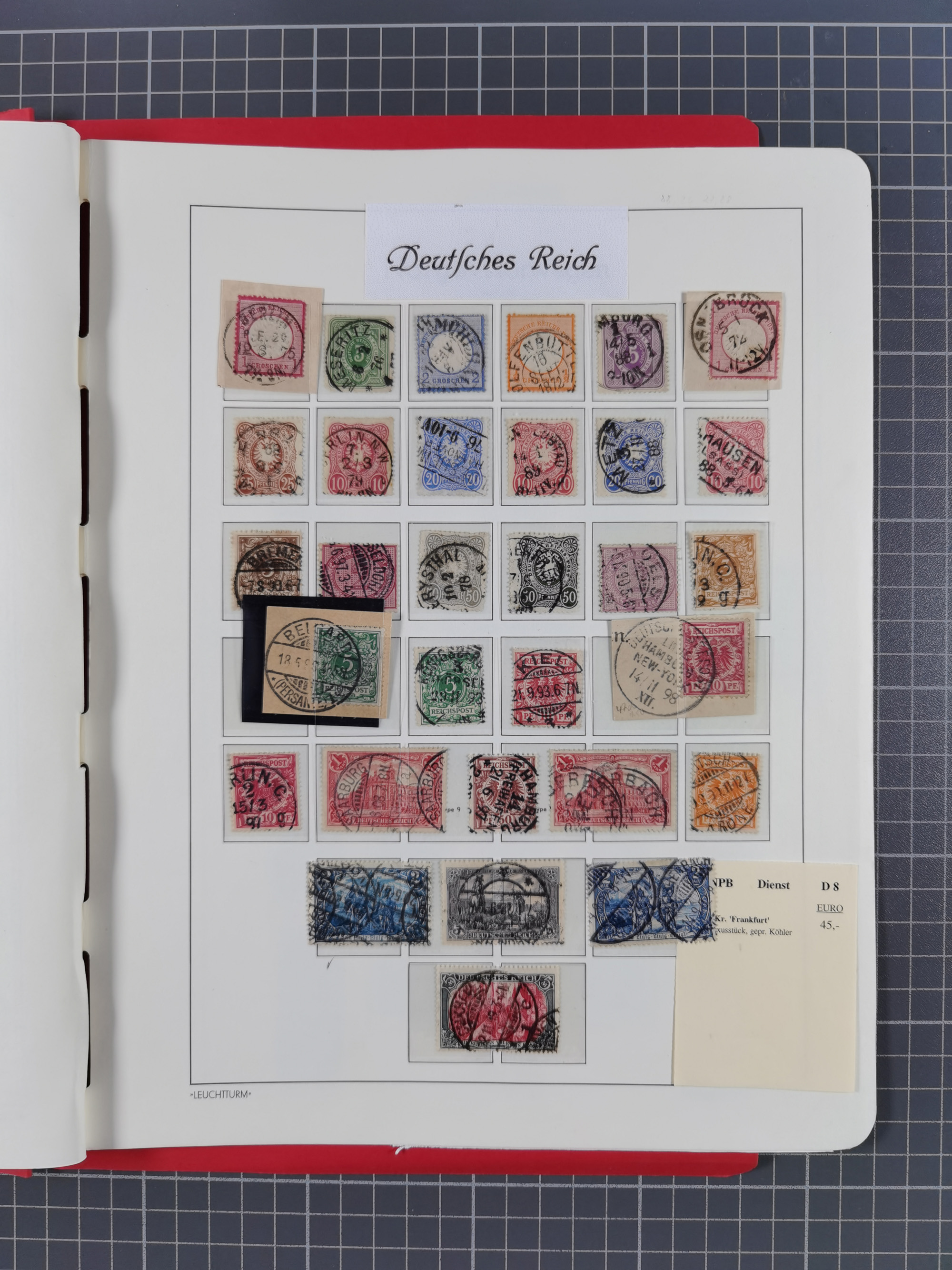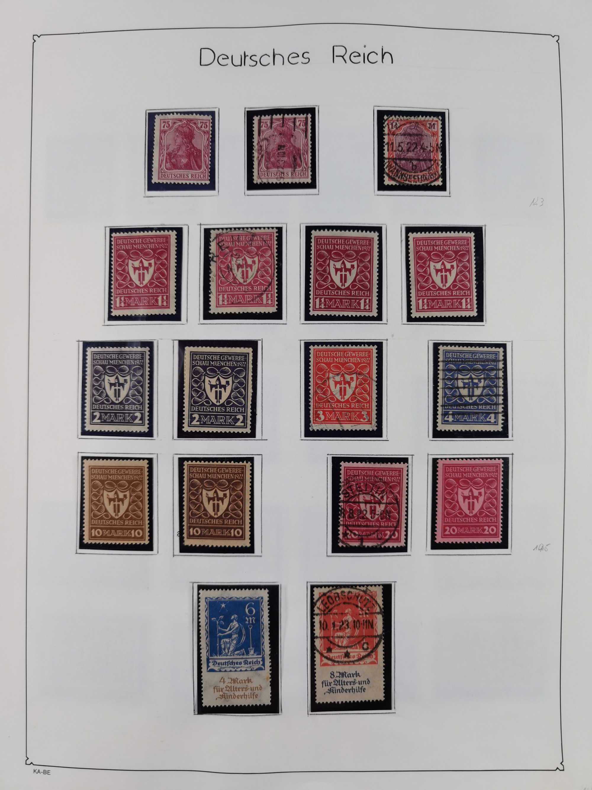 1851/1945, umfangreicher, meist gestempelter Dublettenposten mit Schwerpunkt Deutsches Reich ab Brustschild und einigen Belegen III. Reich. Dazu etwas Altdeutsche Staaten mit u.a. Briefteil Baden Landpost mit Mi.-Nr. 2-3x (laut Stegmüller stark repariert und nicht prüfbar) und Dt. Kolonien, zusammen in 12 Steckbüchern