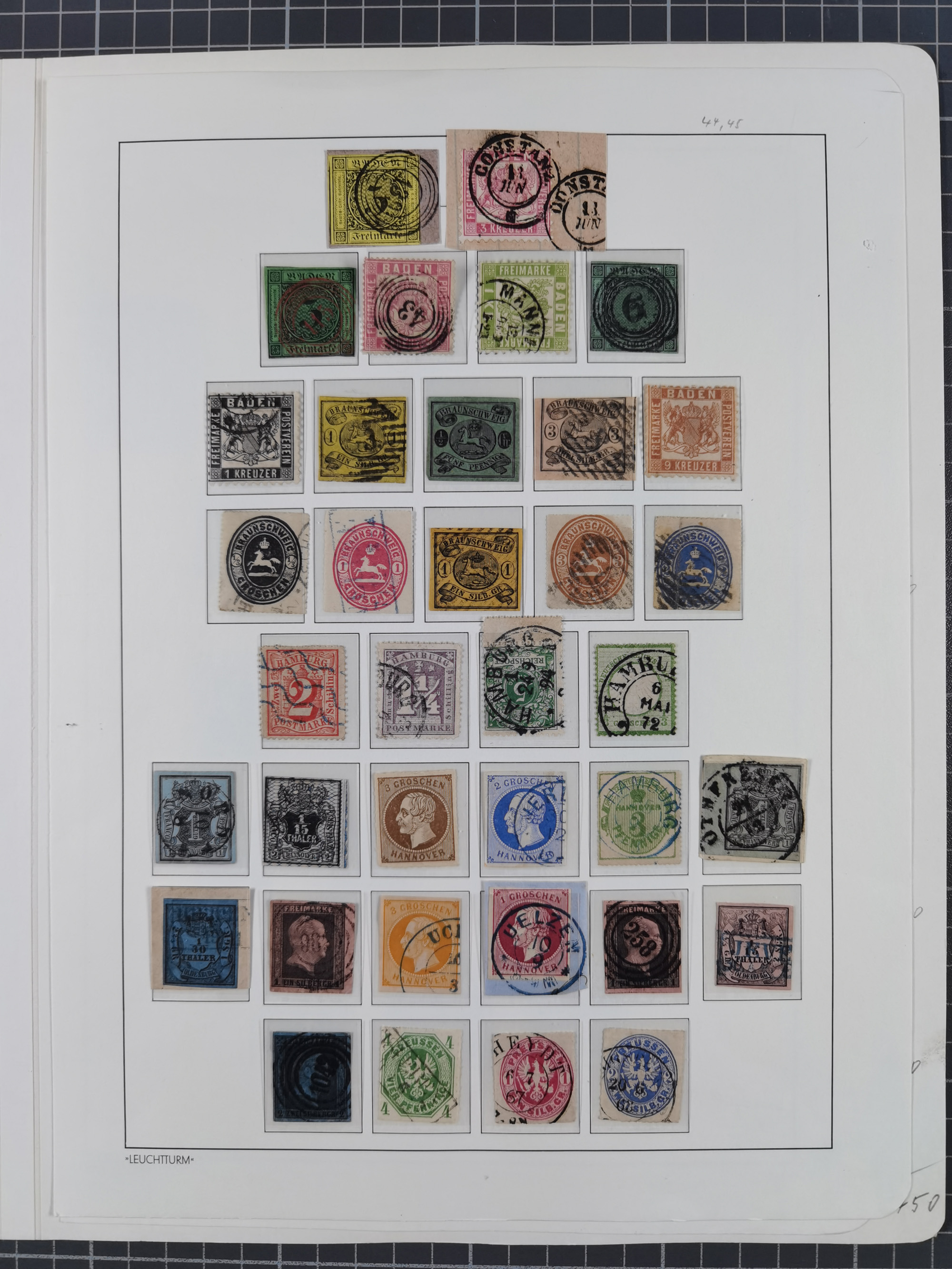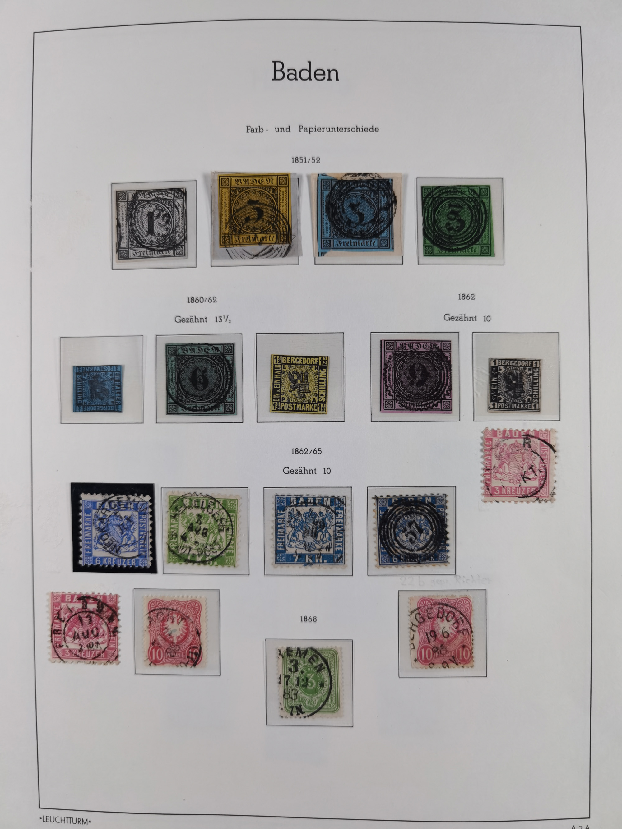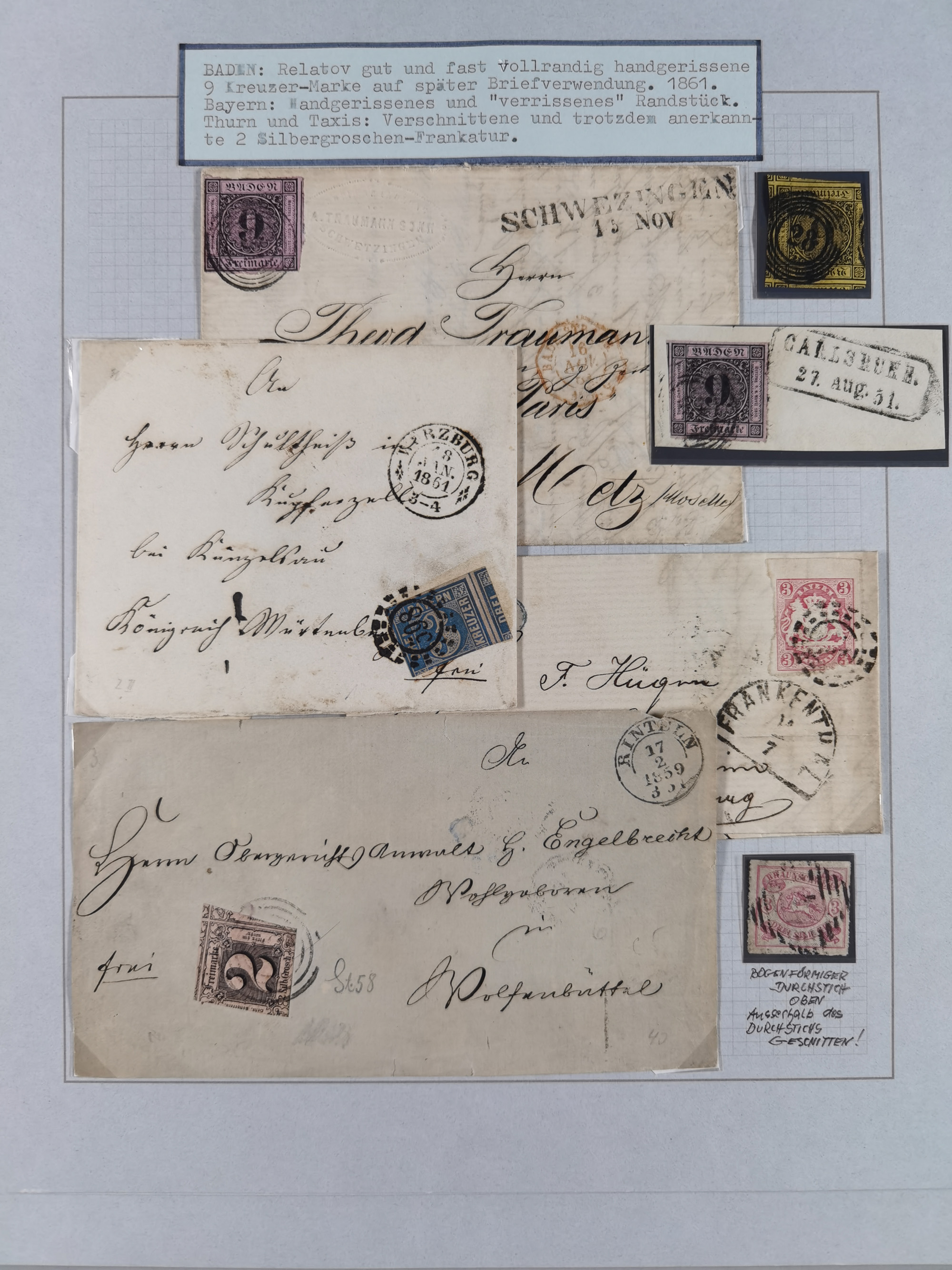 1851/1960 (ca.), interessanter Bestand mit Teilsammlungen Baden mit Mi.-Nr. 21a gestempelt (sign. Brettl BPP), Sachsen, Thurn & Taxis, Württemberg (kleine Stempel-Sammlung auf Marken ex Mi.-Nr.30-33+35 sowie Mi.-Nr. 33a ungebraucht ohne Gummi) und NDP, Bund mit u.a. über Ministerkarten/Hefte 1956-60, dazu Schweiz Block 5 gestempelt (Attest Mohrmann) sowie einige GSK und Karten ab Deutsches Reich