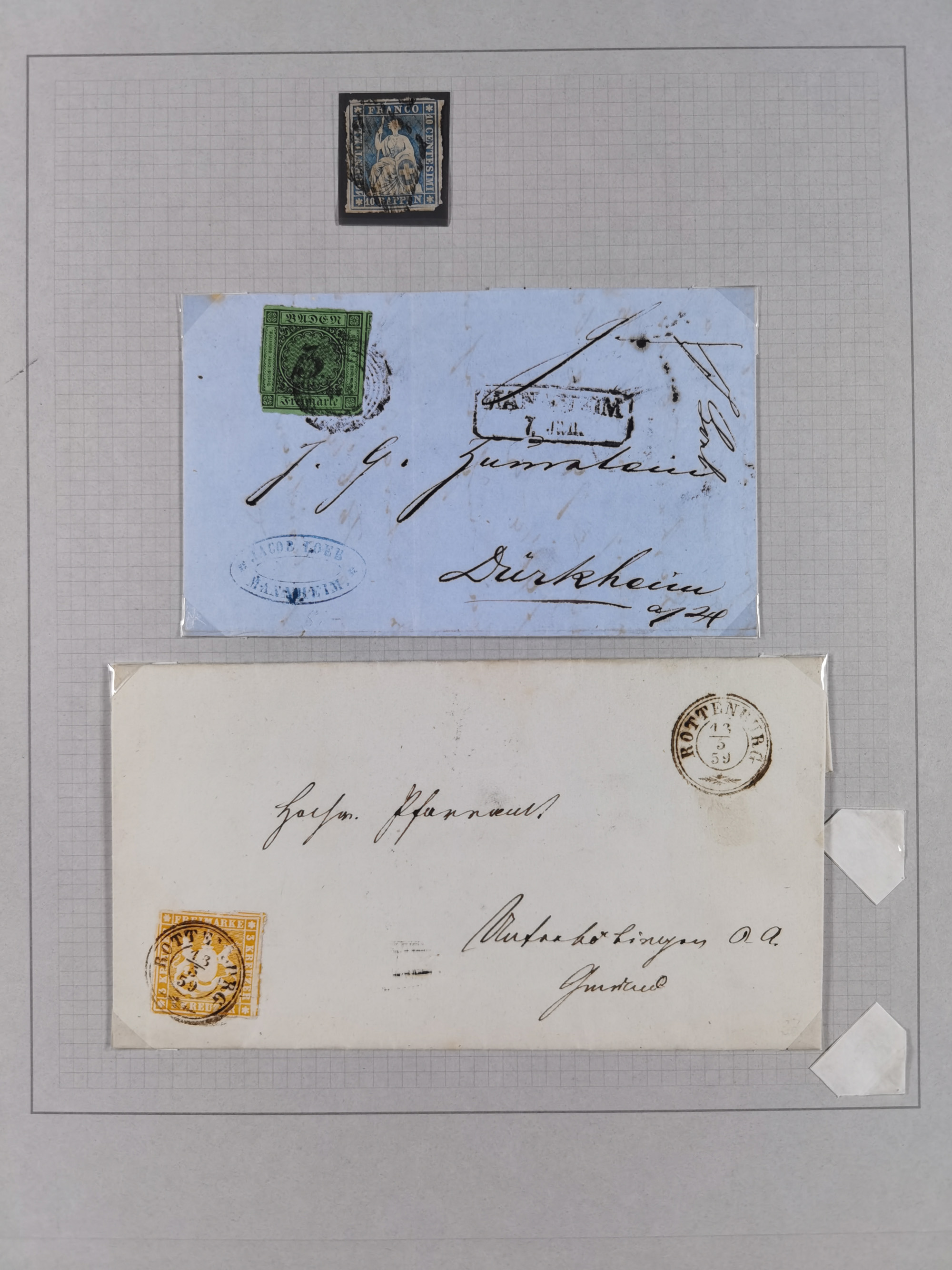 1800/1970 (ca.), HEIMATGESCHICHTE BADENS, umfangreiche Materialsammlung, teils ausstellungsmäßig aufgezogen, mit einigen hundert Briefen und Ganzsachen, dabei Nummern- und Ortsstempel, viele Lithos, Grenzrayon-Belege, Notgeld, Reisescheine, Baden U1 +10, etc., etc.. Ex Dr. Heinz Jaeger