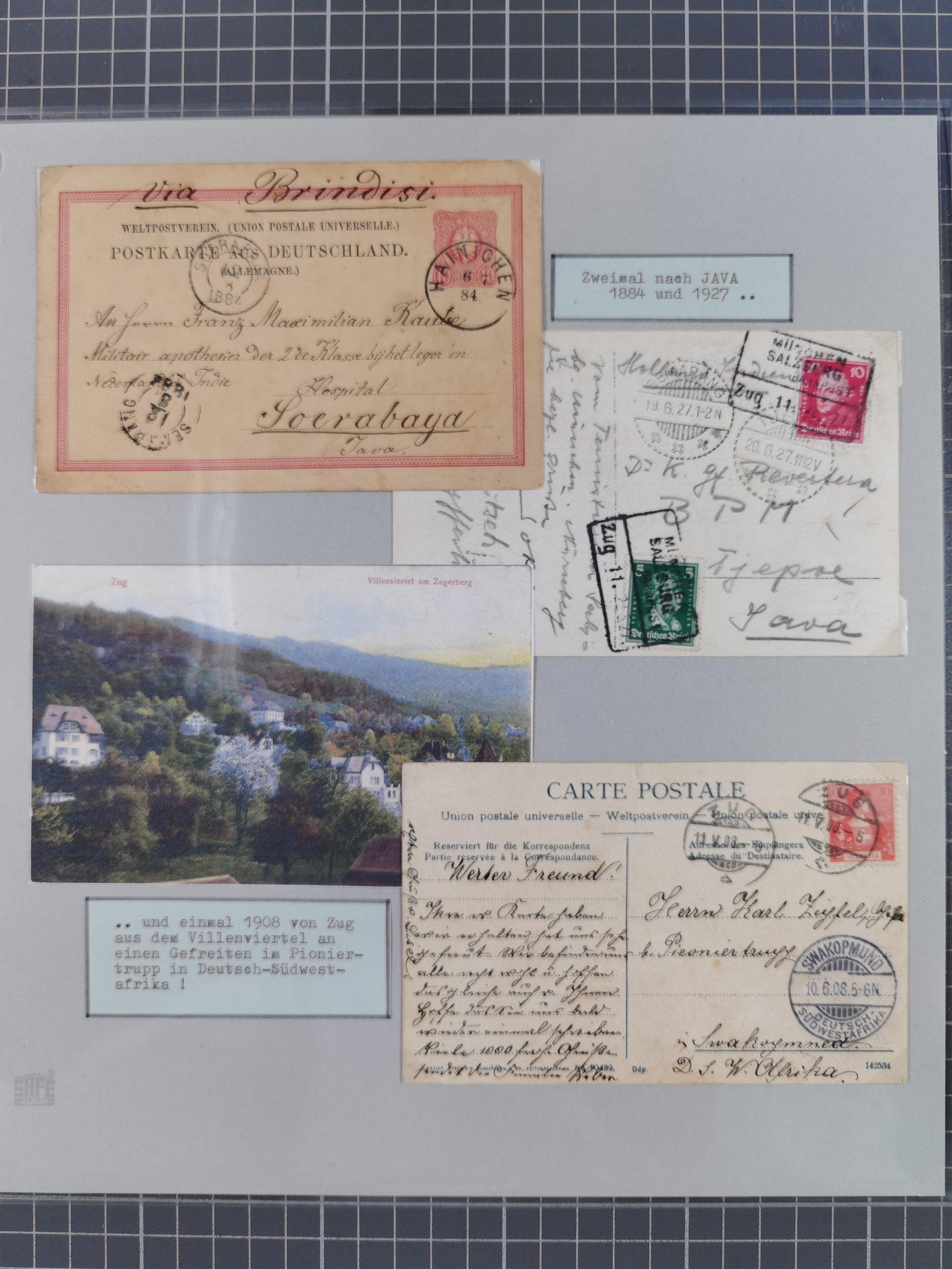 1870/1970 (ca.), 2-bändige thematische Sammlung 'Deutsche unter Waffen' mit rund 130 Briefen, Karten und Ganzsachen, dabei viel interessantes Material beginnend mit dem deutsch-französischen Krieg, Feldpost in den Kolonien, MSP, Zeppelin-Karten, bessere Privatpost-GSK, sowie interessante Belege WK I und II