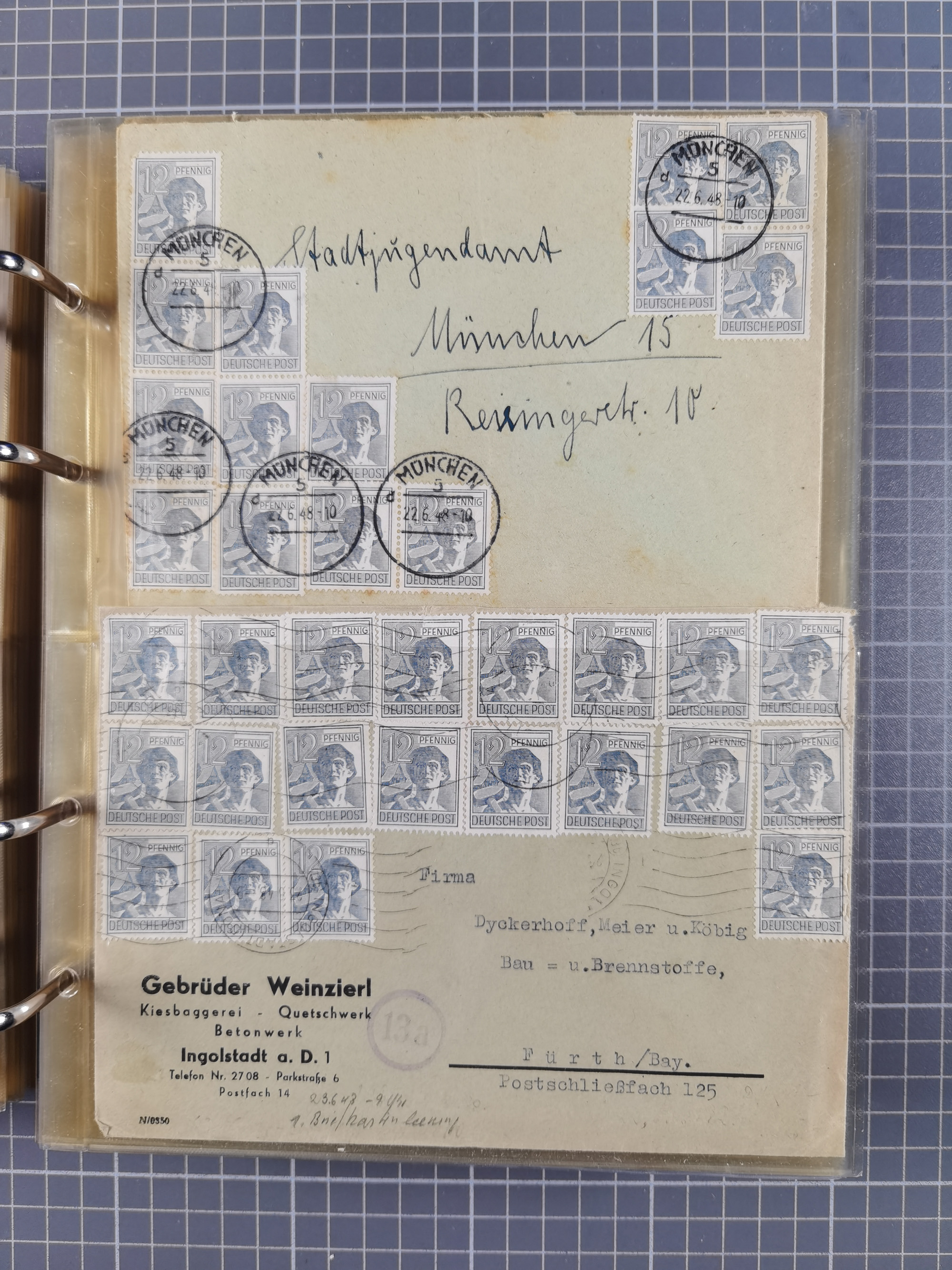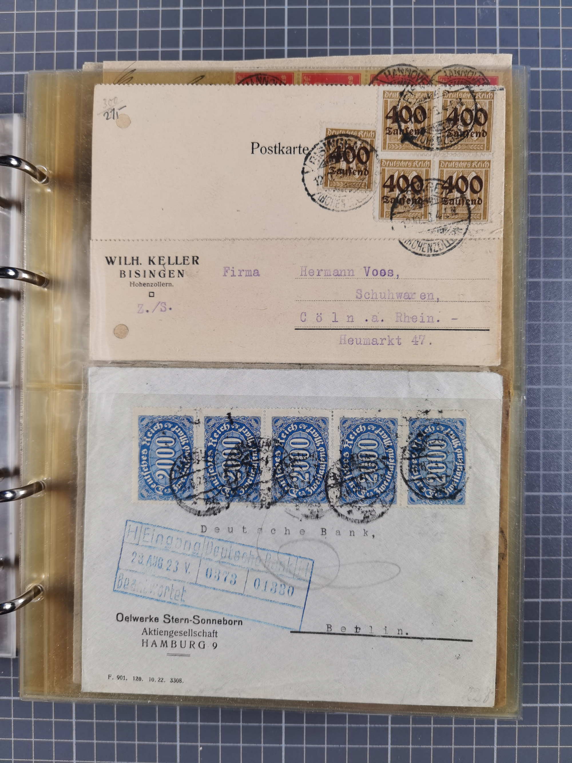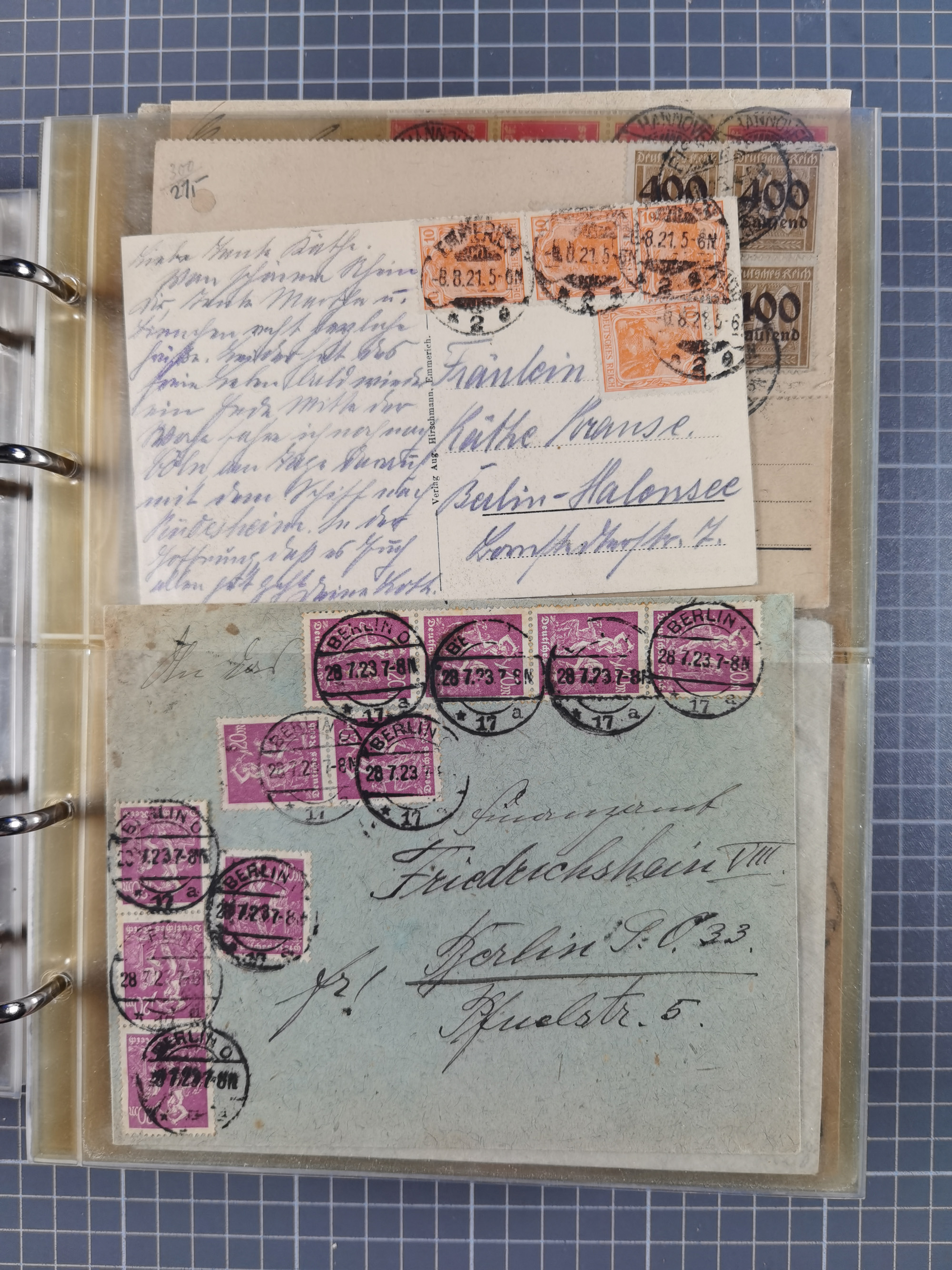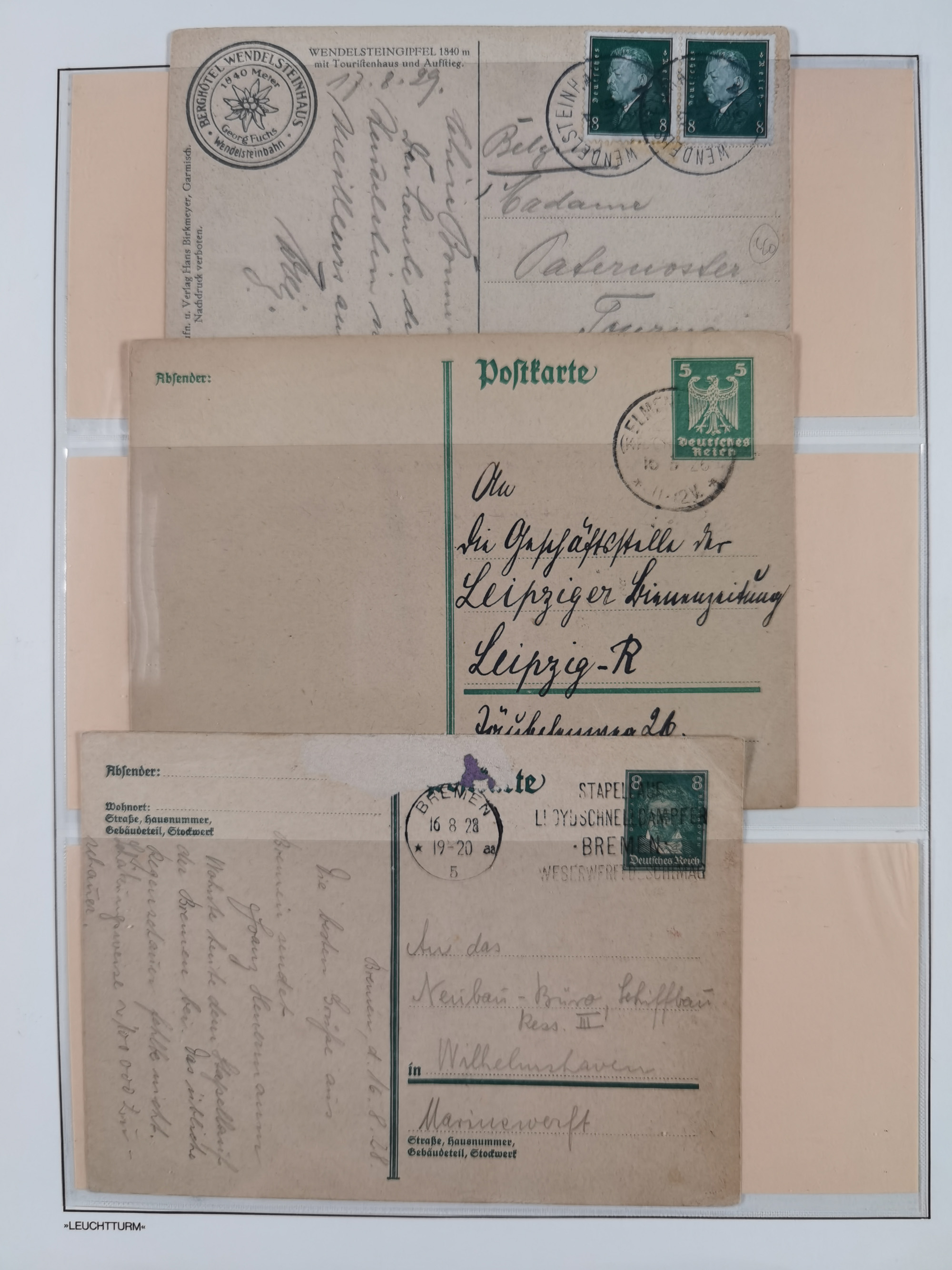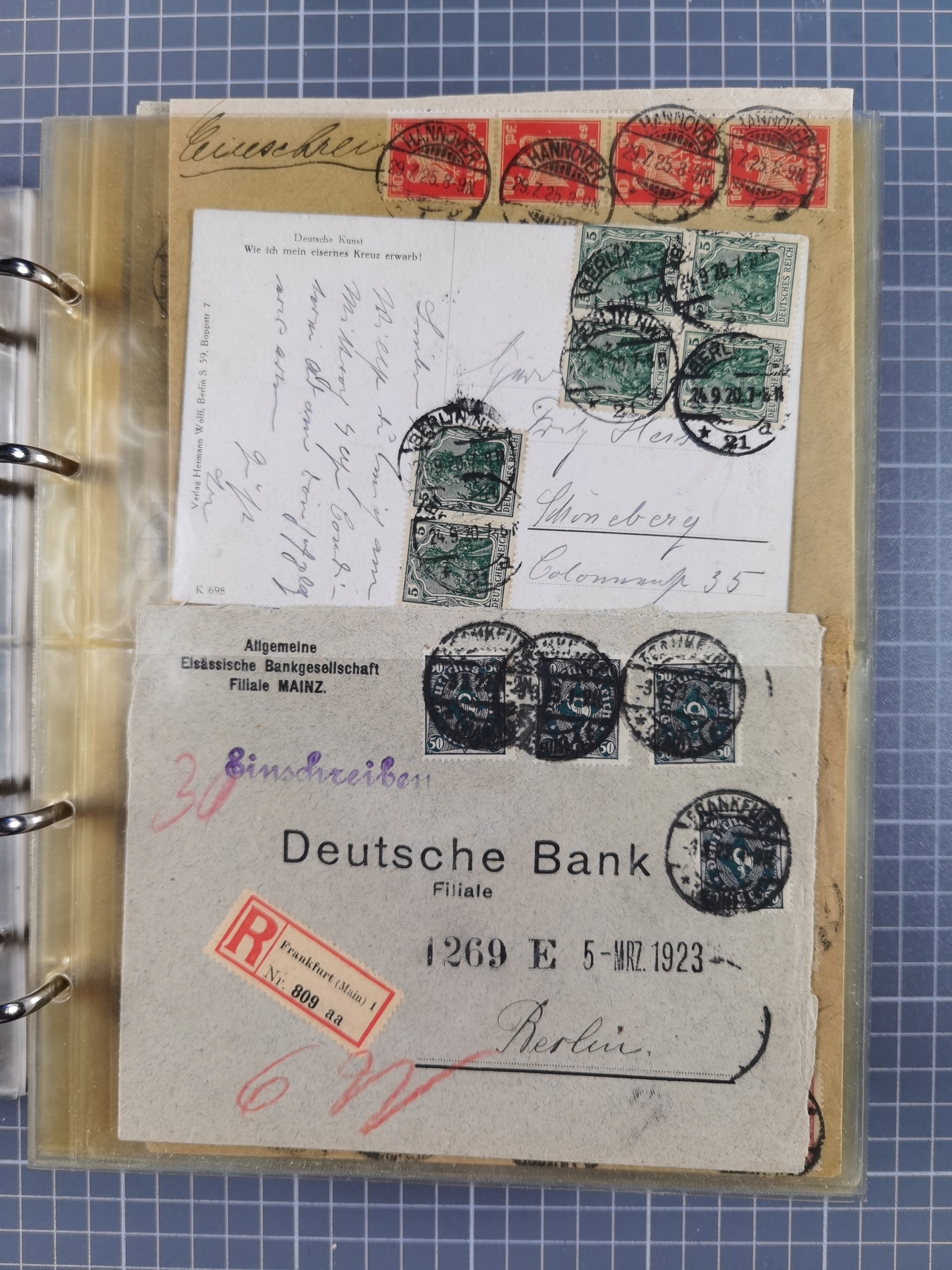 1850/1950 (ca.), umfangreicher Bestand mit über 700 Briefen und Karten, inkl. Bayern und Alliierte Besetzung, Schwerpunt Drittes Reich, kleiner Teil Inflation, viele Ganzsachen dabei u.a. Bayern Postanweisungskarte, sowie Sonderpostkarten, Flugpost, R-Brief und Mehrfachfrankaturen, dazu einiege lose Marken sowie zwei Fahrpläne der Hapag und des Norddeutscher Llyod Bremen nach Süd Amerika, etc., die Erhaltung etwas unterschiedlich
