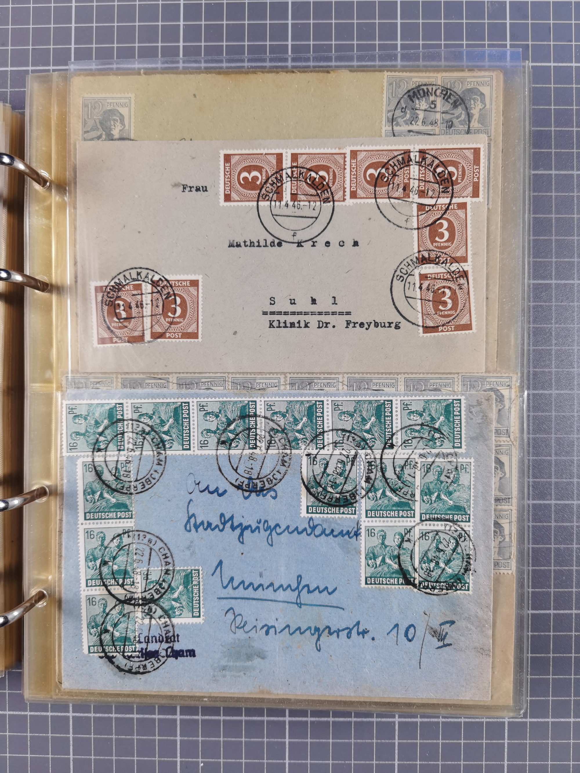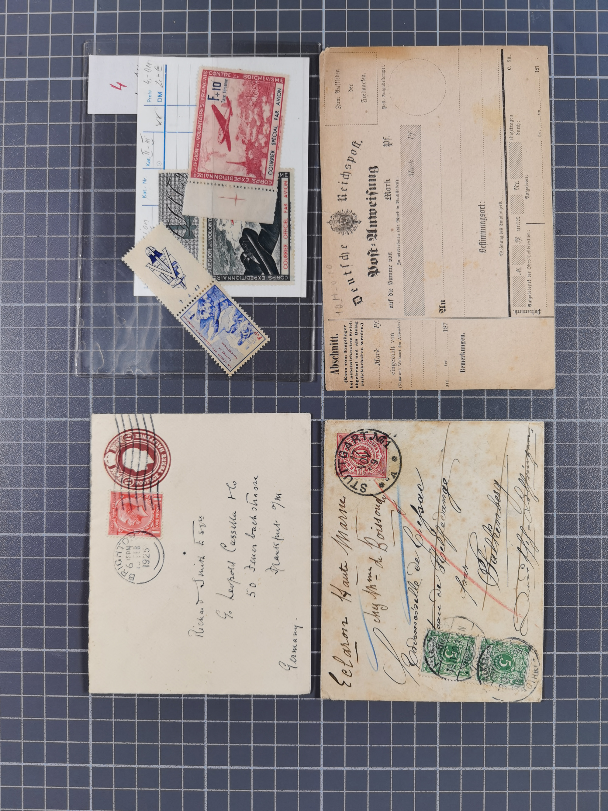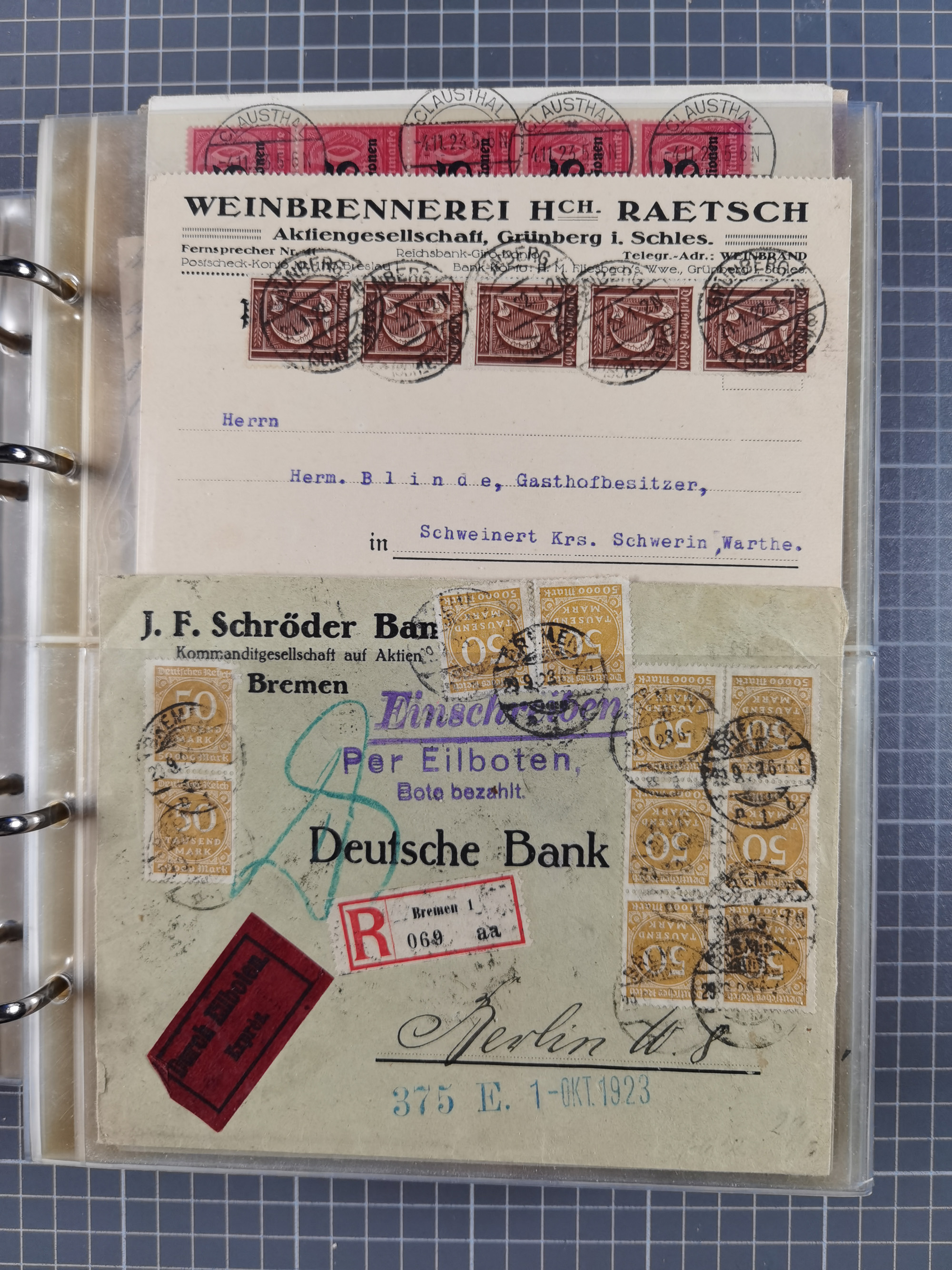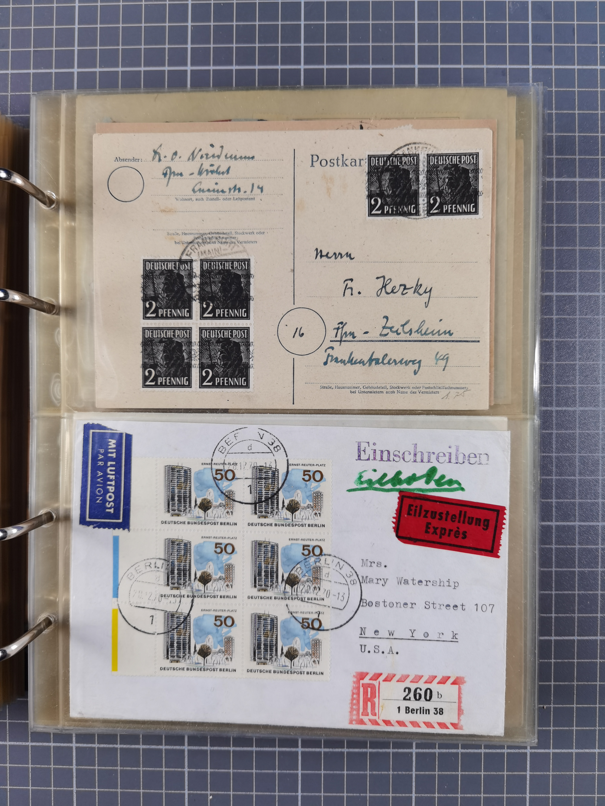 1850/1950 (ca.), umfangreicher Bestand mit über 700 Briefen und Karten, inkl. Bayern und Alliierte Besetzung, Schwerpunt Drittes Reich, kleiner Teil Inflation, viele Ganzsachen dabei u.a. Bayern Postanweisungskarte, sowie Sonderpostkarten, Flugpost, R-Brief und Mehrfachfrankaturen, dazu einiege lose Marken sowie zwei Fahrpläne der Hapag und des Norddeutscher Llyod Bremen nach Süd Amerika, etc., die Erhaltung etwas unterschiedlich