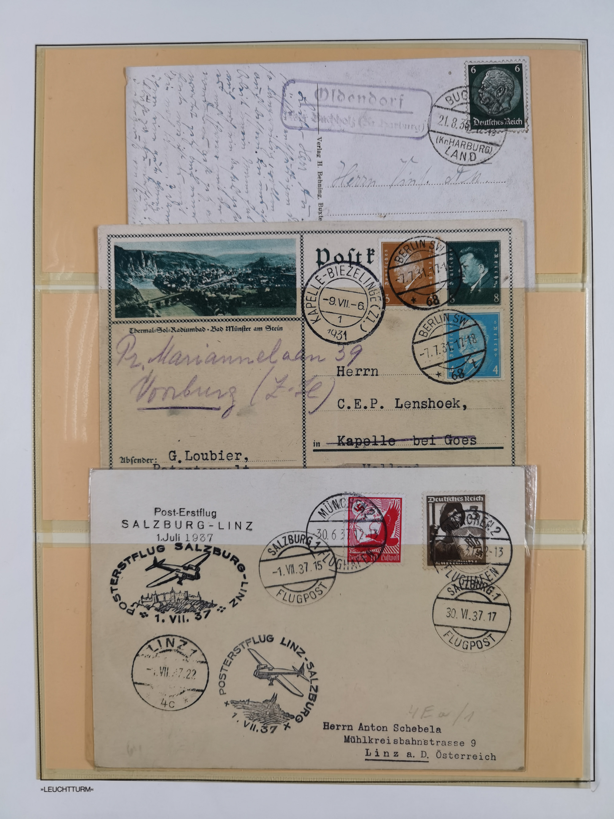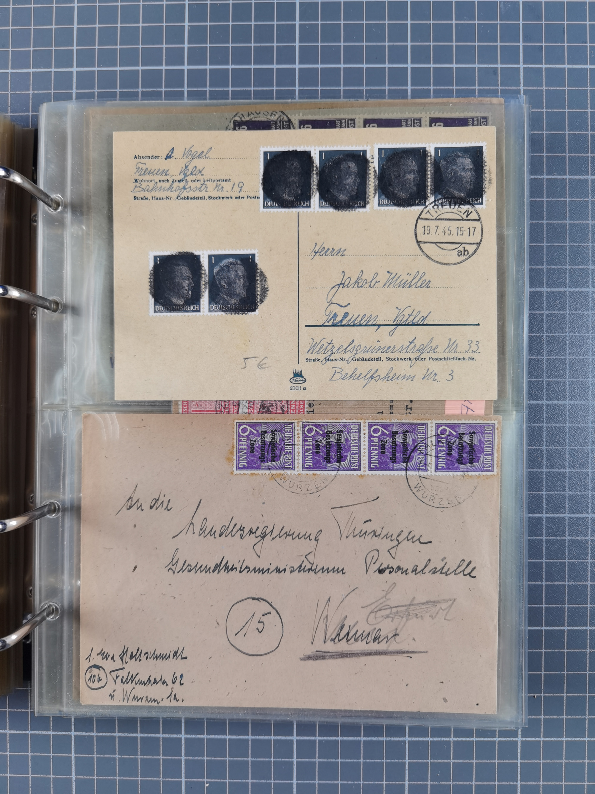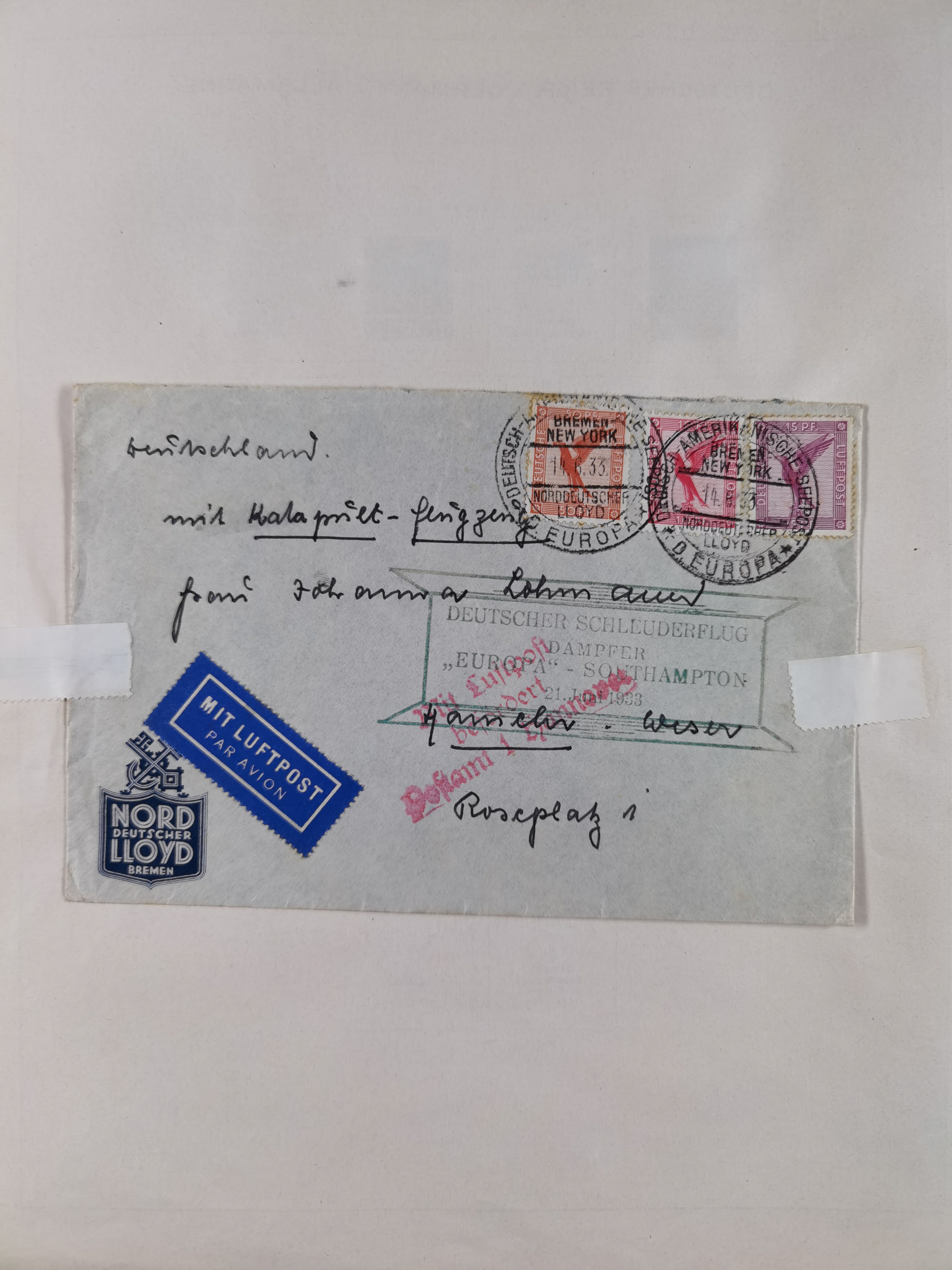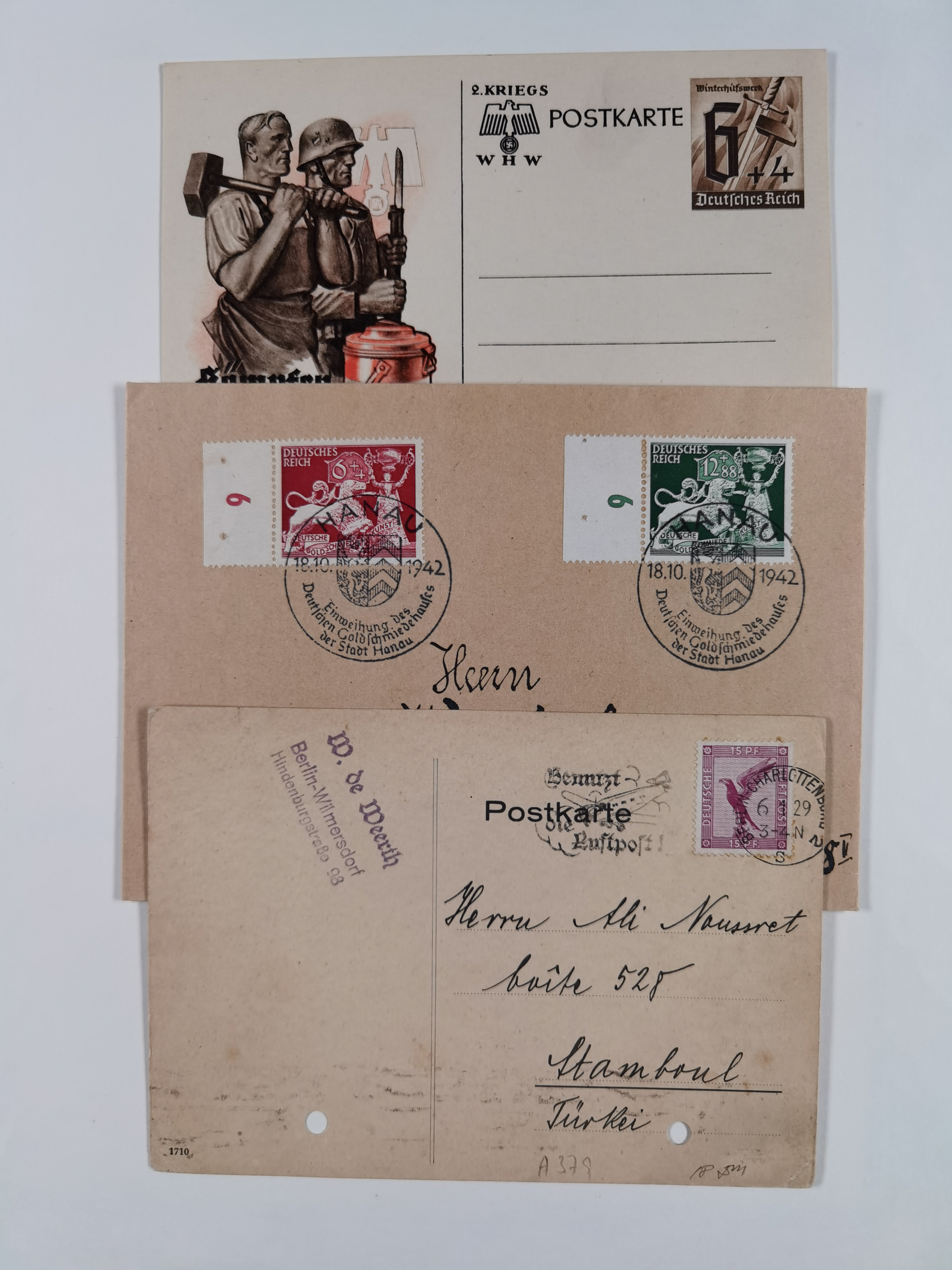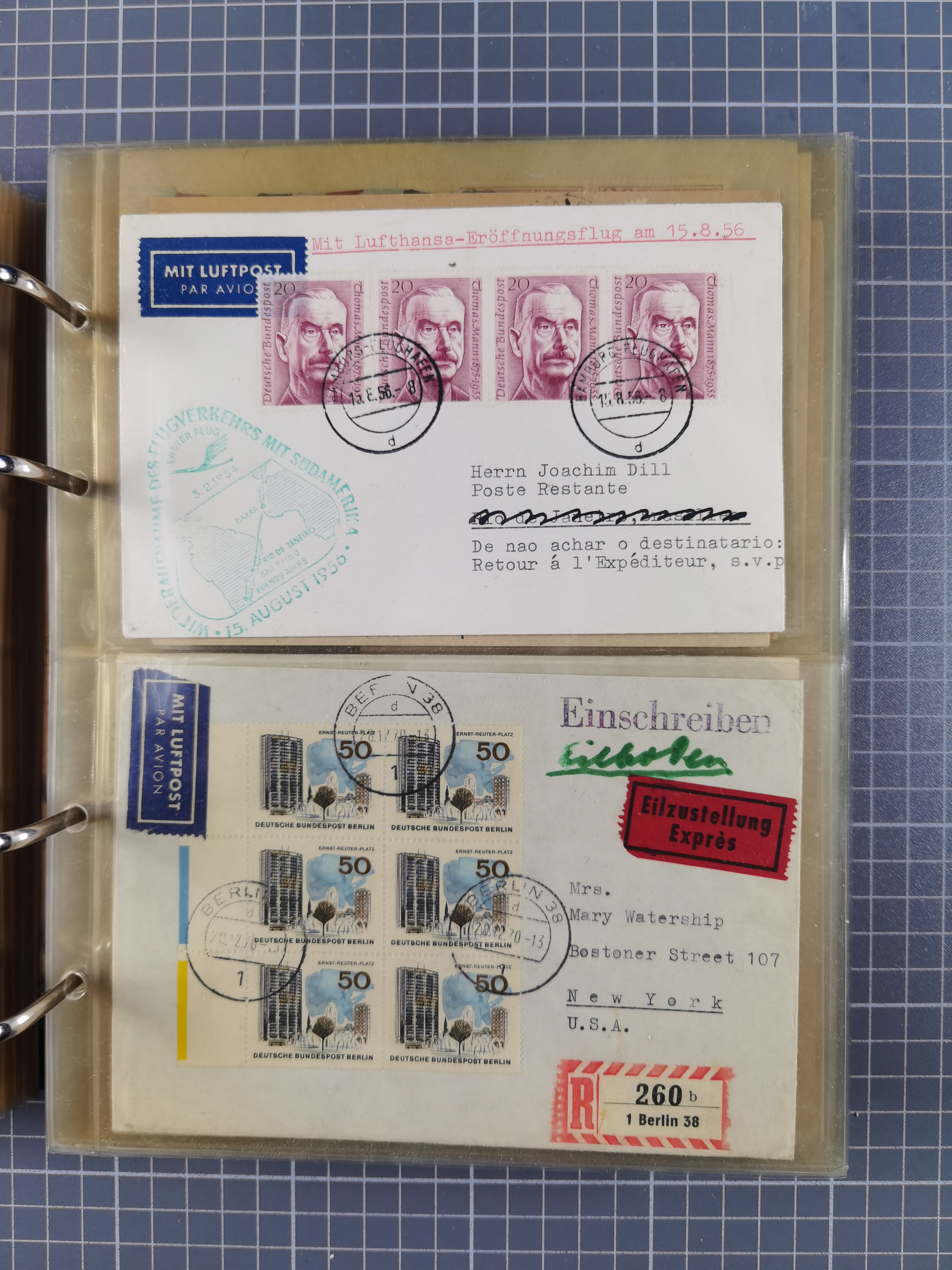 1850/1950 (ca.), umfangreicher Bestand mit über 700 Briefen und Karten, inkl. Bayern und Alliierte Besetzung, Schwerpunt Drittes Reich, kleiner Teil Inflation, viele Ganzsachen dabei u.a. Bayern Postanweisungskarte, sowie Sonderpostkarten, Flugpost, R-Brief und Mehrfachfrankaturen, dazu einiege lose Marken sowie zwei Fahrpläne der Hapag und des Norddeutscher Llyod Bremen nach Süd Amerika, etc., die Erhaltung etwas unterschiedlich