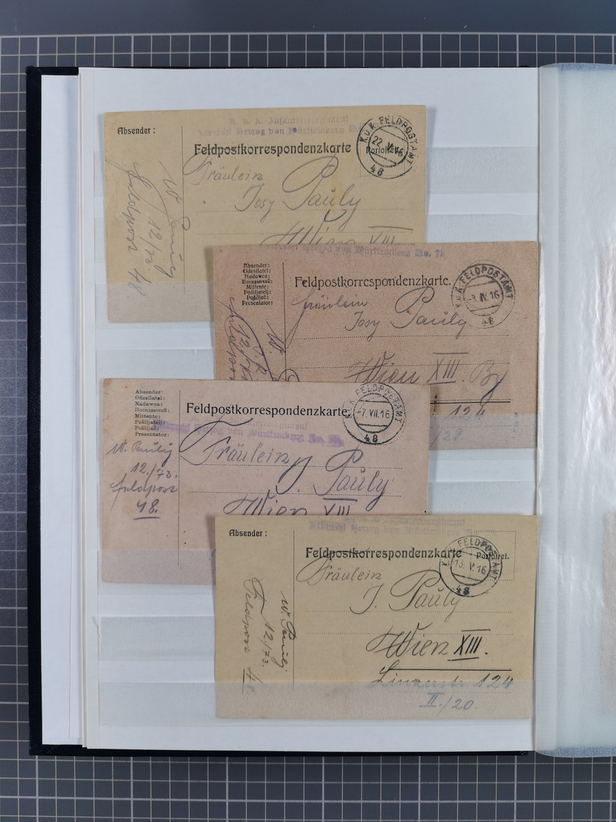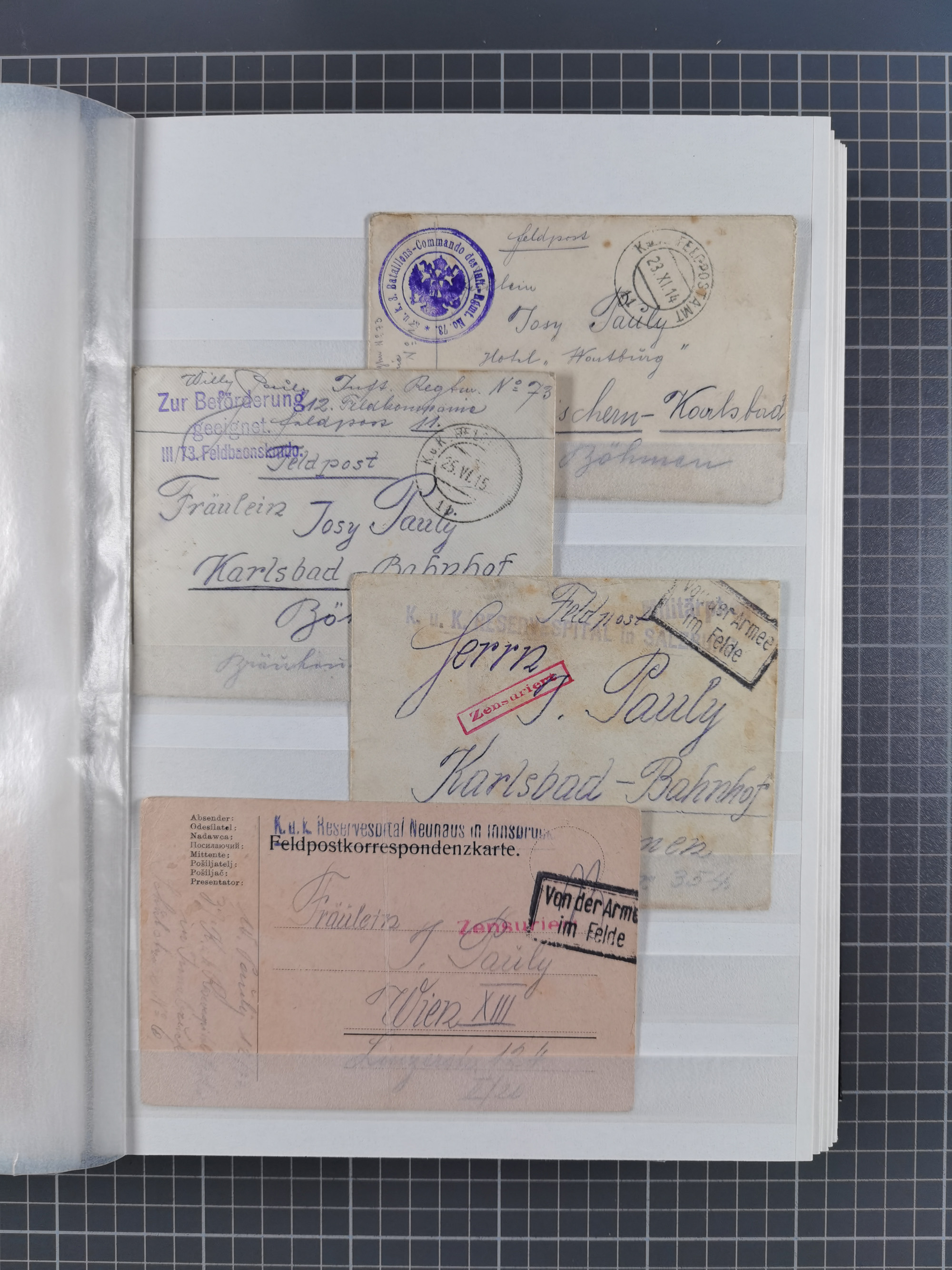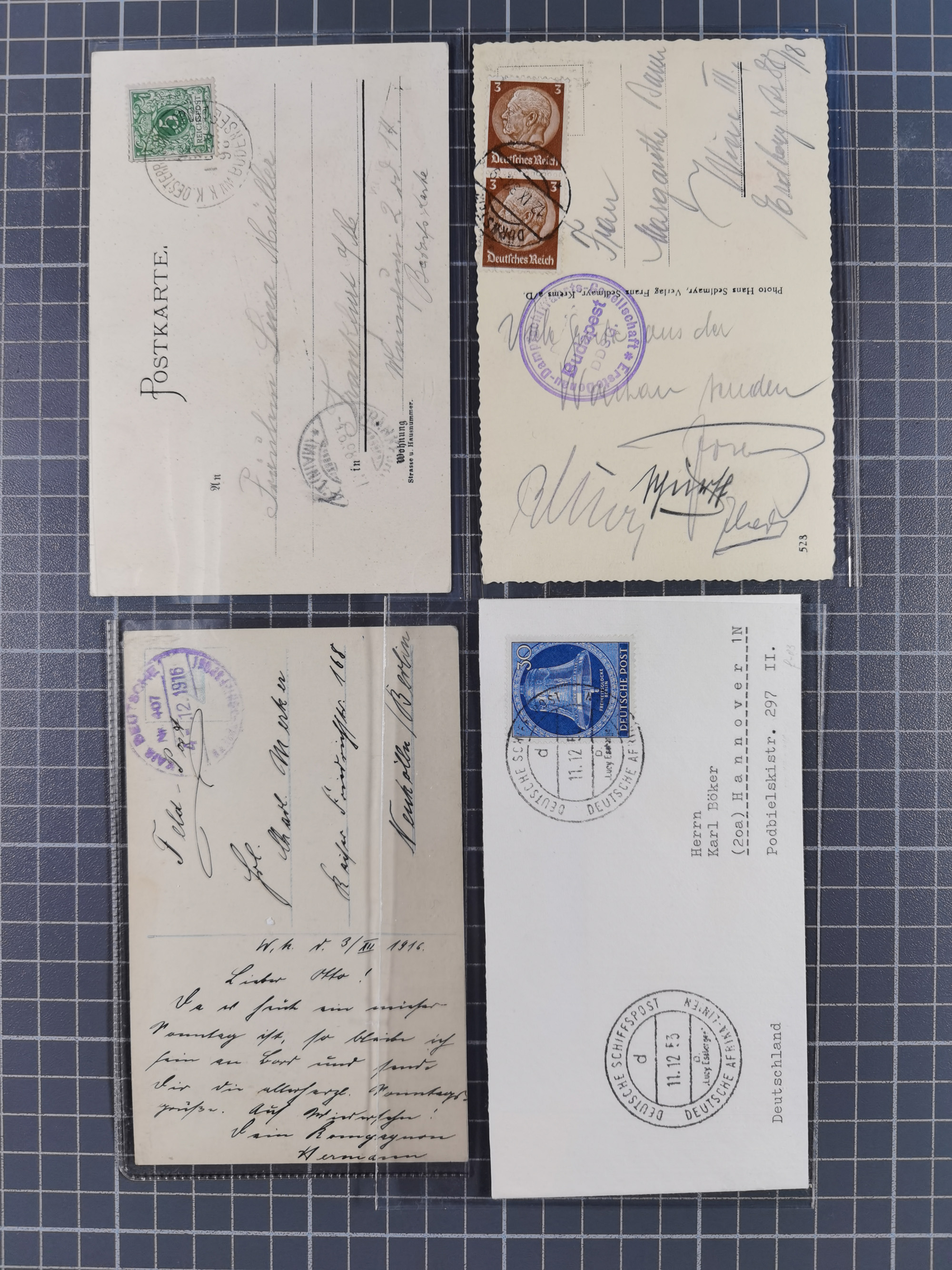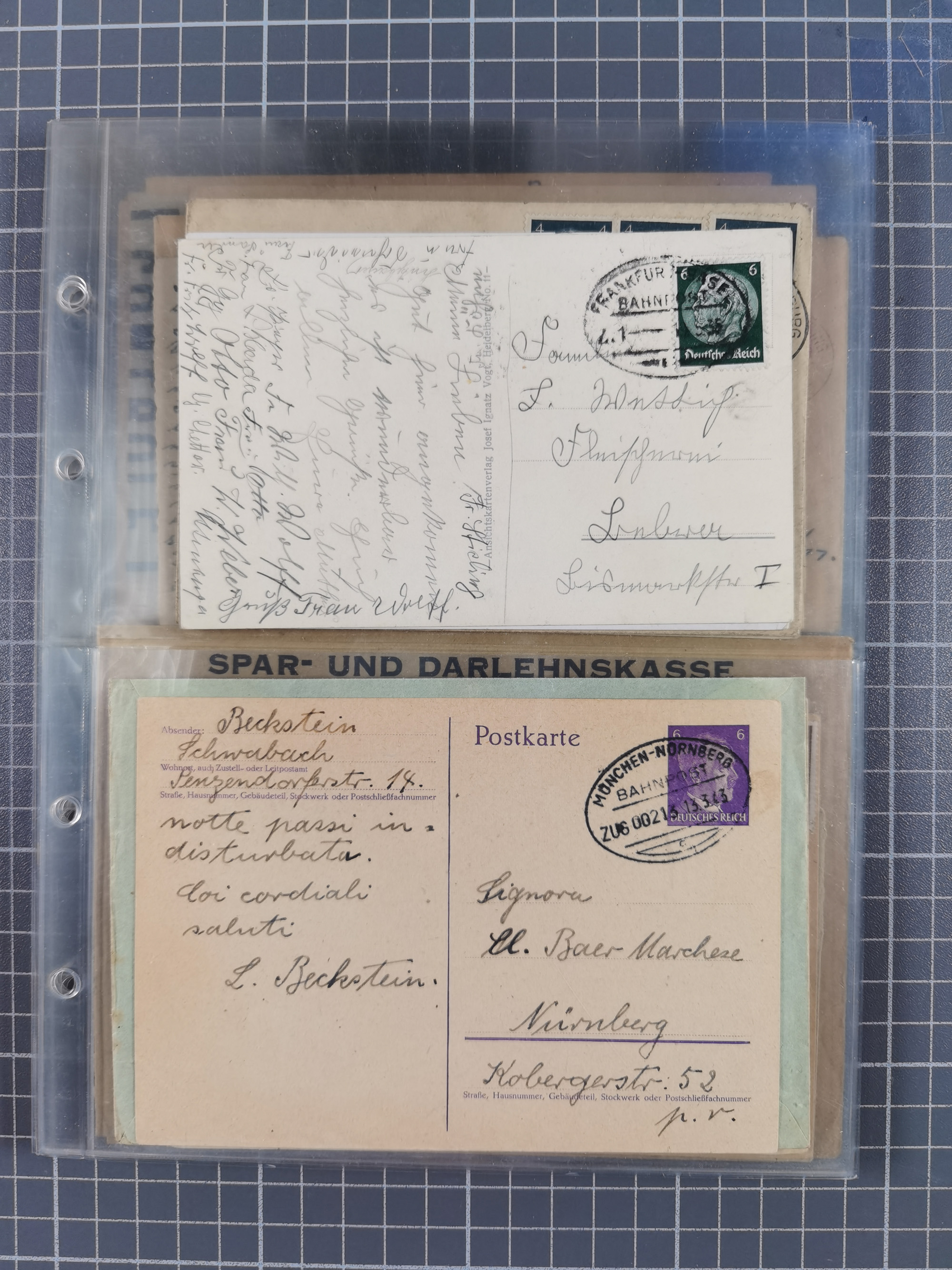 1900/50, Grosses Albummit Briefen/Karten/Dokumenten ab Bayern, dabei Arbeitsbuch 1934-46, Gewerkschaftsausweis, dazu 36 K.u.K. Feldpostkarten meist mit Kompaniestempeln und einige Ansichtskarten