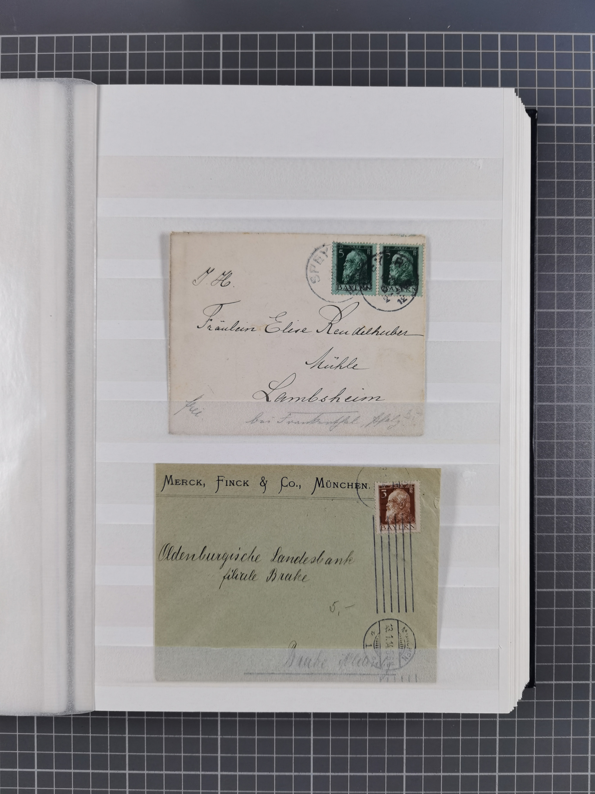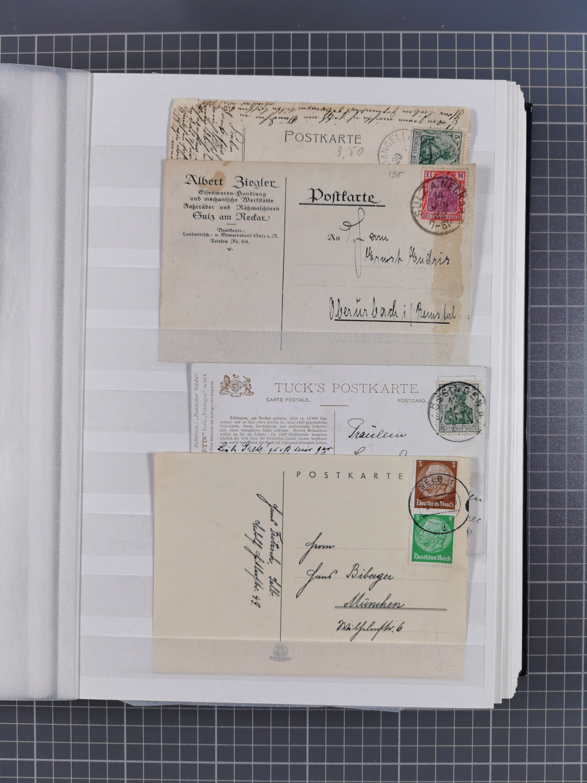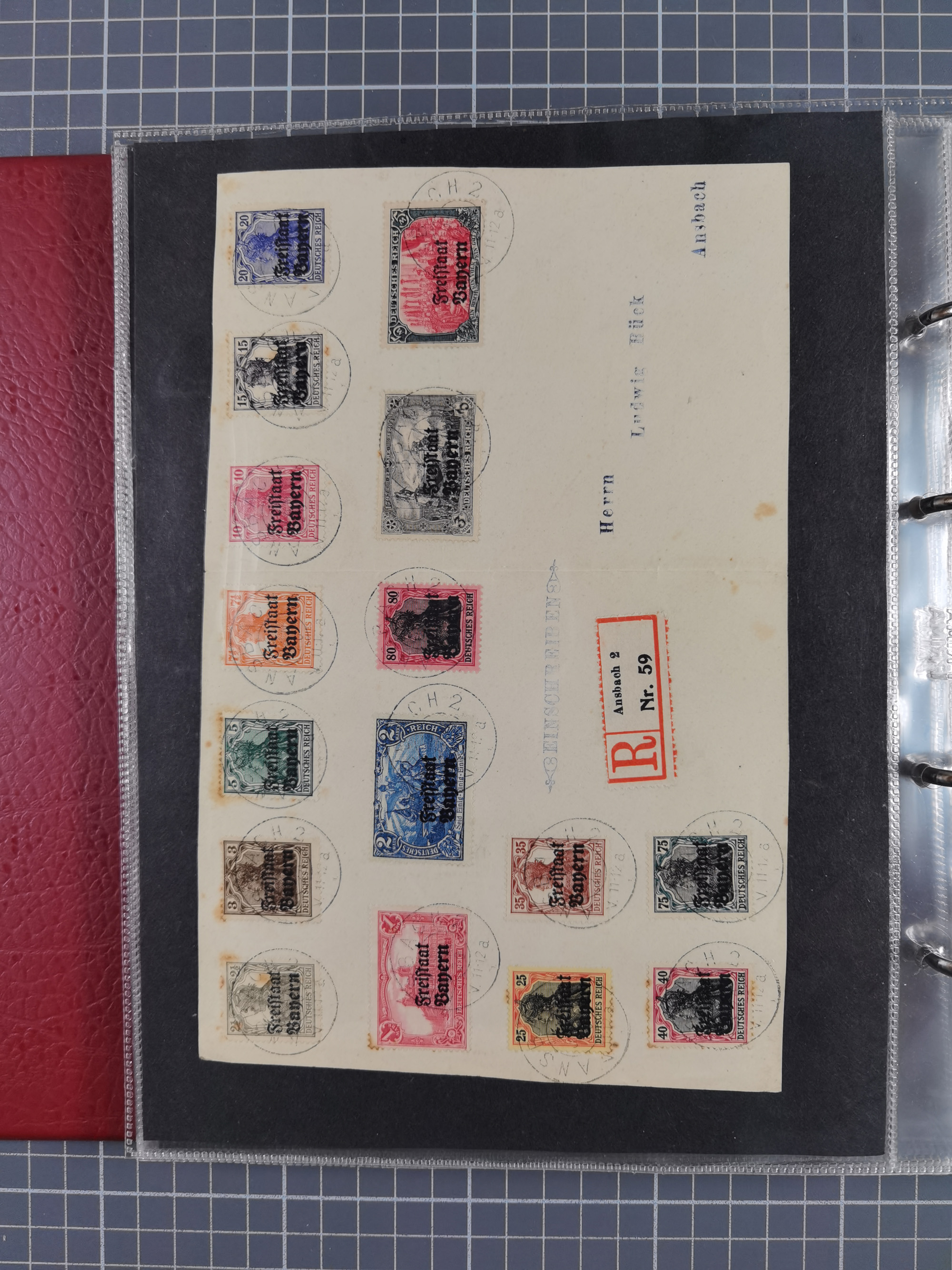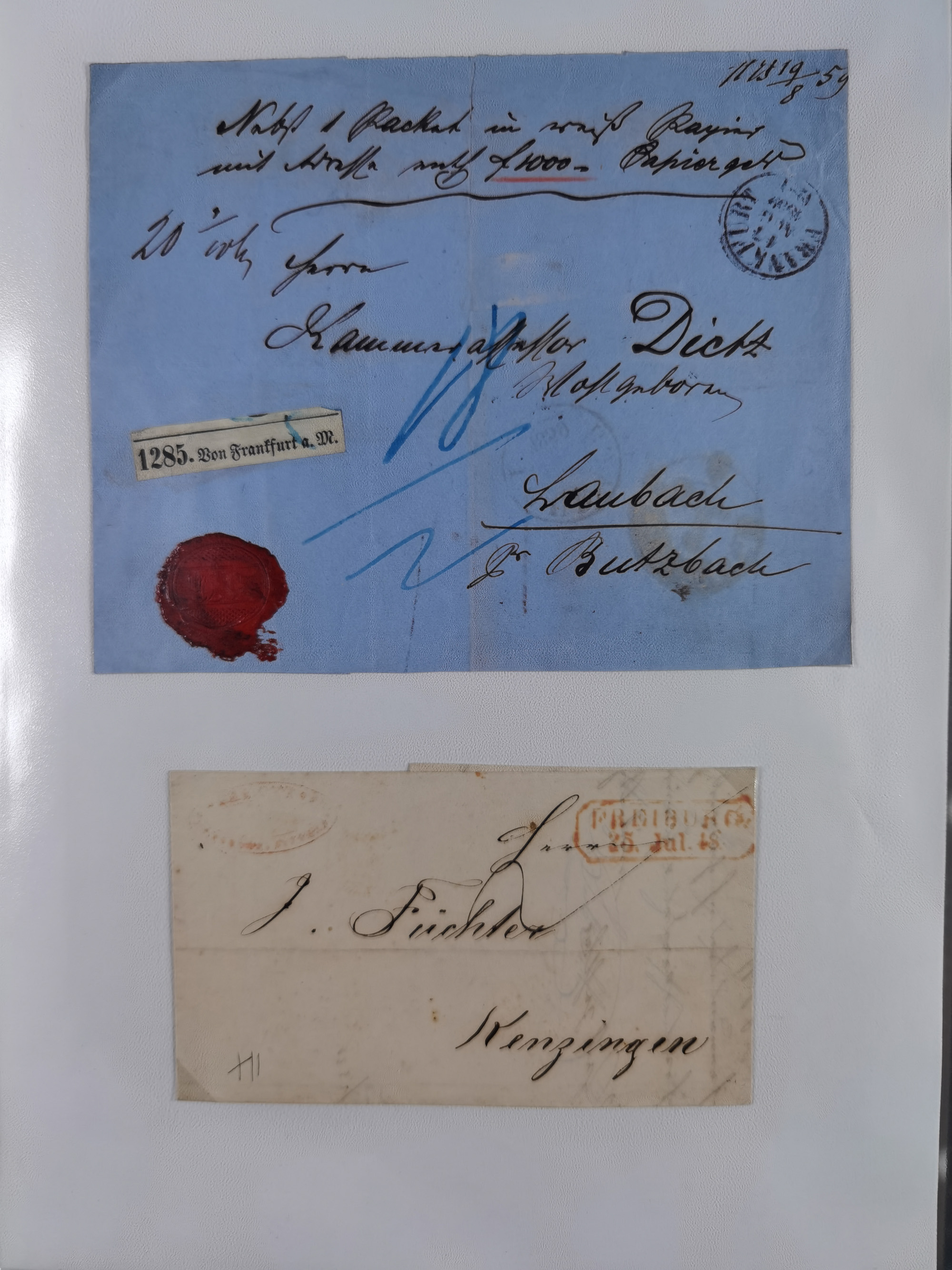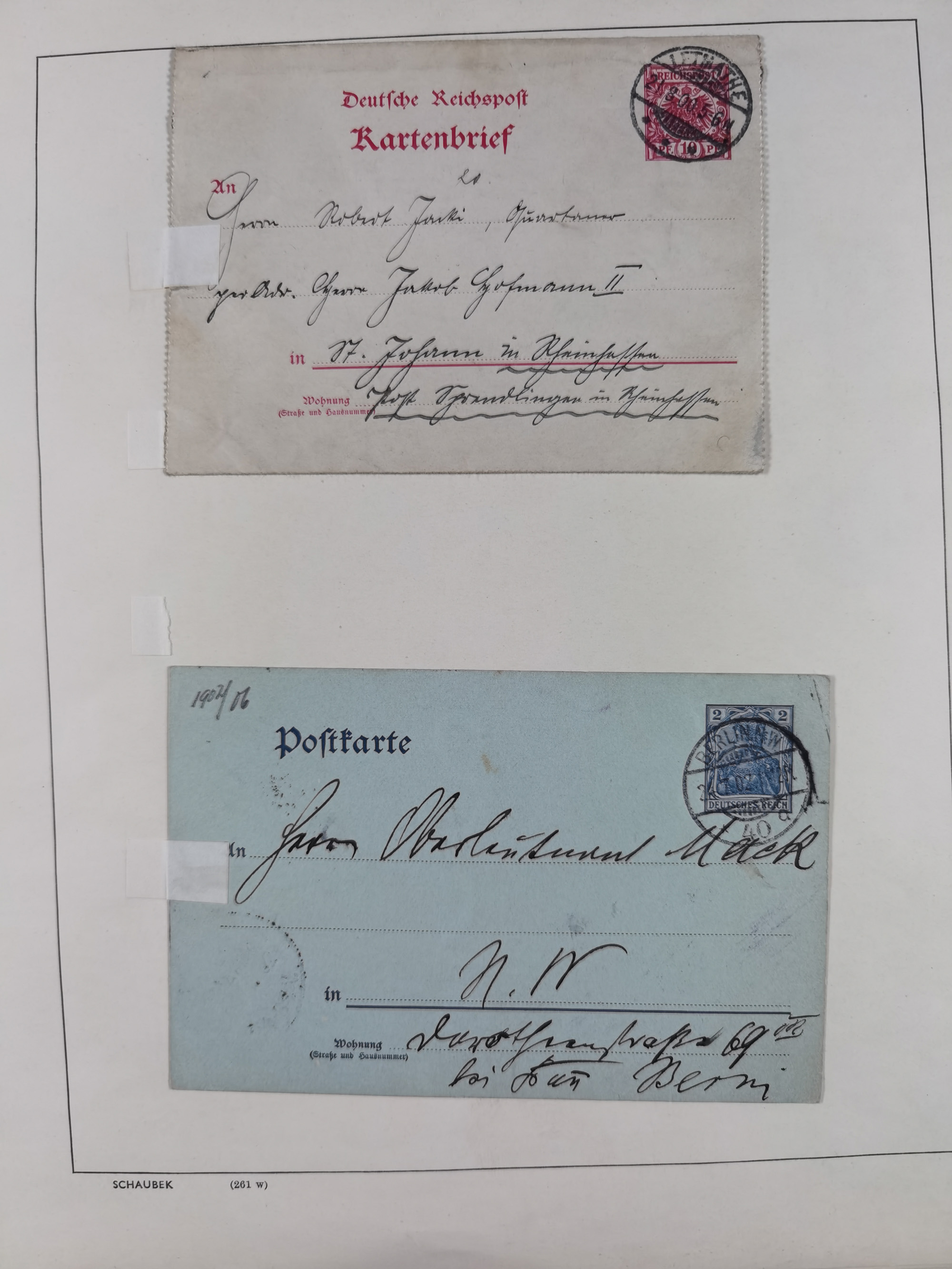 1865/1950 (ca.), Album mit 122 hochwertigen Belegen, diese einzeln vom Einlieferer beschrieben und nach Michel bewertet 15.000 €. Dazu ein Karton mit über 170 Briefen, Karten und Ganzsachen, dabei etliche interessante Belege, meist gute Erhaltung