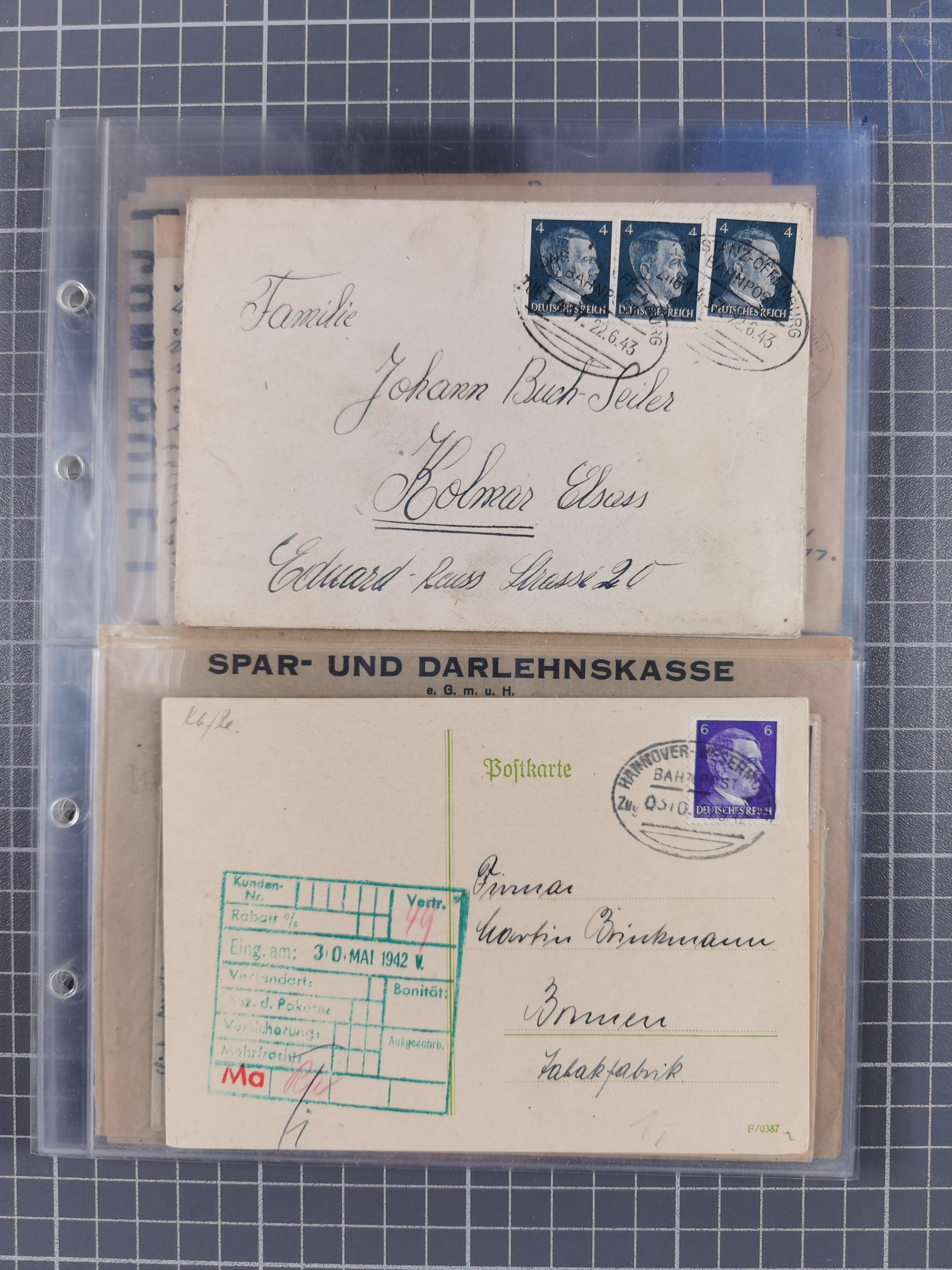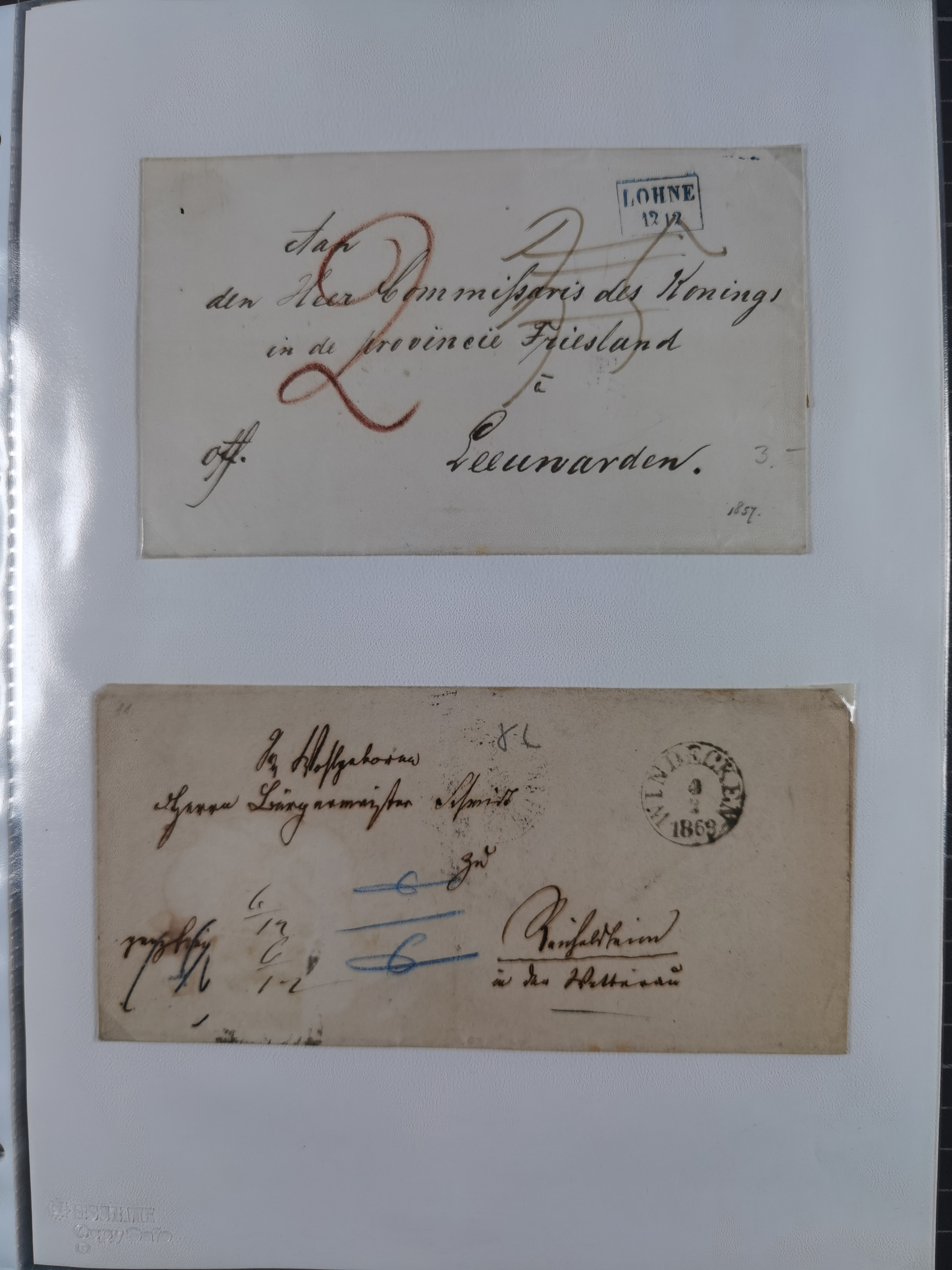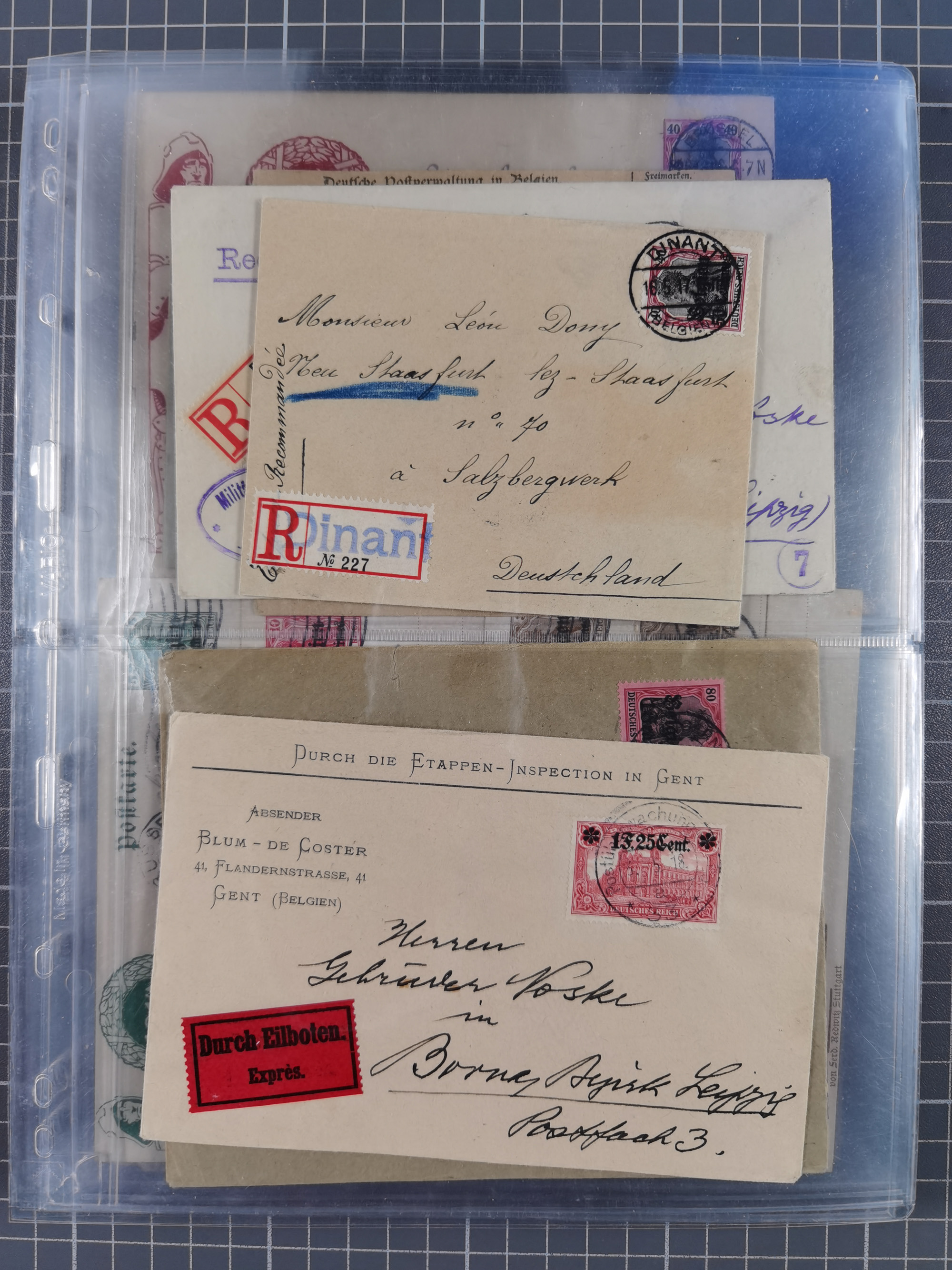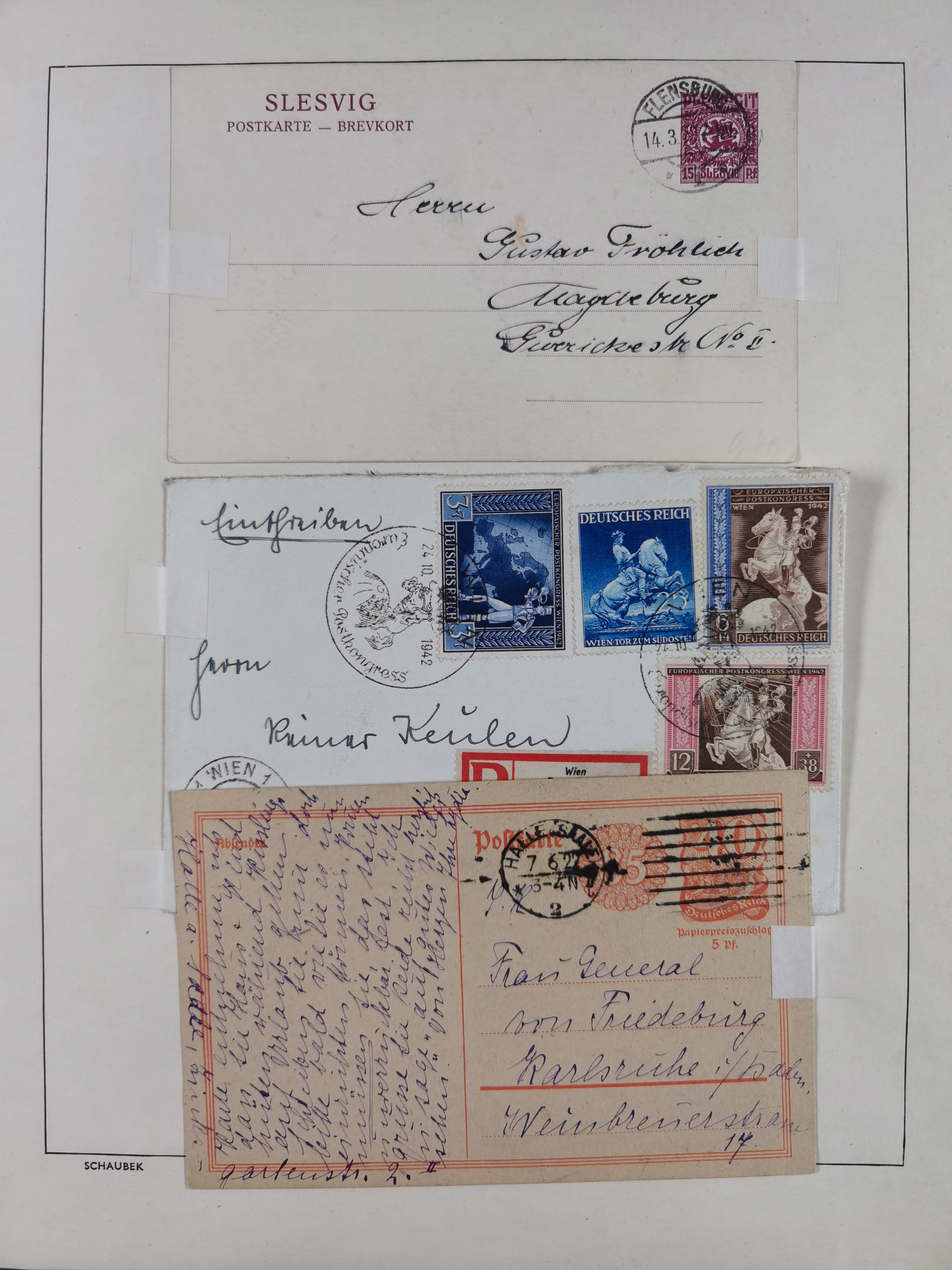 1865/1950 (ca.), Album mit 122 hochwertigen Belegen, diese einzeln vom Einlieferer beschrieben und nach Michel bewertet 15.000 €. Dazu ein Karton mit über 170 Briefen, Karten und Ganzsachen, dabei etliche interessante Belege, meist gute Erhaltung