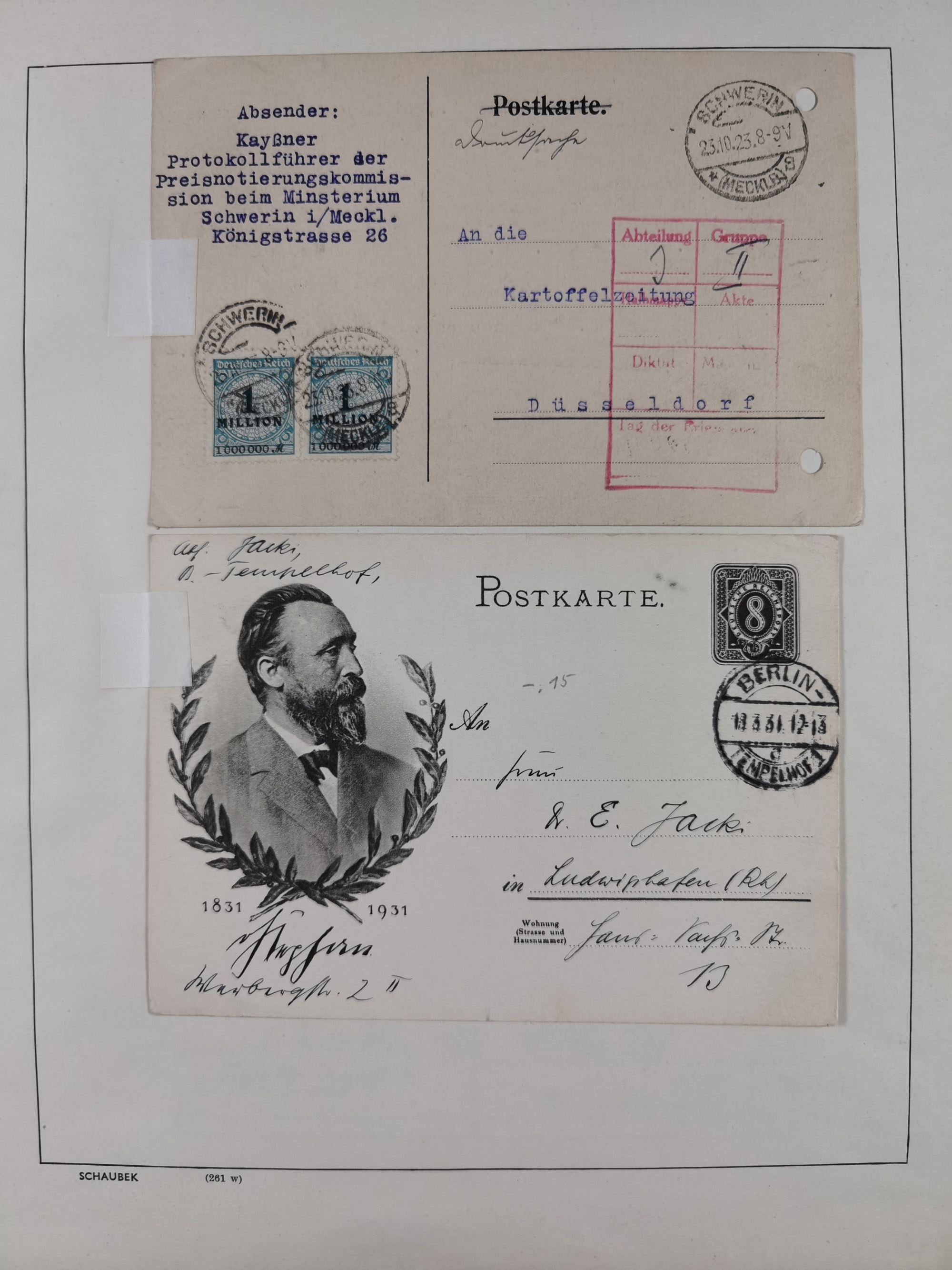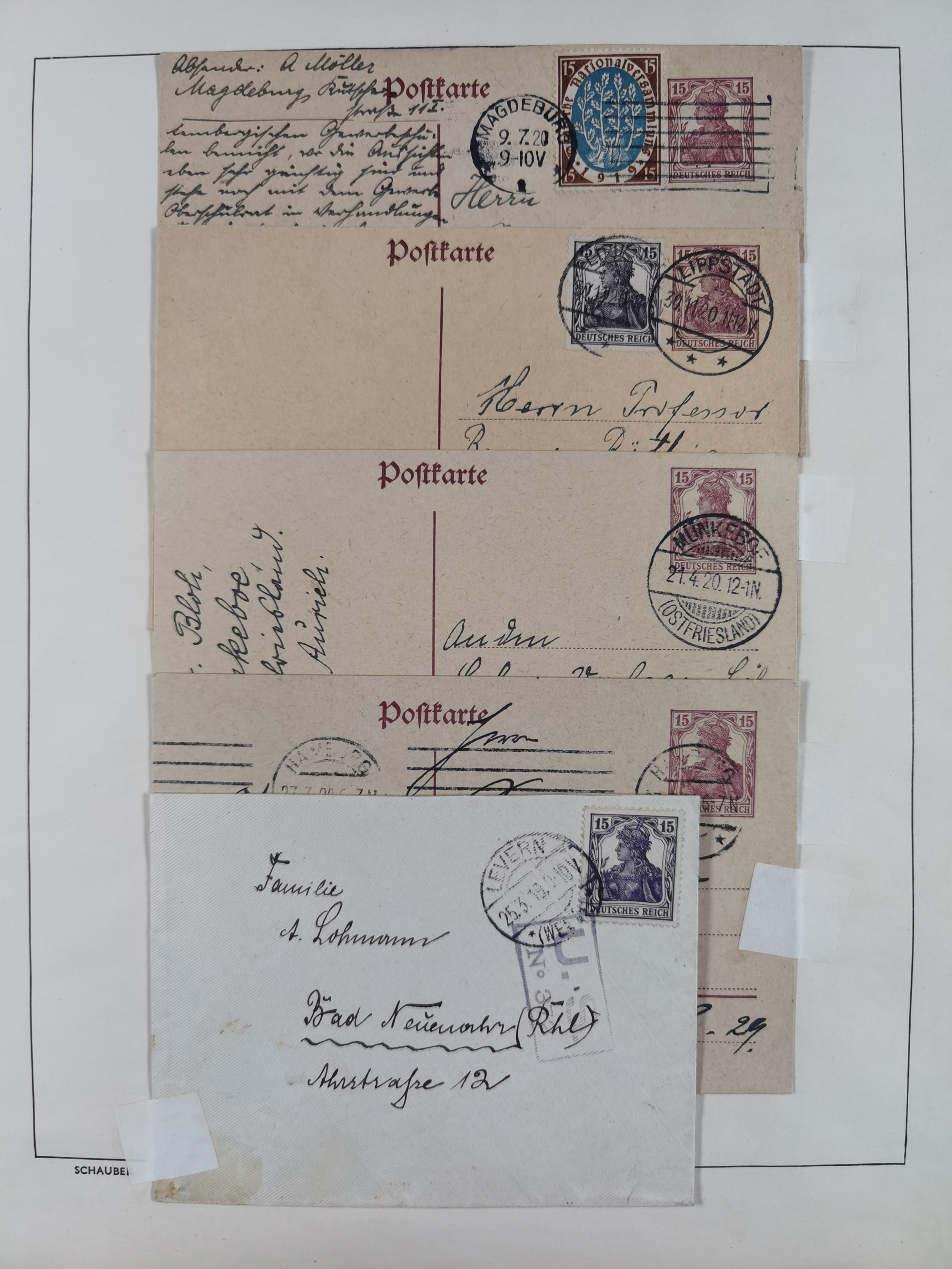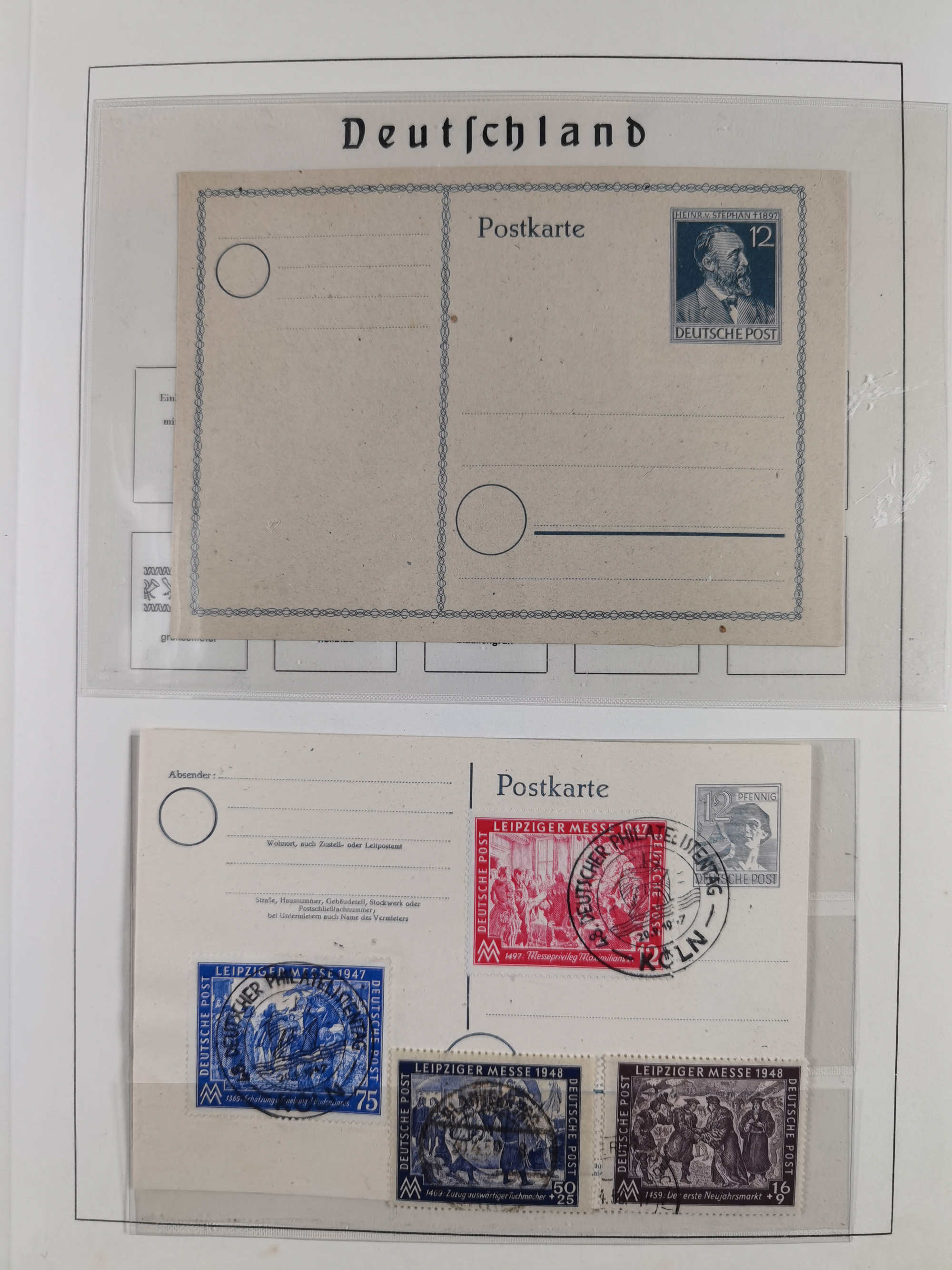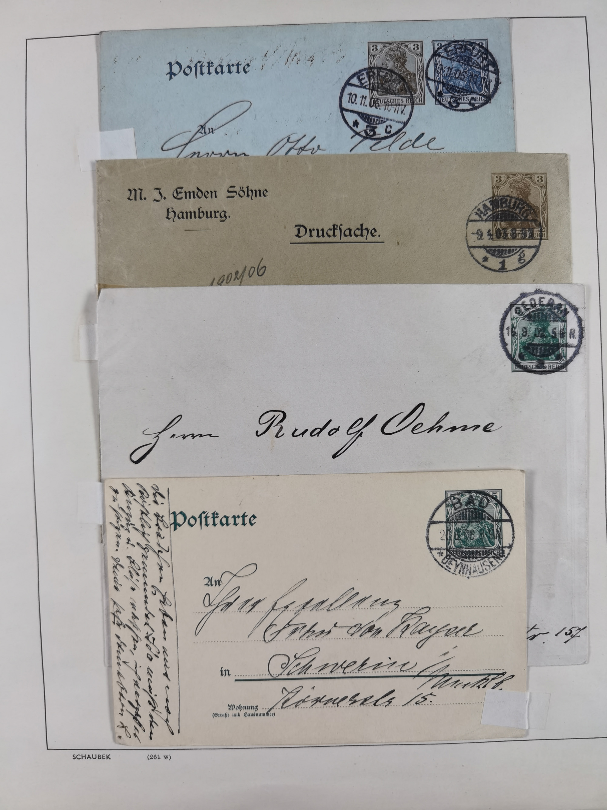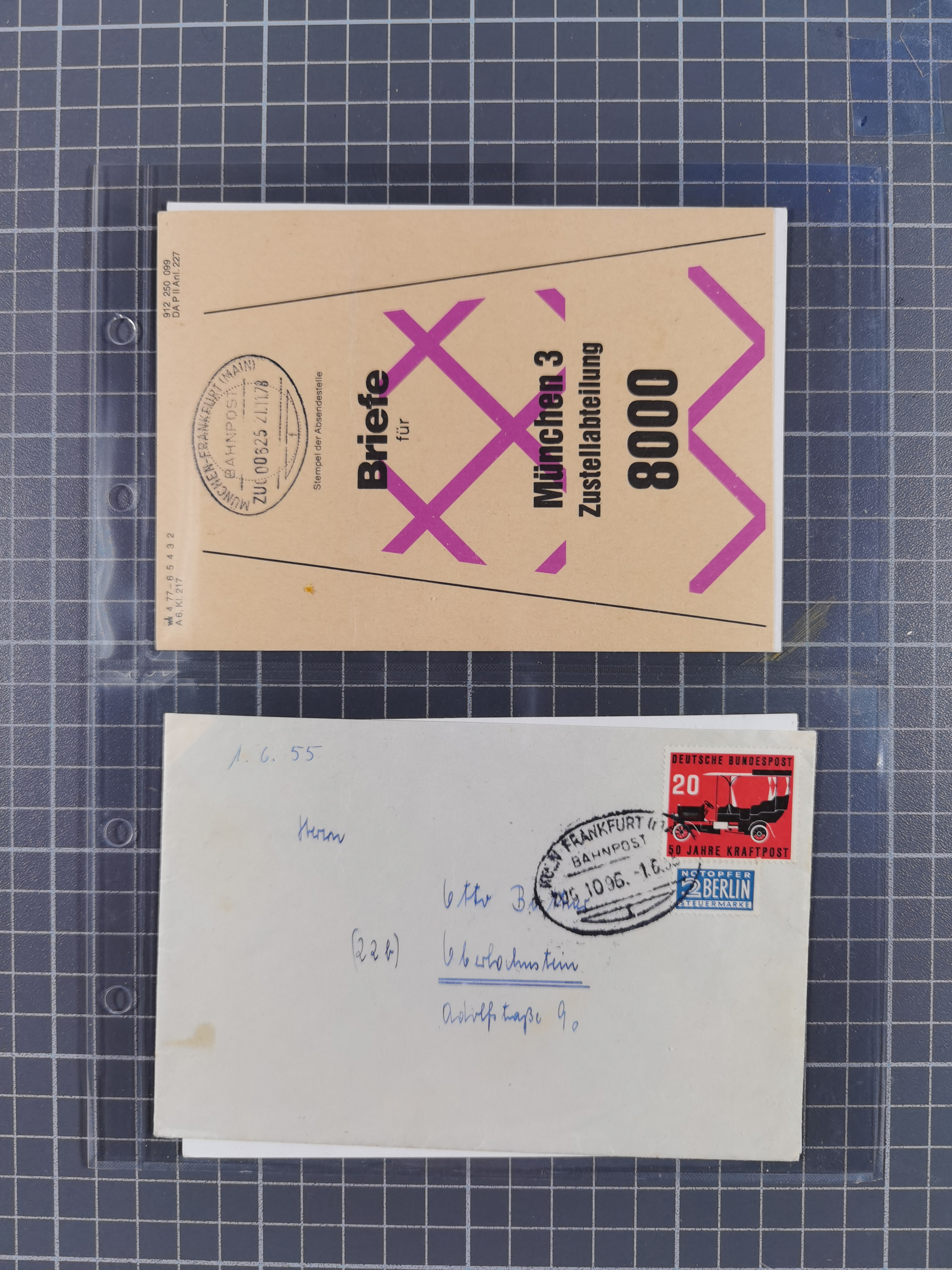 1865/1950 (ca.), Album mit 122 hochwertigen Belegen, diese einzeln vom Einlieferer beschrieben und nach Michel bewertet 15.000 €. Dazu ein Karton mit über 170 Briefen, Karten und Ganzsachen, dabei etliche interessante Belege, meist gute Erhaltung