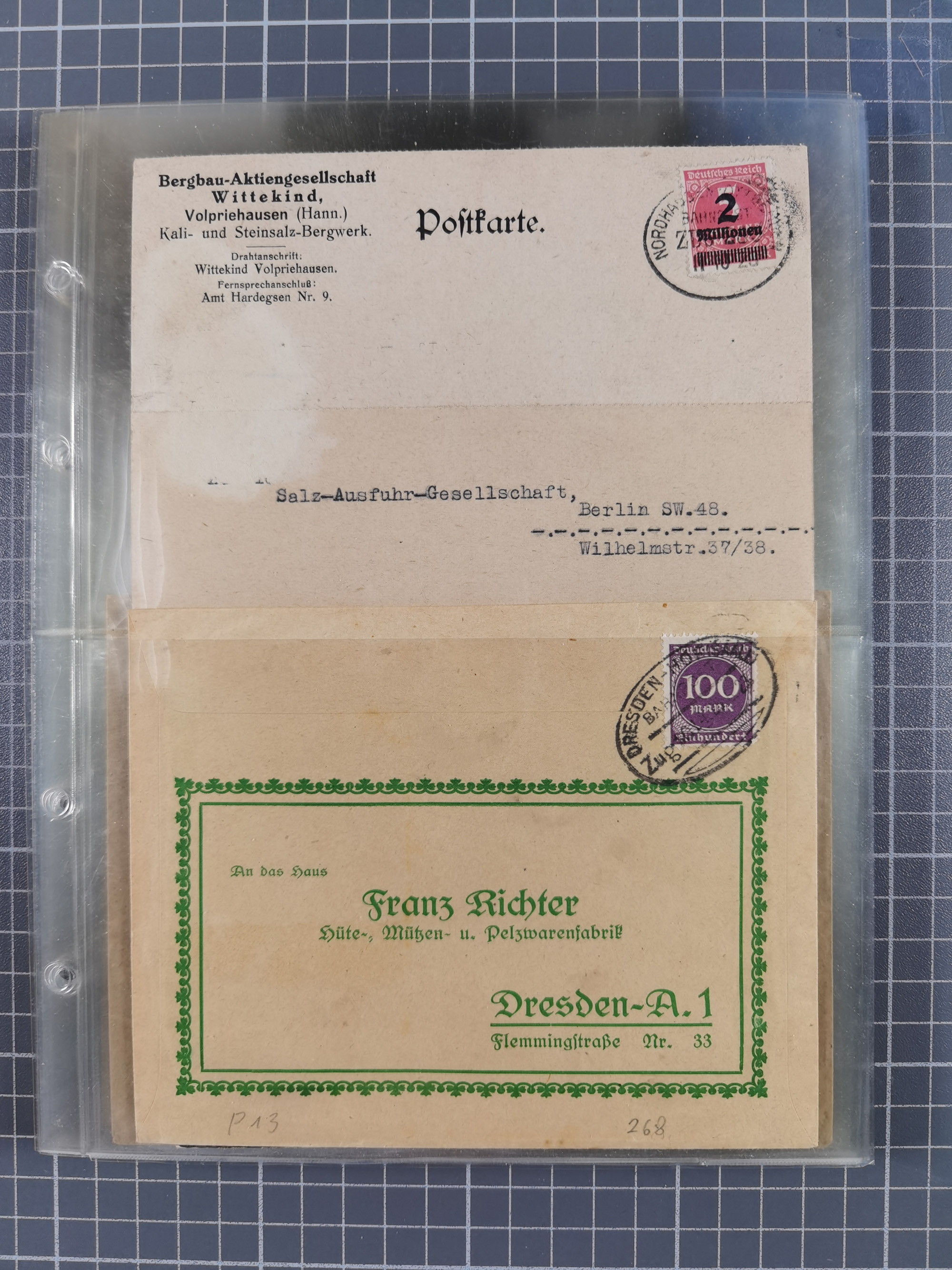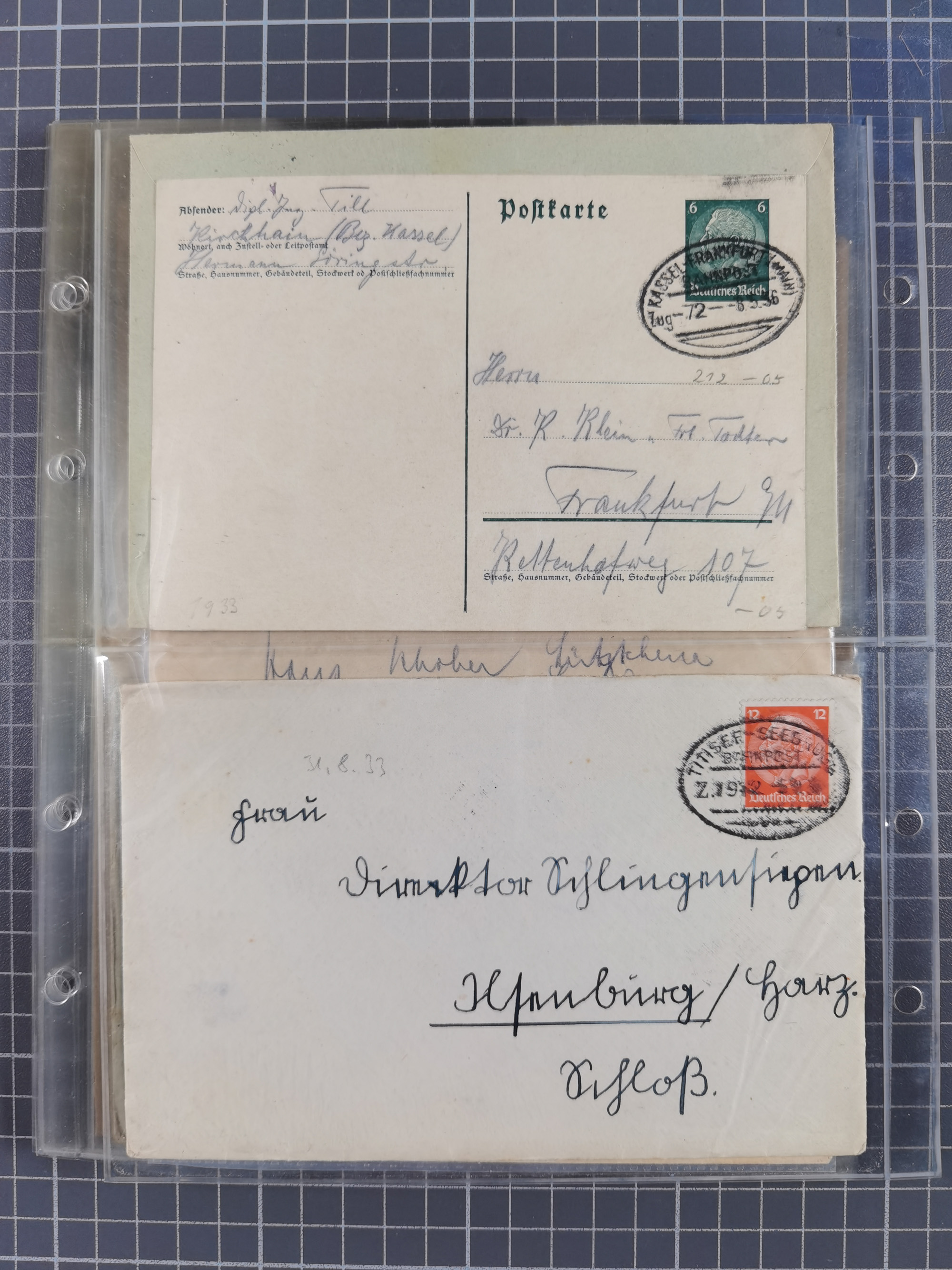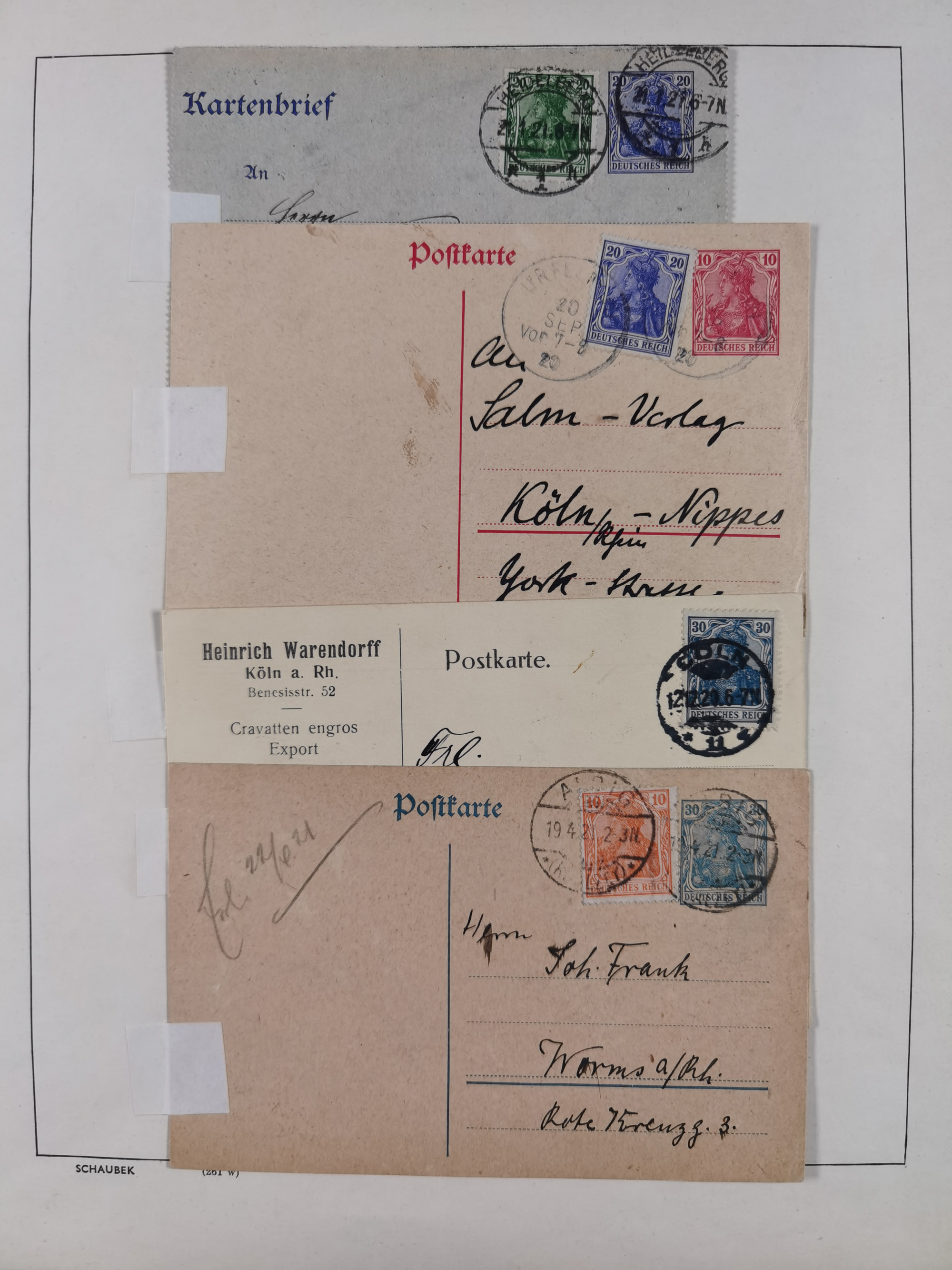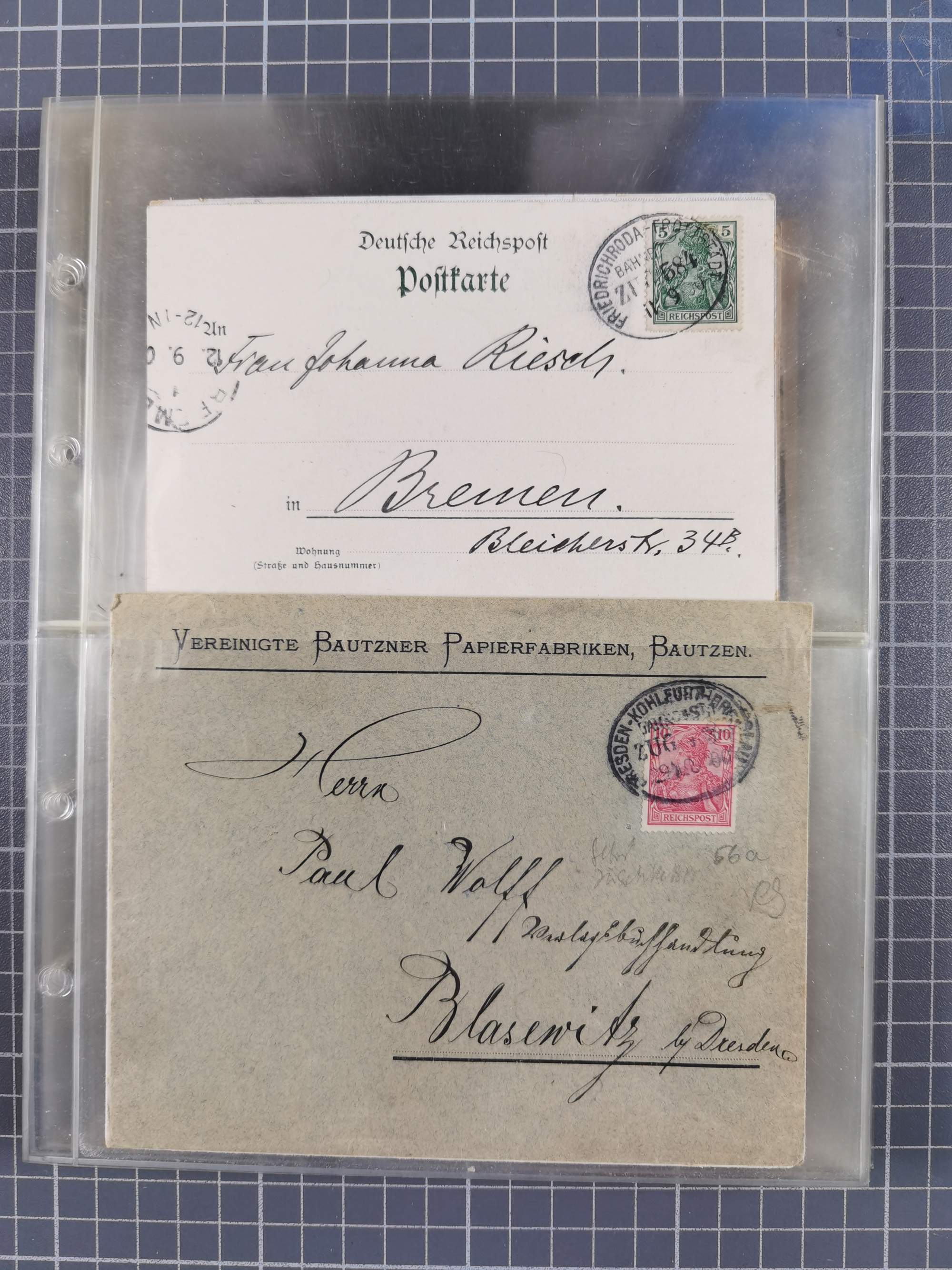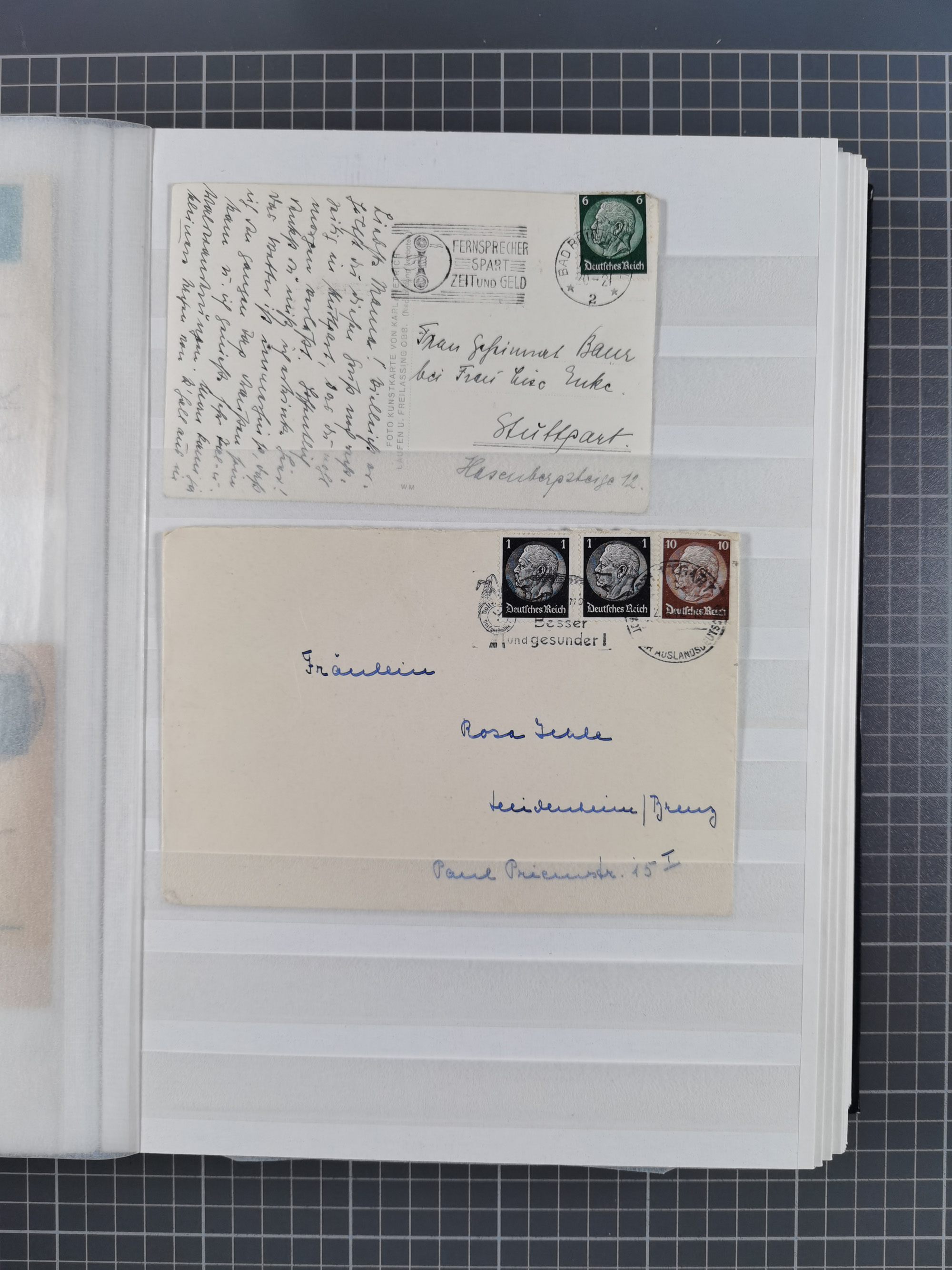 1865/1950 (ca.), Album mit 122 hochwertigen Belegen, diese einzeln vom Einlieferer beschrieben und nach Michel bewertet 15.000 €. Dazu ein Karton mit über 170 Briefen, Karten und Ganzsachen, dabei etliche interessante Belege, meist gute Erhaltung