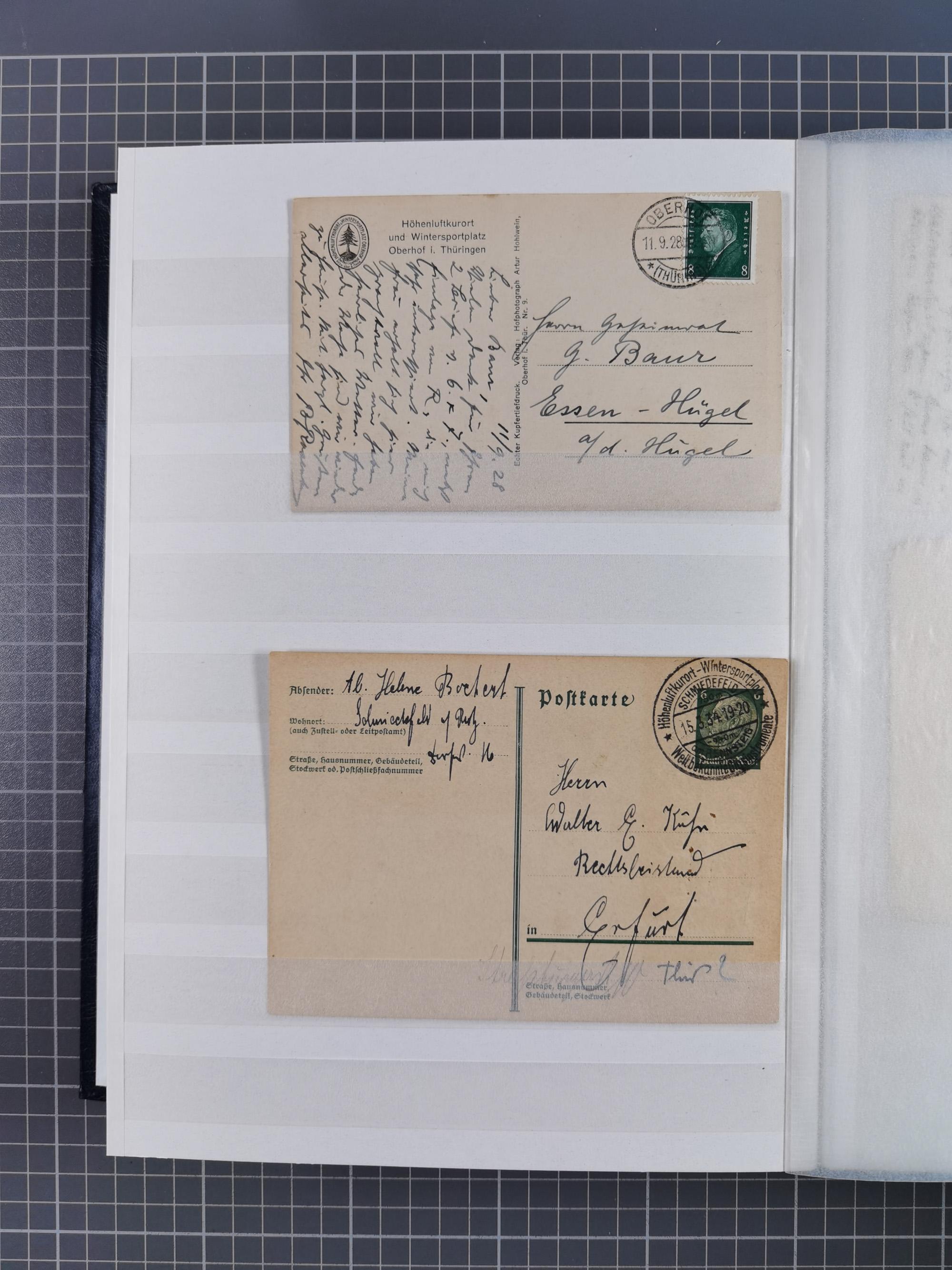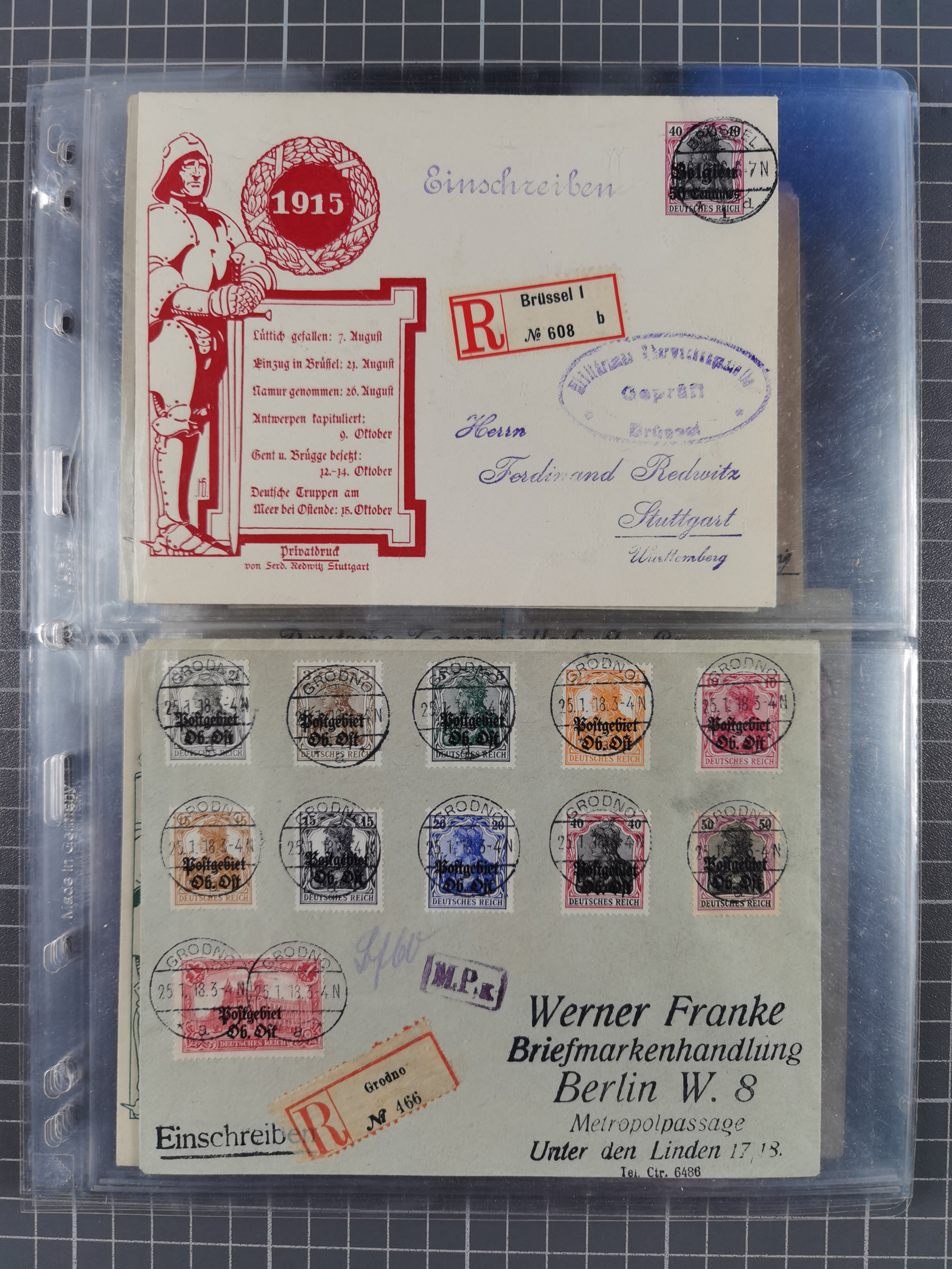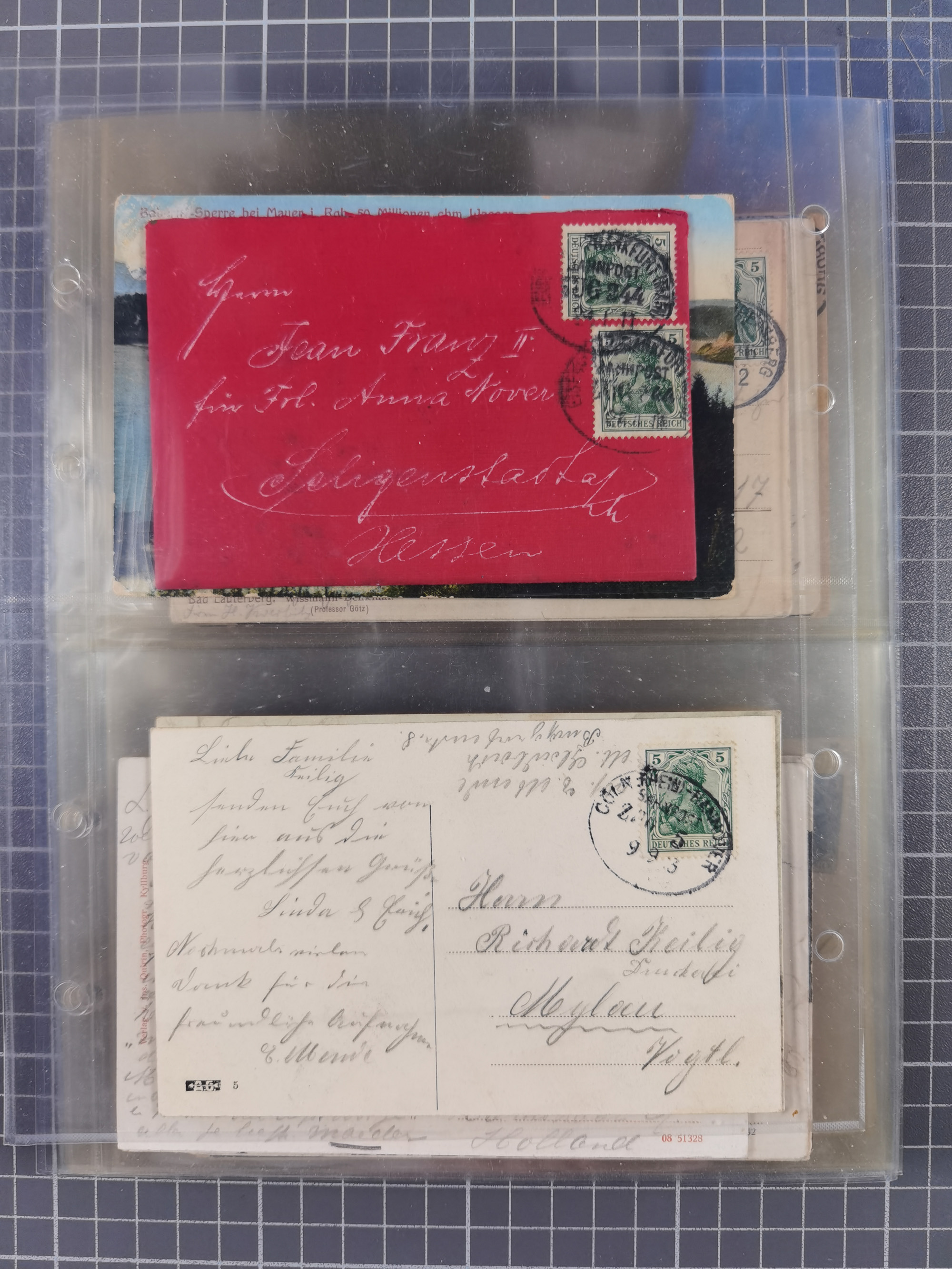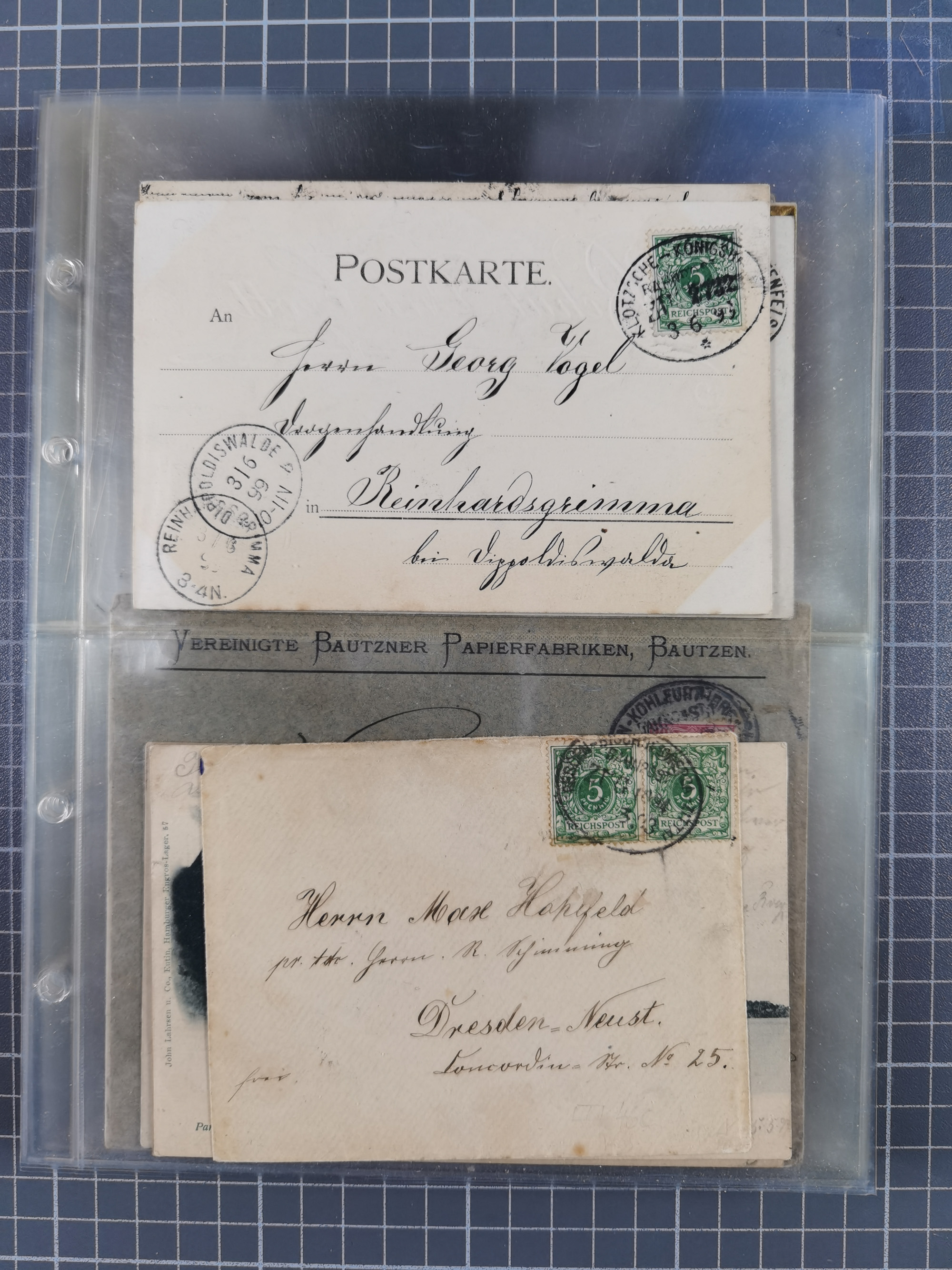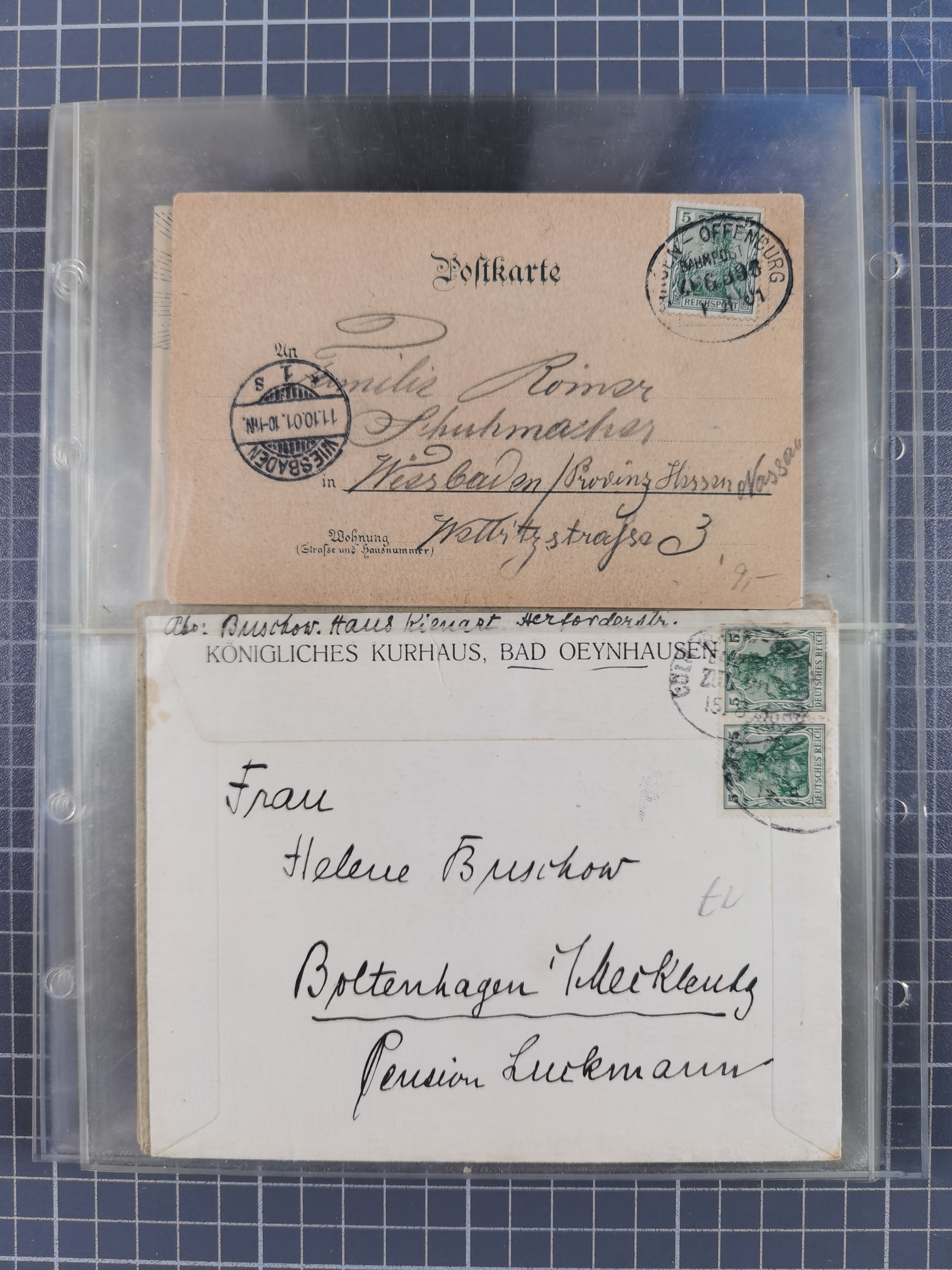 1865/1950 (ca.), Album mit 122 hochwertigen Belegen, diese einzeln vom Einlieferer beschrieben und nach Michel bewertet 15.000 €. Dazu ein Karton mit über 170 Briefen, Karten und Ganzsachen, dabei etliche interessante Belege, meist gute Erhaltung